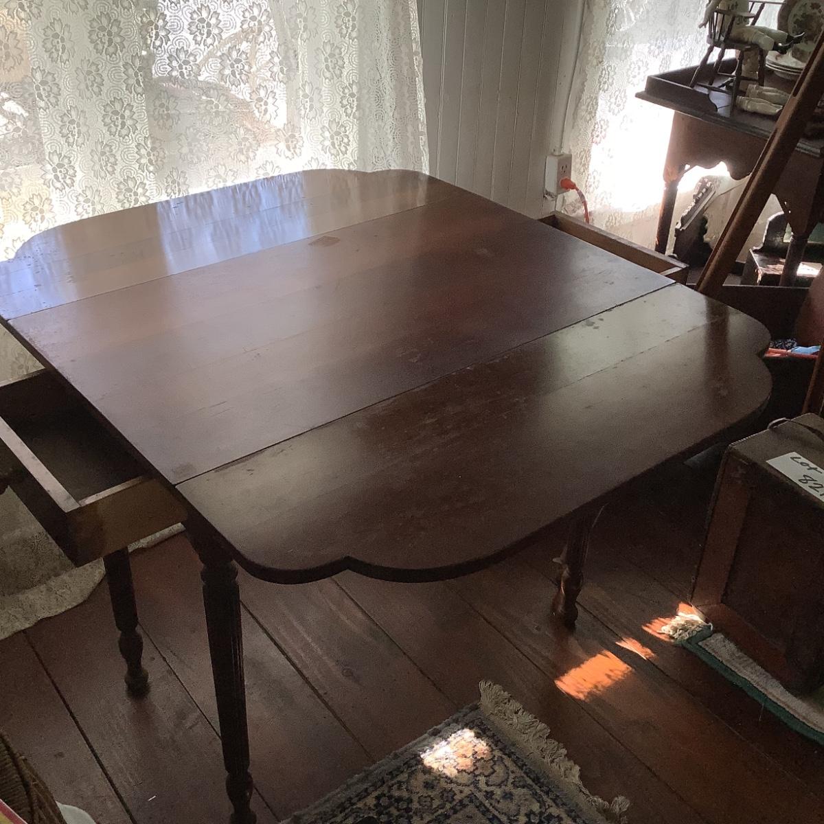 1076 Antique Cherry Two Drawer Dropleaf Table