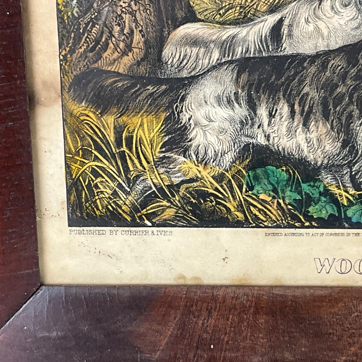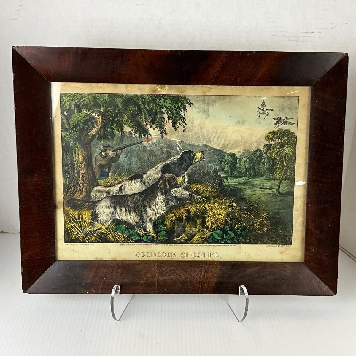 1078 Vintage Currier & Ives Colored Engraving " Woodcock Shooting "