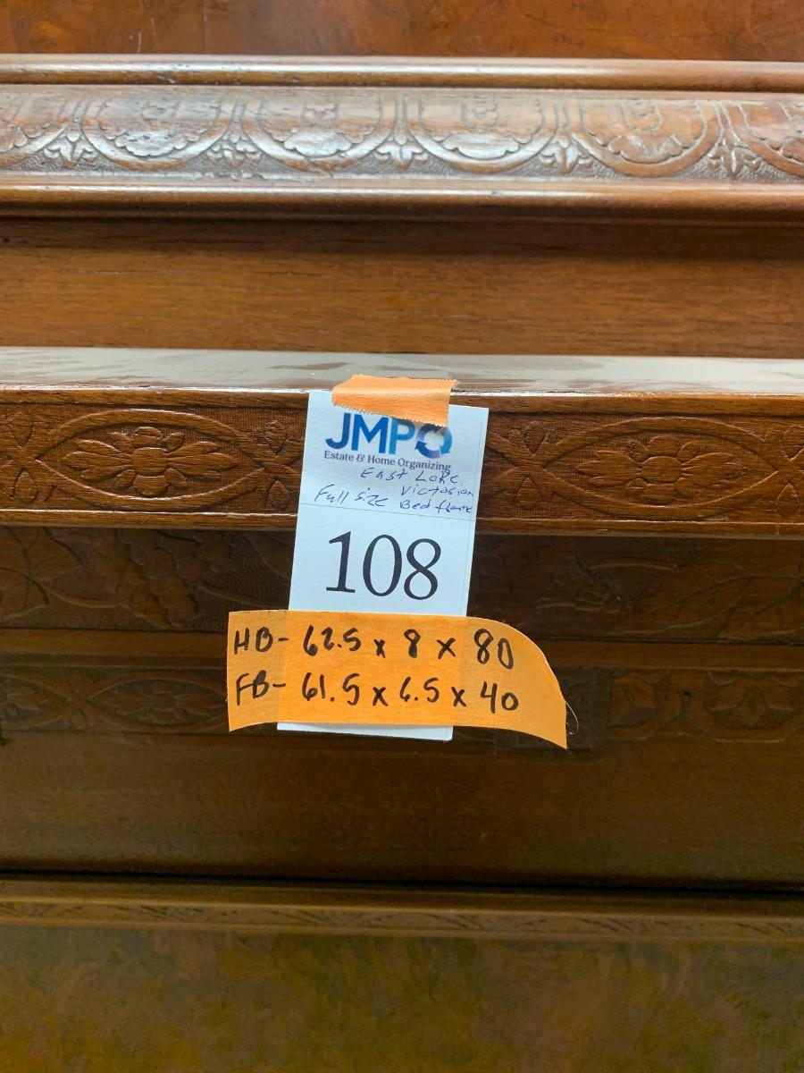 Eastlake Victorian bed frame. Full Size, includes headboard, footboard, rails. Exquisite craftsmanship. May have nicks, scratches.