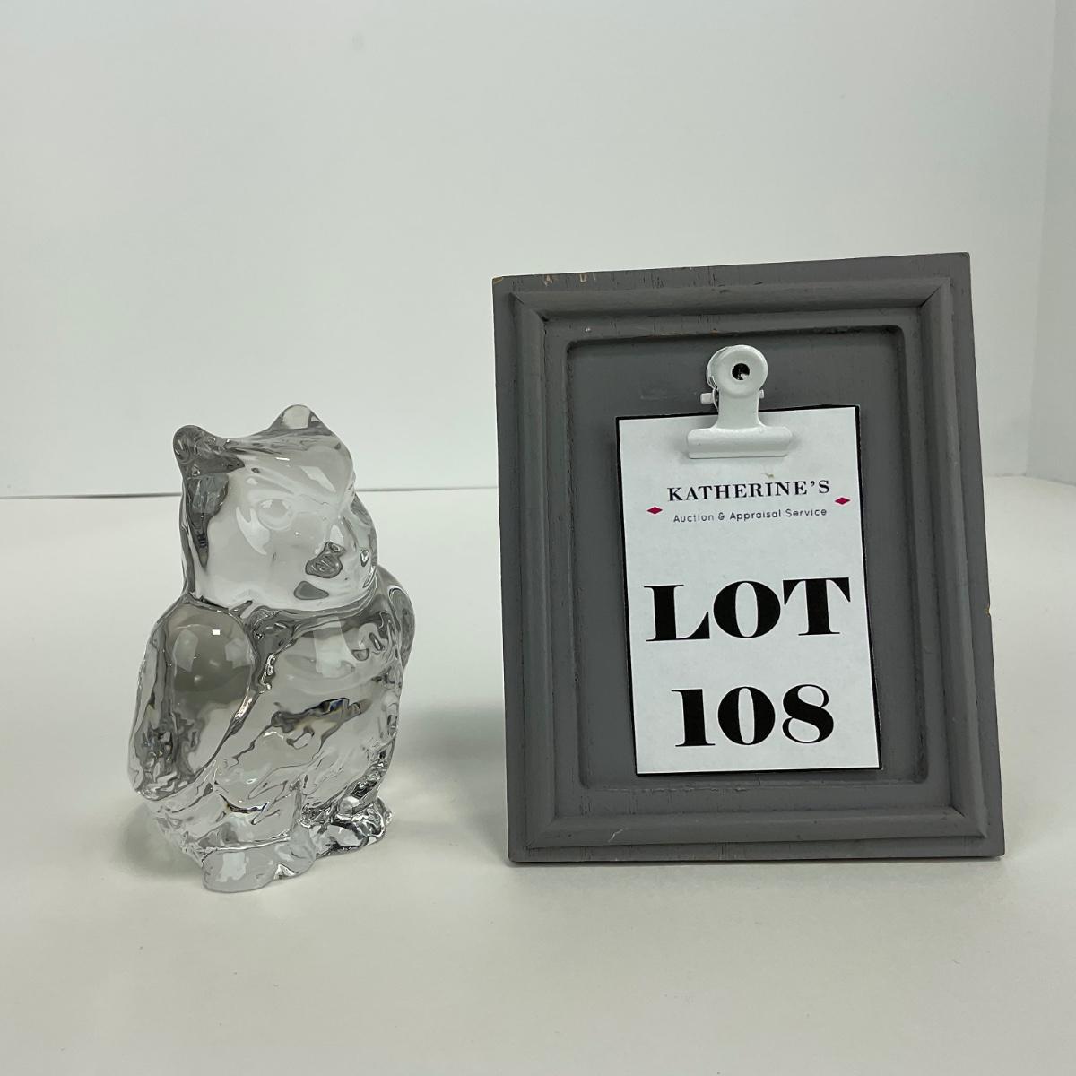 One vintage clear glass owl figure. There are some small chips on the bottom rim base. This piece does have some scuffs, scratches, marks, or slight damage, but otherwise appears to be in great shape. Please see photos for details and condition. Any condition statement is given as a courtesy to a client, is an opinion, and should not be treated as a statement of fact. Reference to condition written, oral or within a condition report shall not be regarded as a full account of condition and may not include all defects, alterations, or restorations. Absence of a condition report does not imply a lot is flawless or lacking imperfections or damage. Katherine’s Auction & Appraisal Service shall have no responsibility for any error or omission. Returns shall not be accepted on the basis of condition. ::: Shipping is available on this lot. If you require shipping you must let us know at the close of the auction. We will coordinate with you after the item has been won. Shipping fees will include insurance up to or exceeding the value of all items being mailed. If you have any questions regarding this lot please contact the auctioneer either via this website, by direct email or by phone. PICK UP TIMES and other important information can be found in the TERMS and DESCRIPTION of the auction. Please take a look for pertinent information. Thanks!