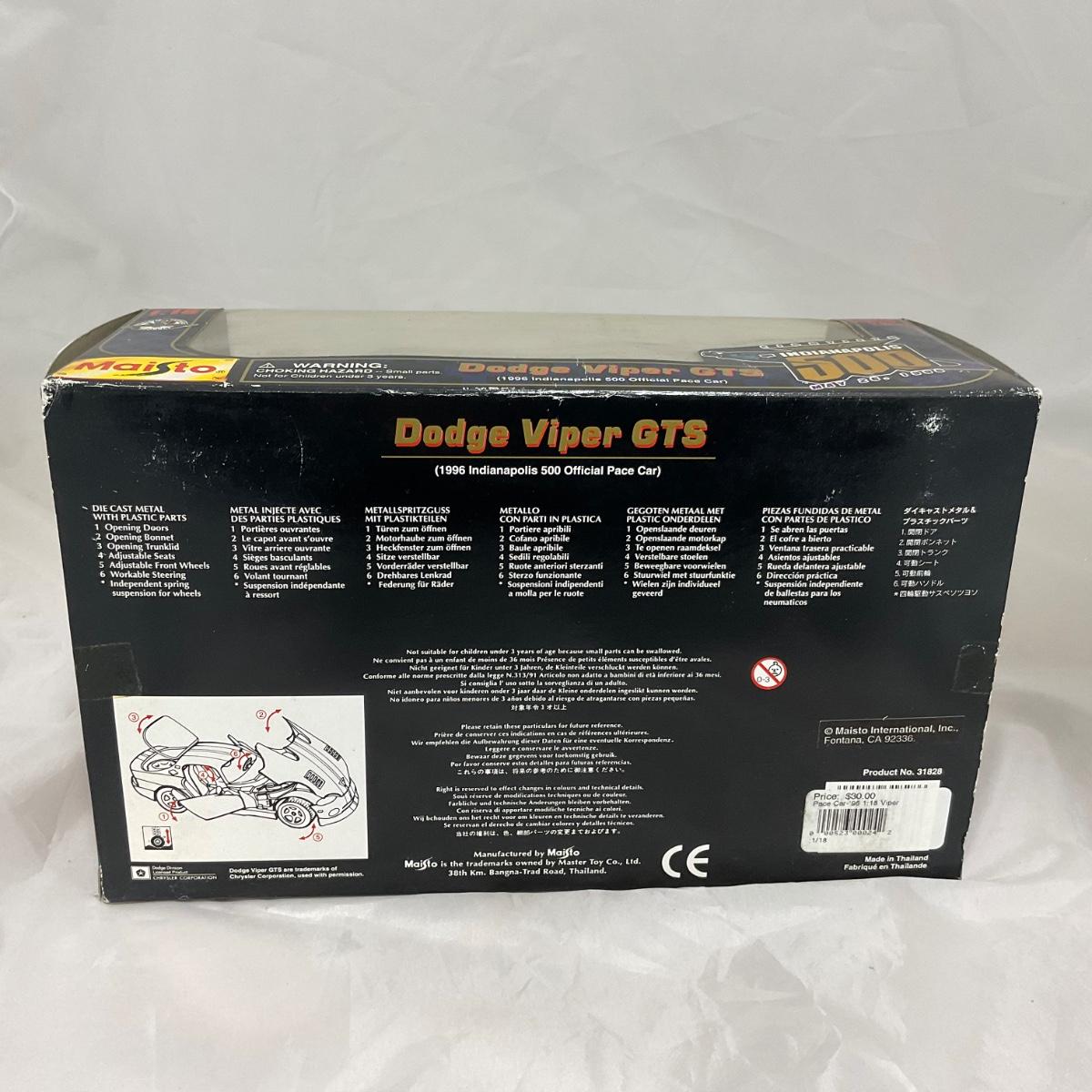 -108- MAISTO | 1:18 Scale Die Cast | 1996 Indianapolis 500 Official Pace Car Dodge Viper GTS