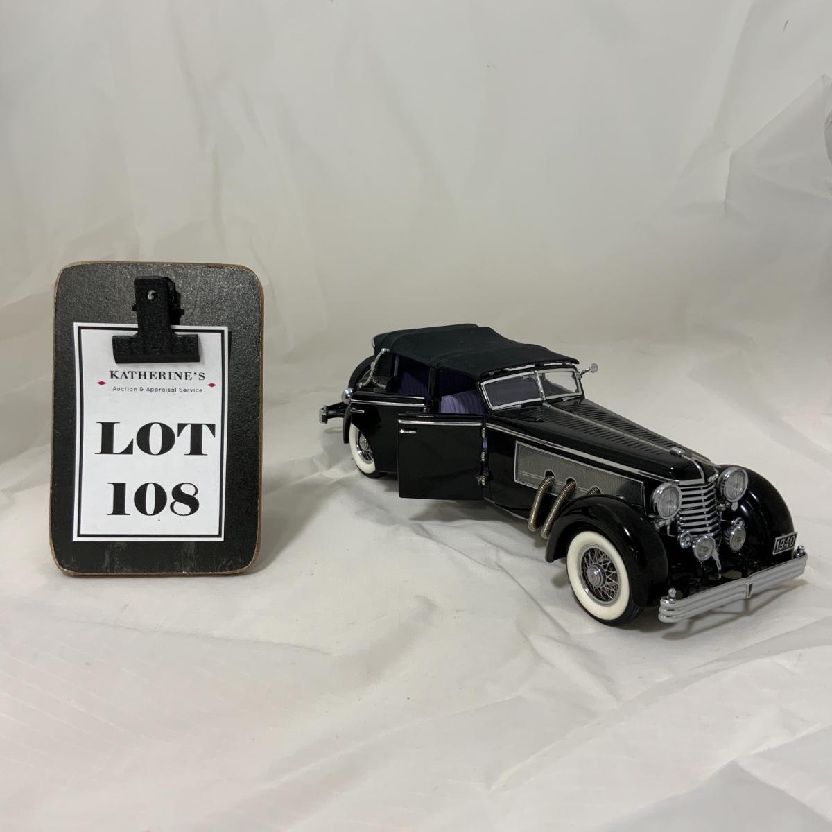 From the Estate of Peter Radovanovich: Franklin Mint Die-Cast 1940 Dusenberg. Car appears to be complete and looks excellent! Car does not come with original box. Please see photos for details and condition. ::: Shipping is available on this lot. If you require shipping you must let us know at the close of the auction. We will coordinate with you after the item has been won. Shipping fees will include insurance up to or exceeding the value of all items being mailed. If you have any questions regarding this lot please contact the auctioneer either via this website, by direct email or by phone. PICK UP TIMES and other important information can be found in the TERMS and DESCRIPTION of the auction. Please take a look for pertinent information. Thanks!
