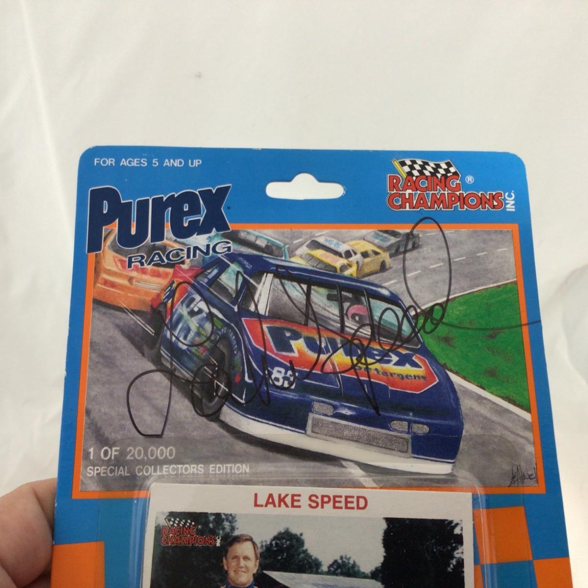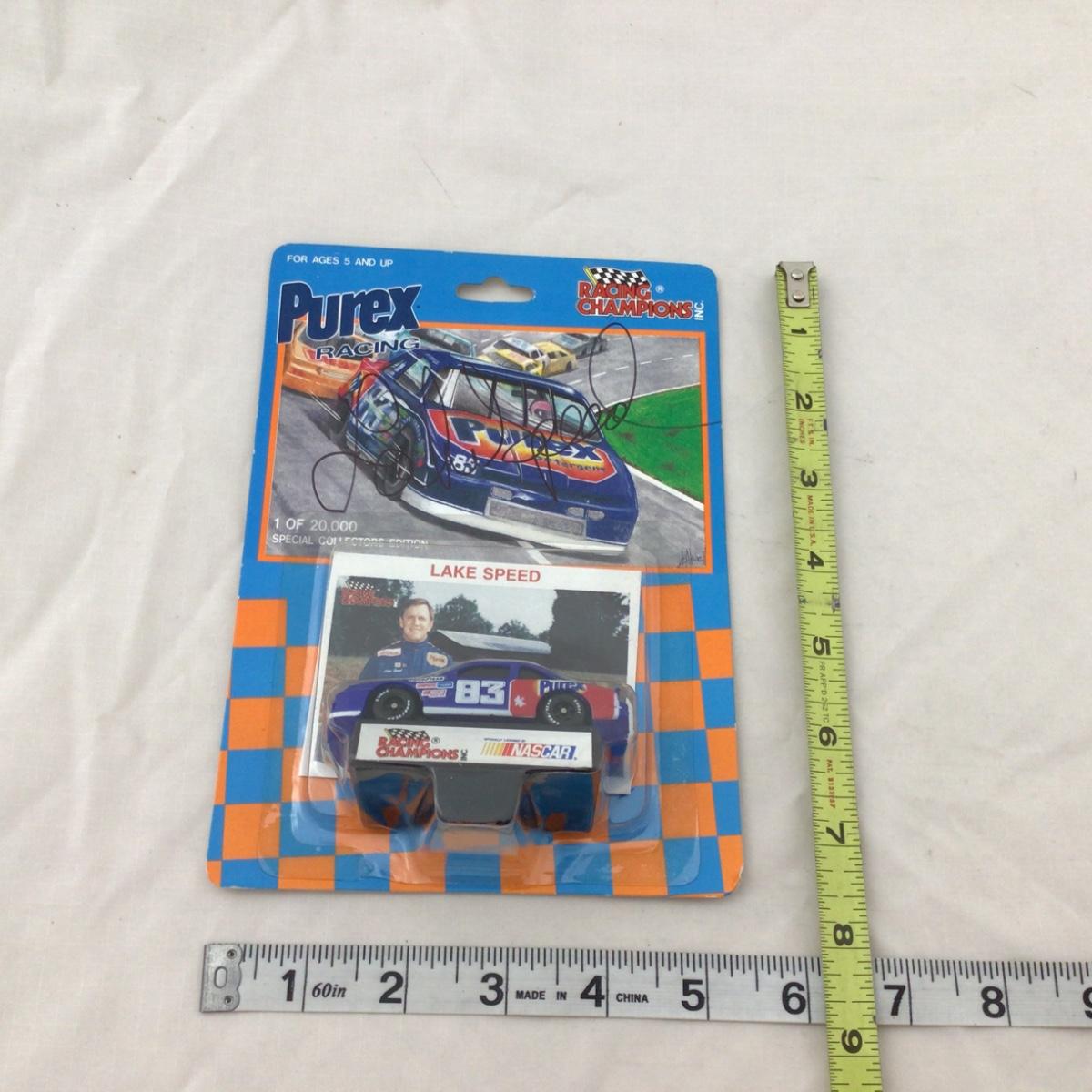 One signed Lake Speed racing collectors item with no certificate of authenticity. Signature is assumed authentic but not guaranteed. Seven other miscellaneous racing collectors items. Please see photos for details and condition. ::: Shipping is available on this lot. If you require shipping you must let us know at the close of the auction. We will coordinate with you after the item has been won. Shipping fees will include insurance up to or exceeding the value of all items being mailed. If you have any questions regarding this lot please contact the auctioneer either via this website, by direct email or by phone. PICK UP TIMES and other important information can be found in the TERMS and DESCRIPTION of the auction. Please take a look for pertinent information. Thanks!