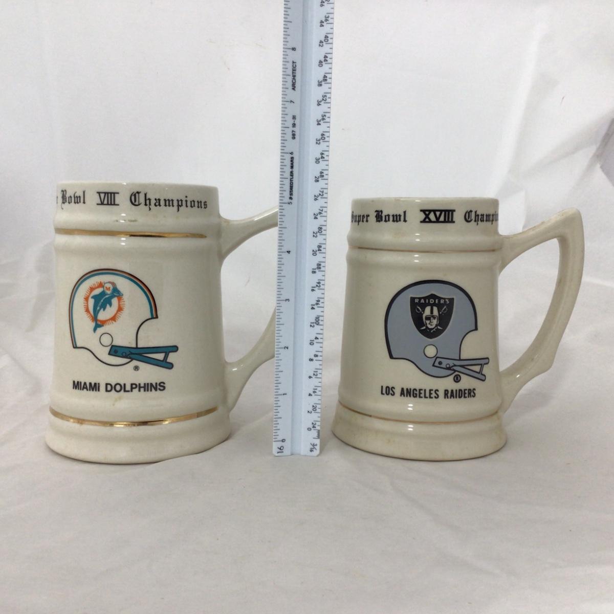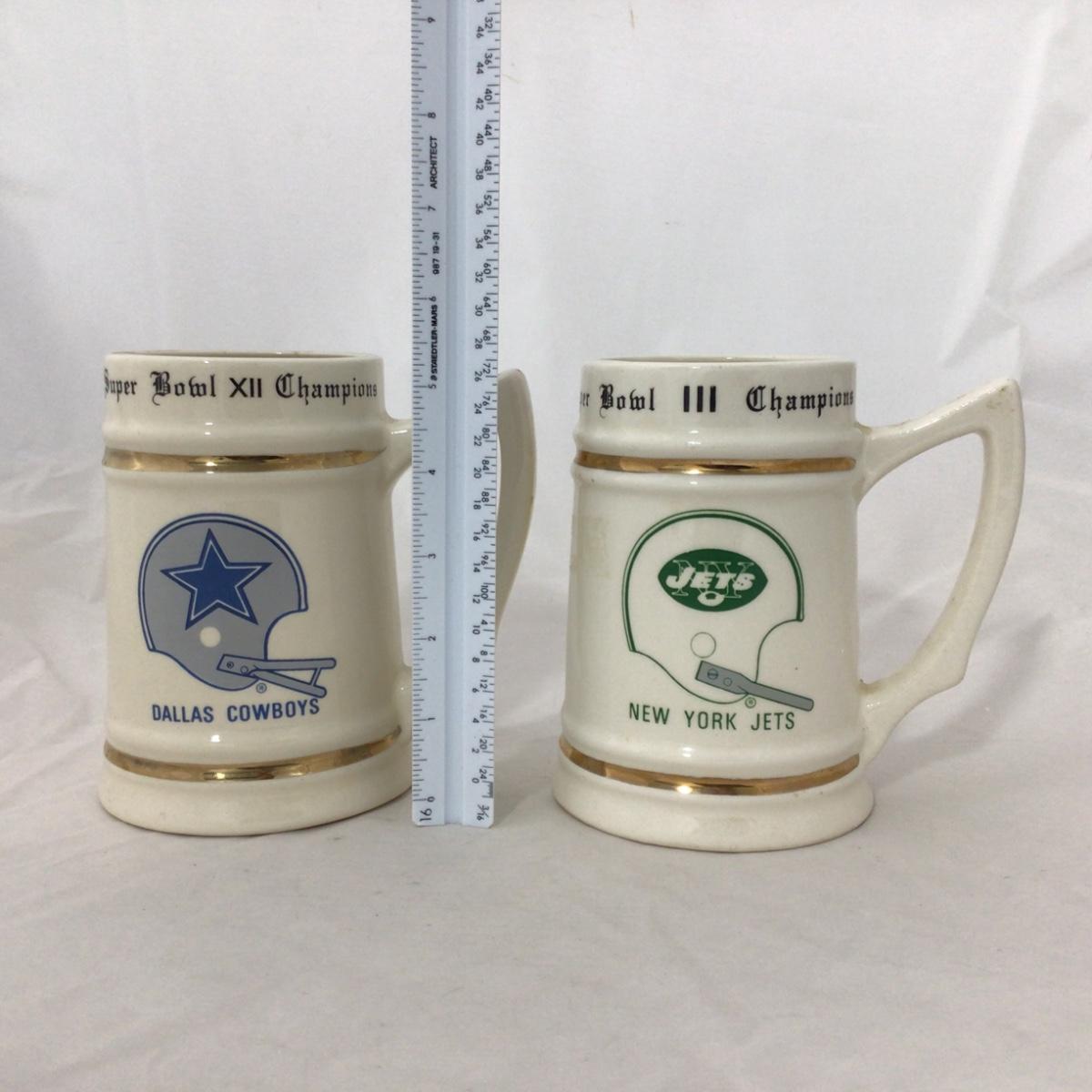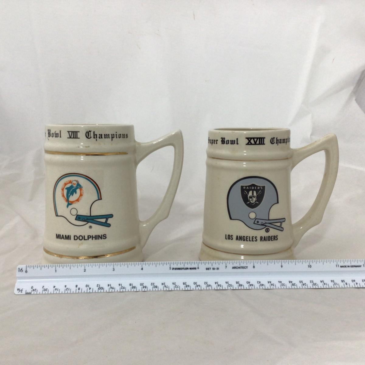 Seven total steins a Dolphins VIII, Chiefs IV, 49ers XIX, Cowboys XIII, Jetts III, Raiders XVIII, and a Packers XXXI stein. Please see photos for details and condition. ::: Shipping is available on this lot. If you require shipping you must let us know at the close of the auction. We will coordinate with you after the item has been won. Shipping fees will include insurance up to or exceeding the value of all items being mailed. If you have any questions regarding this lot please contact the auctioneer either via this website, by direct email or by phone. PICK UP TIMES and other important information can be found in the TERMS and DESCRIPTION of the auction. Please take a look for pertinent information. Thanks!