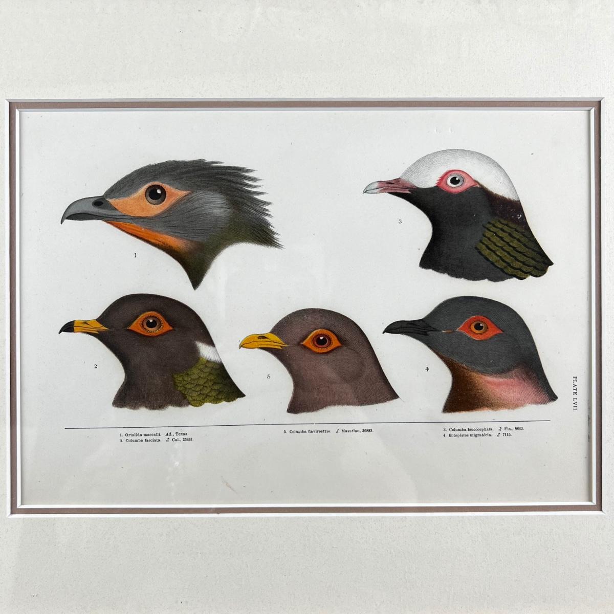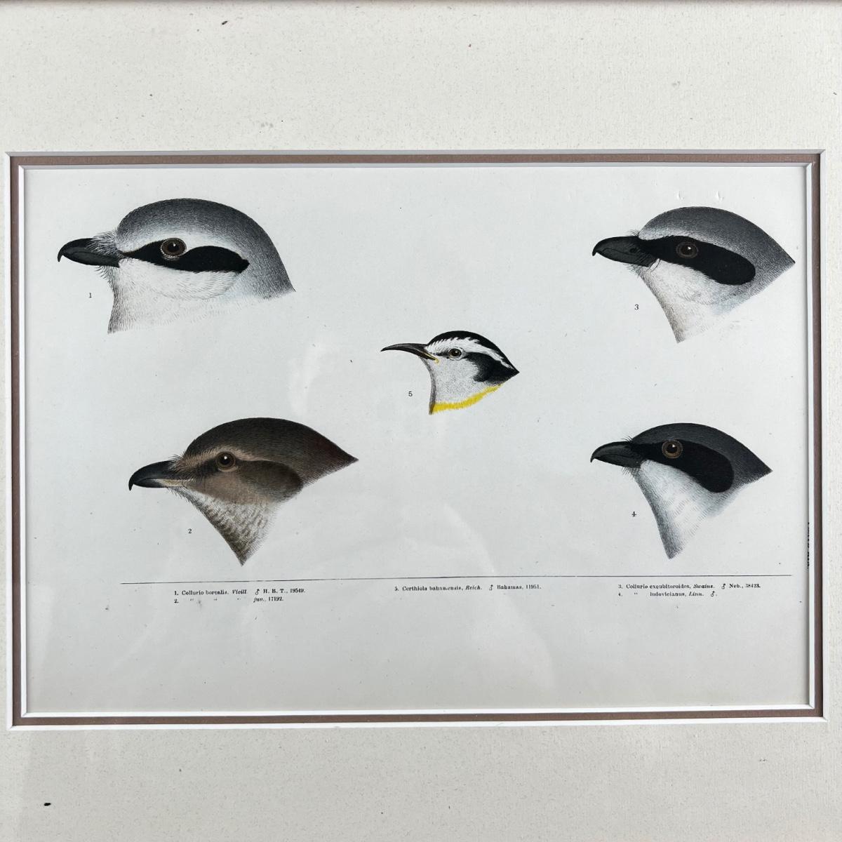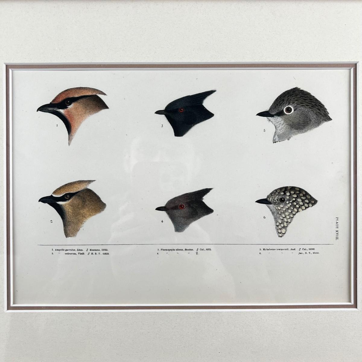 1082 Baird, Ridgeway, Brewer 4 Framed Bird Head Engravings