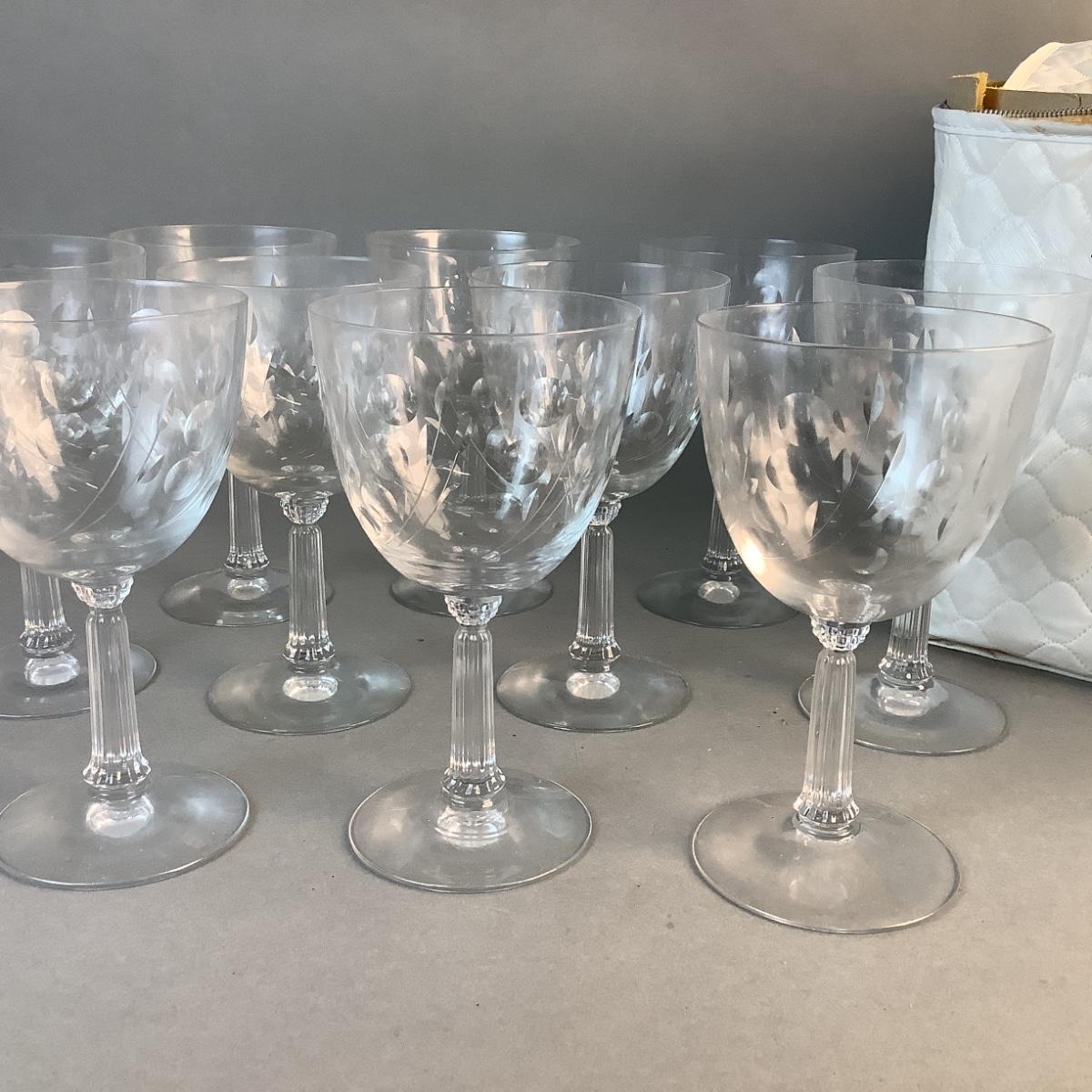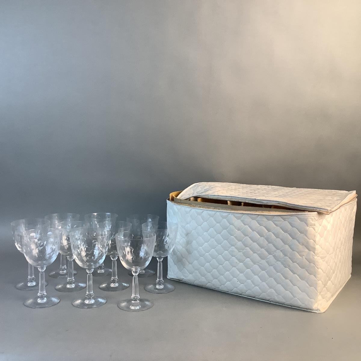 1082 Lot of 10 Crystal Wine Goblets with Storage Container