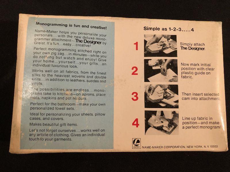 #1082 The Designer Monogram Attachment for Sewing Machine