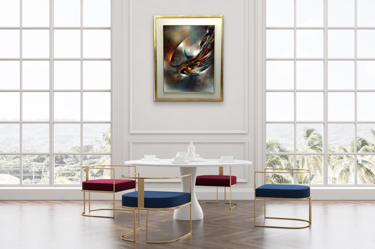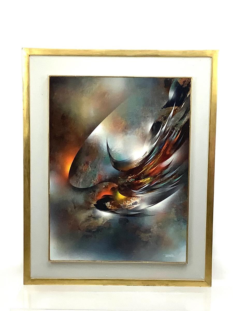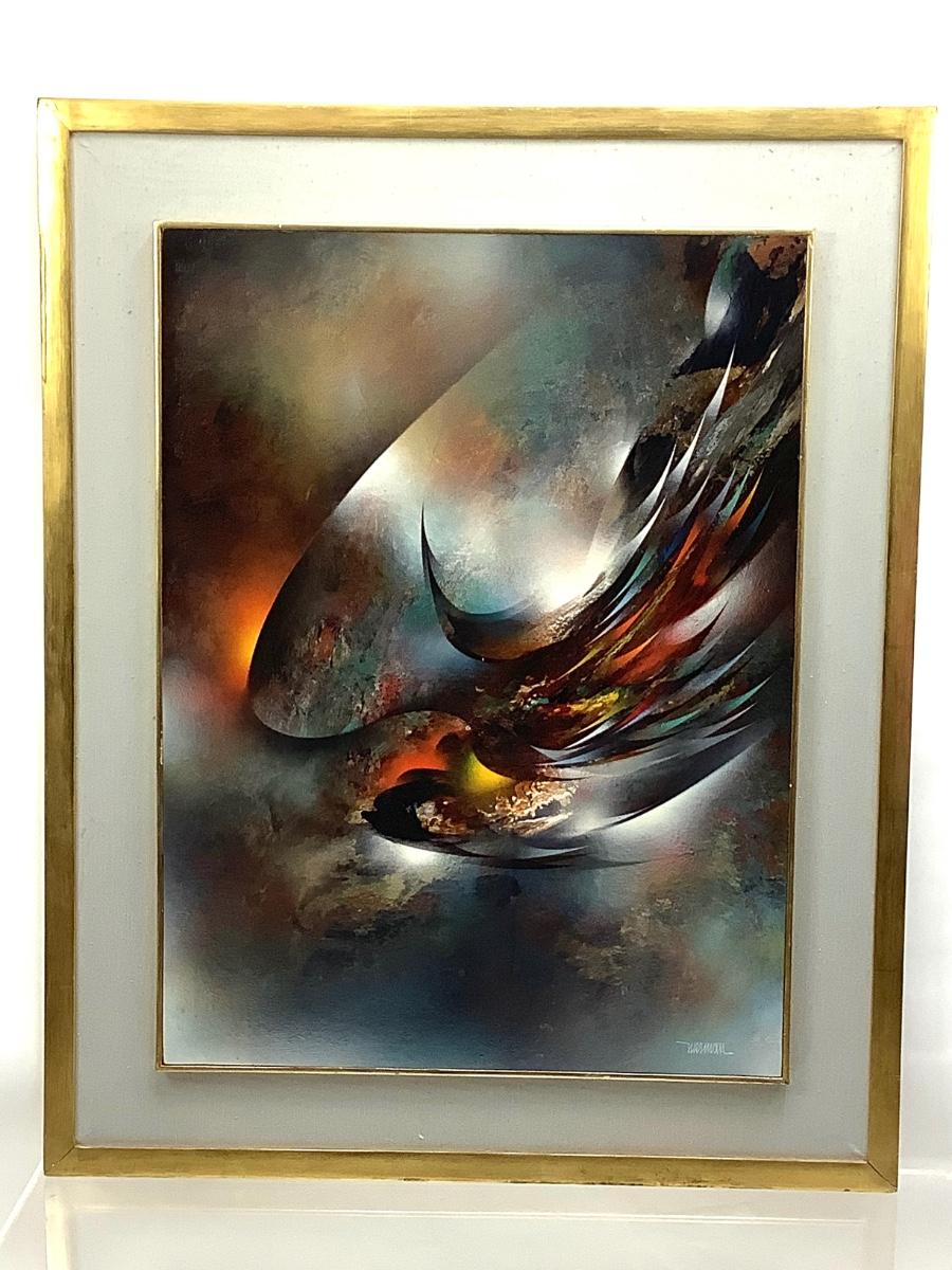 The original work of art is in a gold frame, measures 33" wide x 41" high. It is an acrylic on board. The artist Leonardo Nierman Mendelejis (1932-2023)was a Mexican abstract artist mostly known for his painting and sculpture. He has held hundreds of exhibitions throughout the United States, Mexico and Europe. His work can be found in museums throughout the entire world. This is a large statement art piece.
