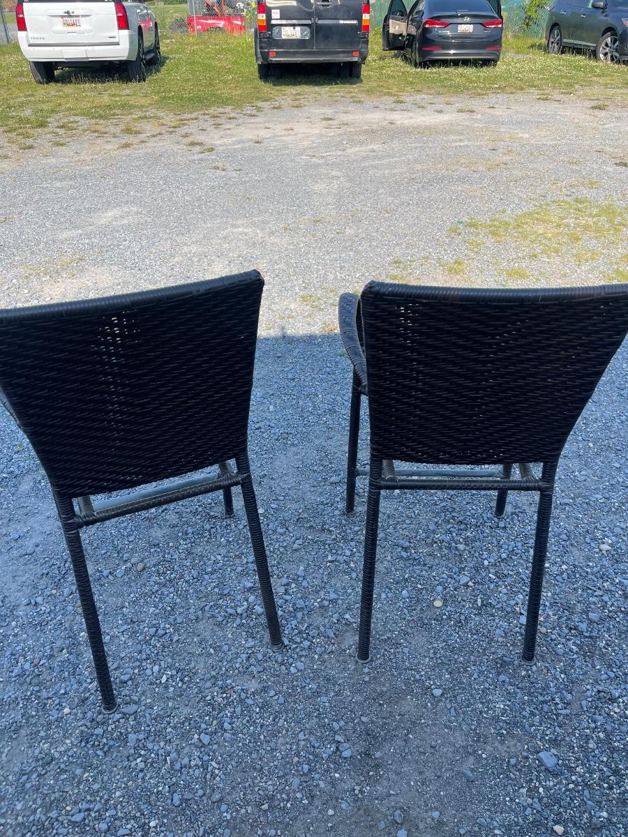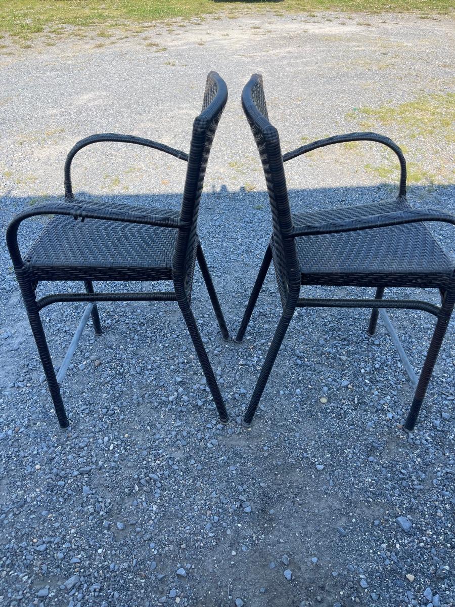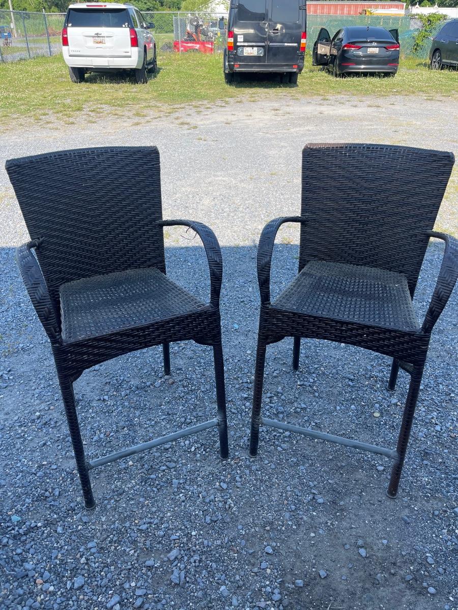 Pair Dark Brown Faux Wicker Patio Bar Stools