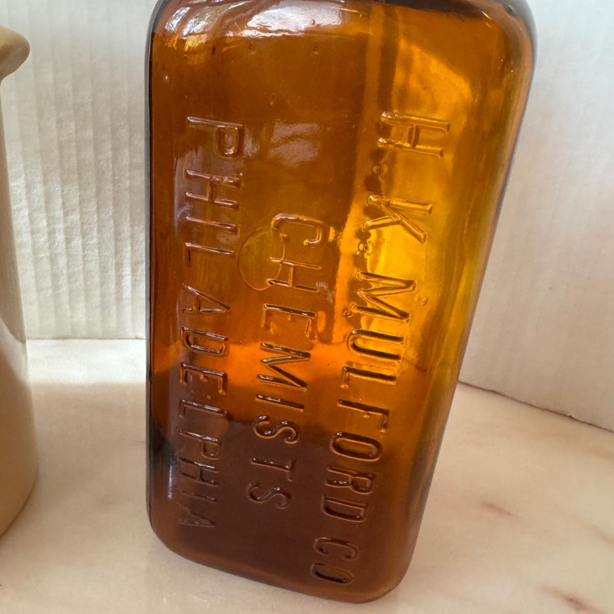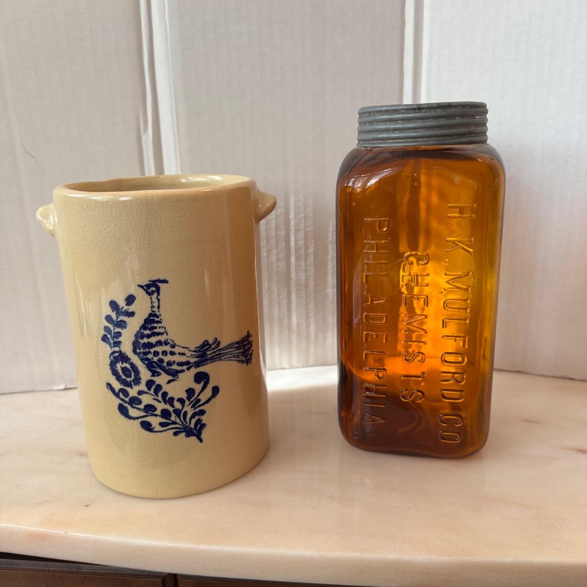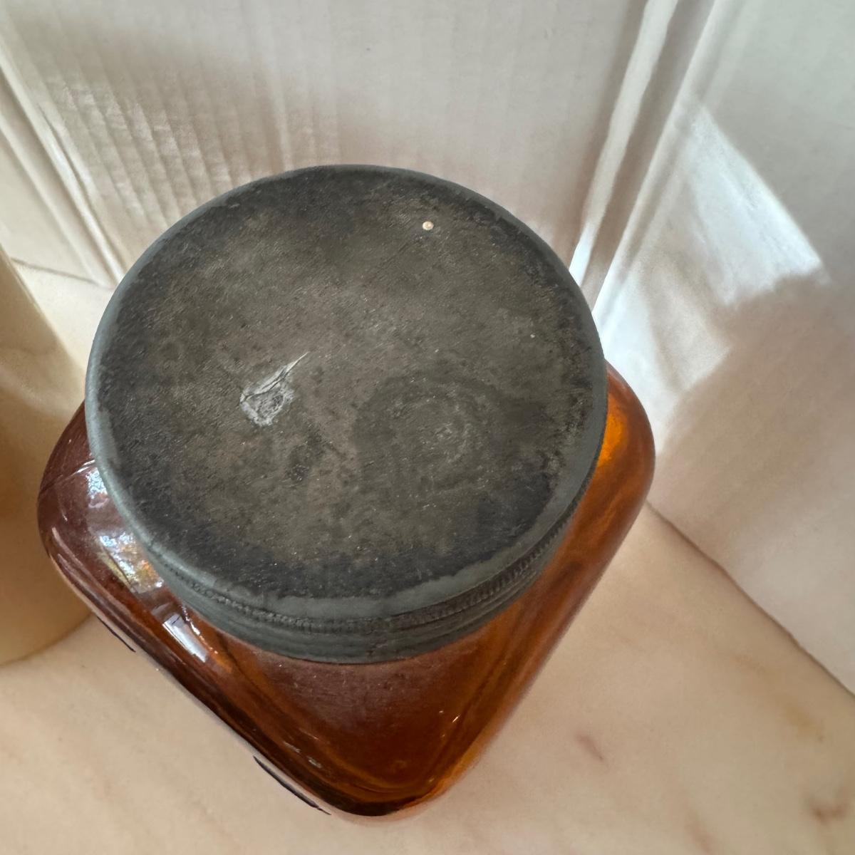 Jar has P marked on bottom with original top from Chemist in Philadelphia. Measuring 9” high x