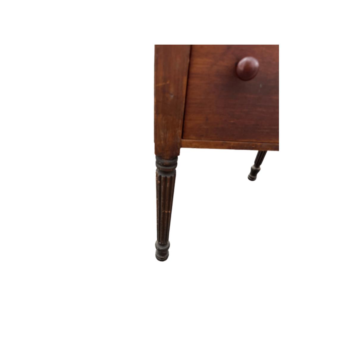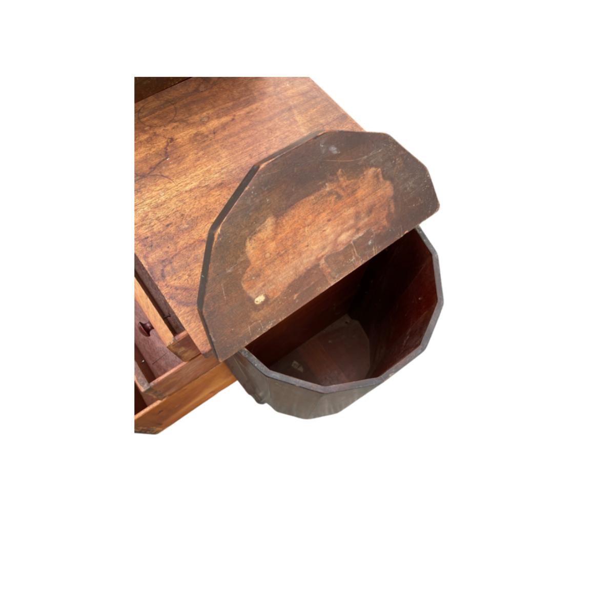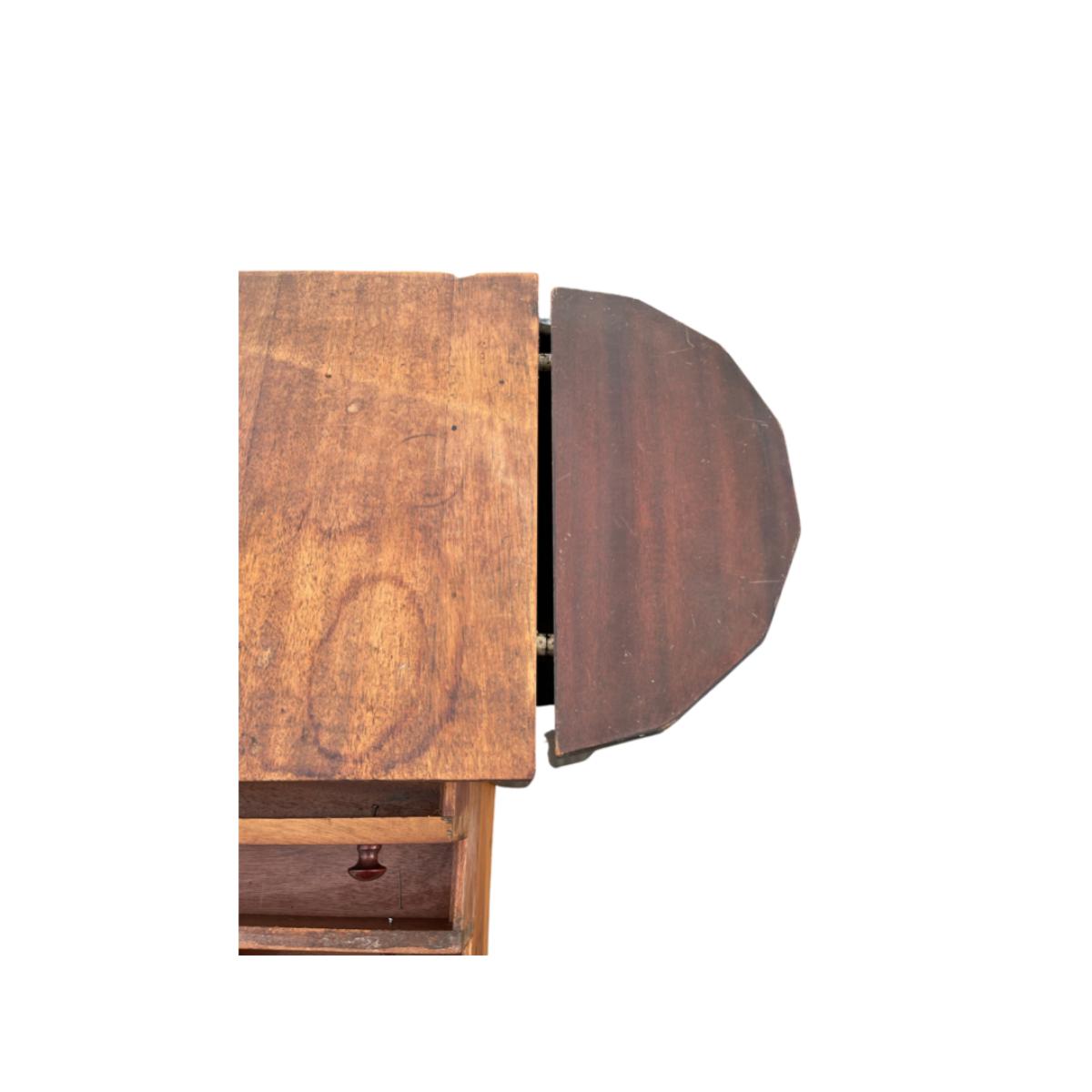 Martha Washington Sewing Stand. The left and right hinge pieces need to be glued. Outer surface has some marks and stains and needs to be refinished and/or stained if desired.