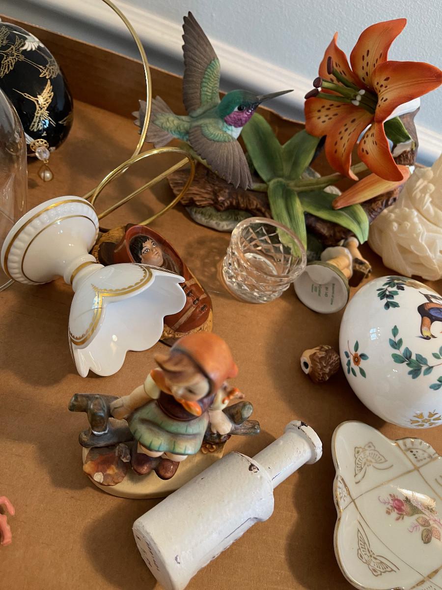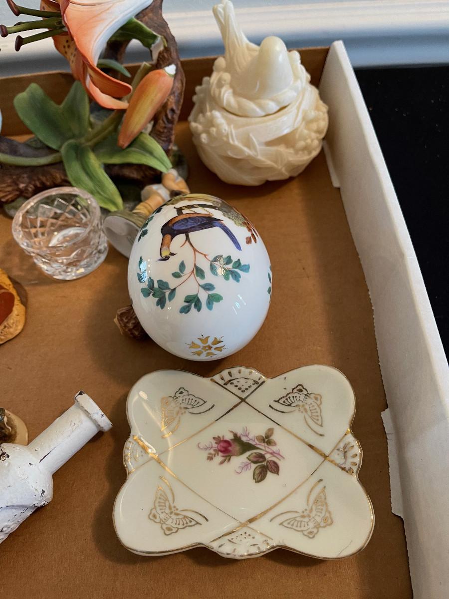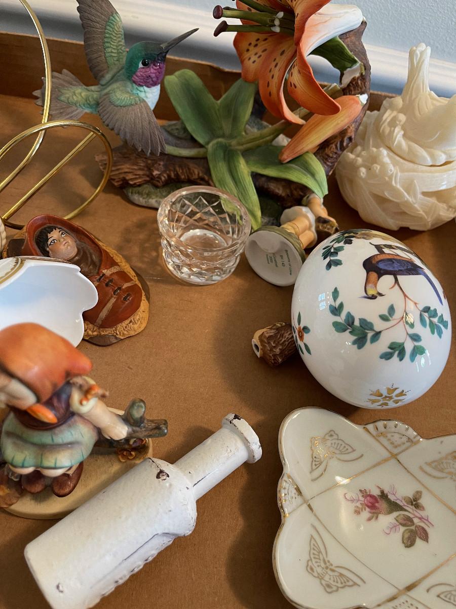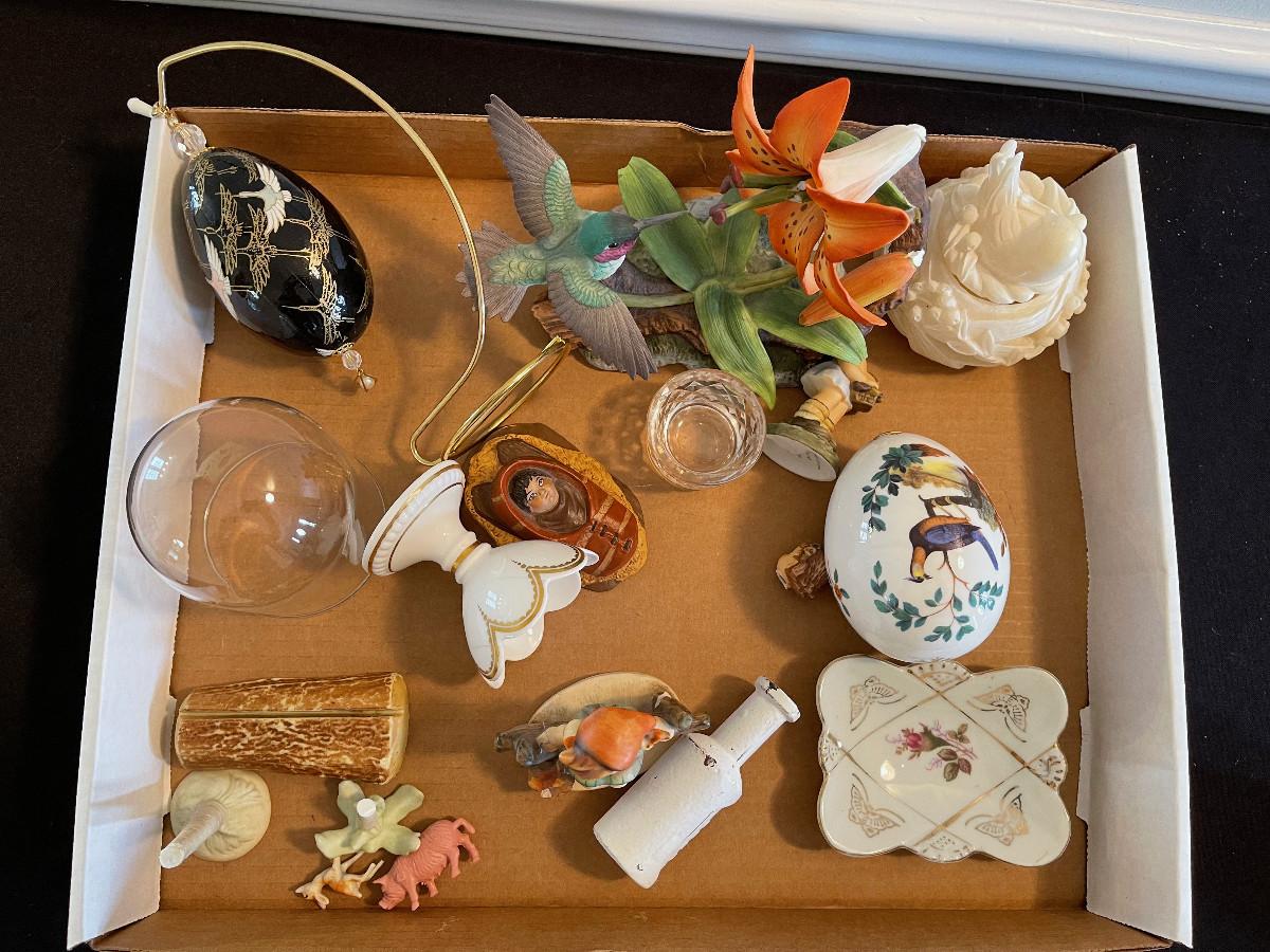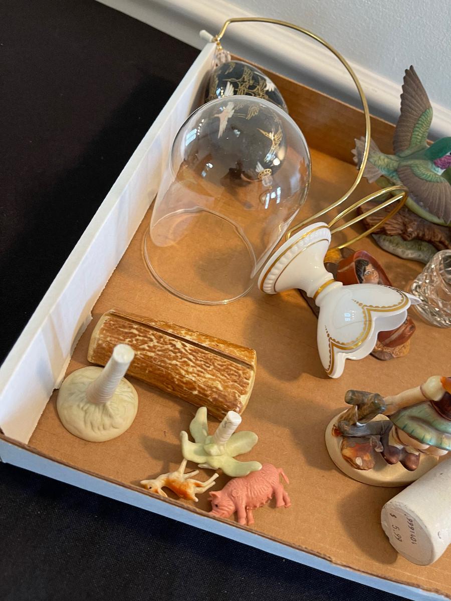 #1089 Tray of Pottery and Glassware Figurines