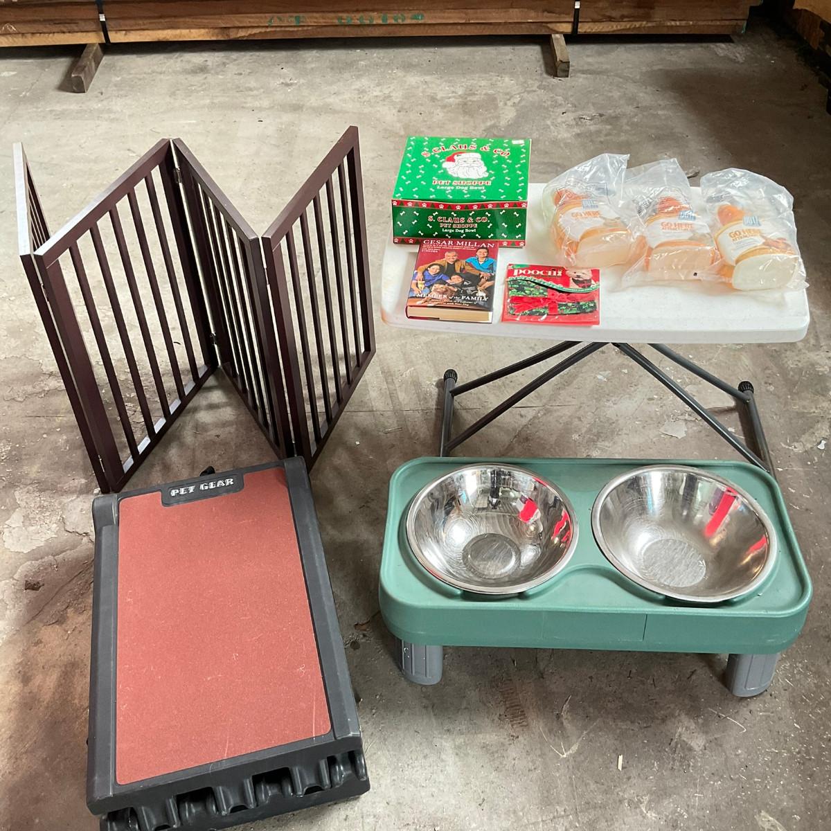 Folding ramp (71" long x 16" wide), Gate, Bowls, Go Here Attract Spray, Caesar Milan Book