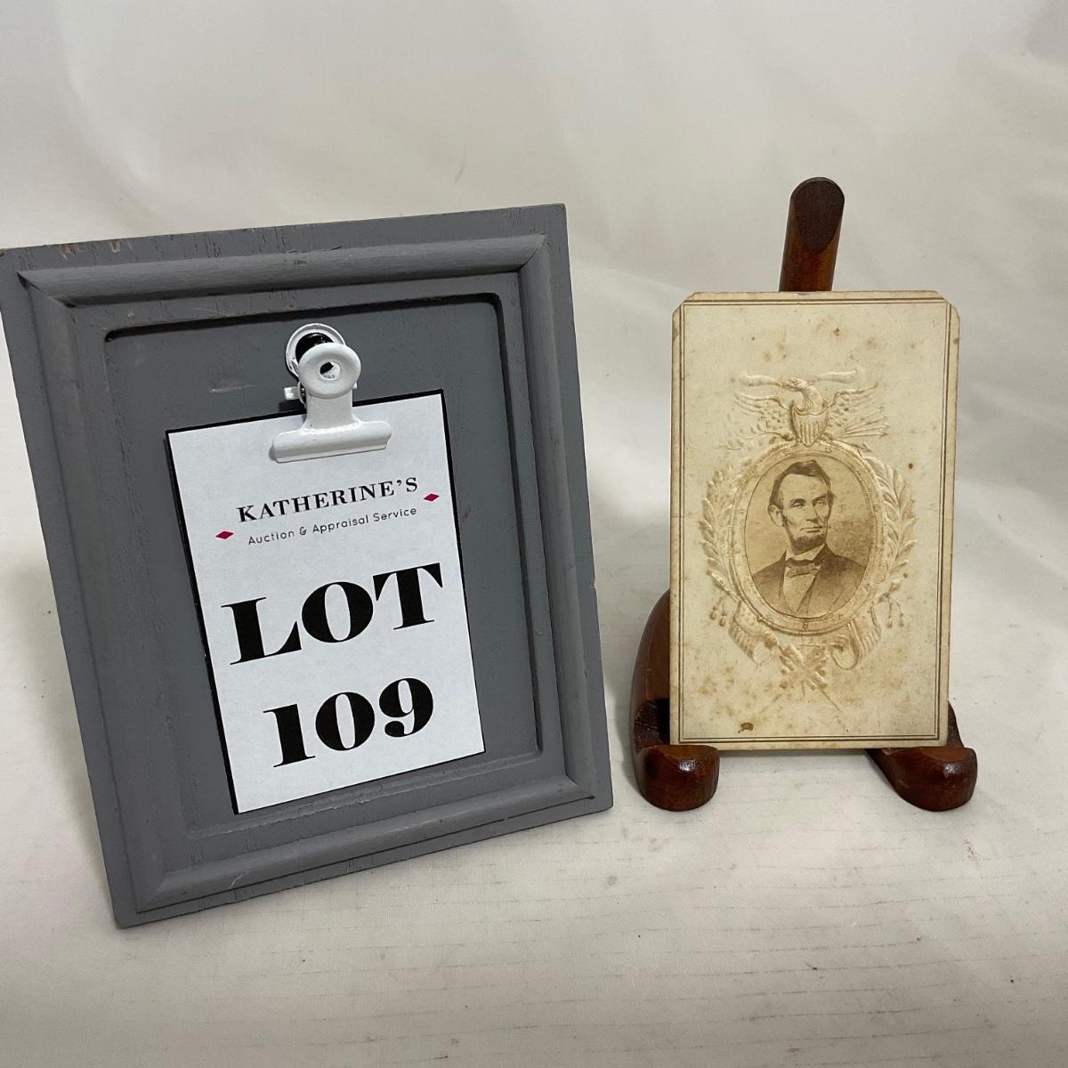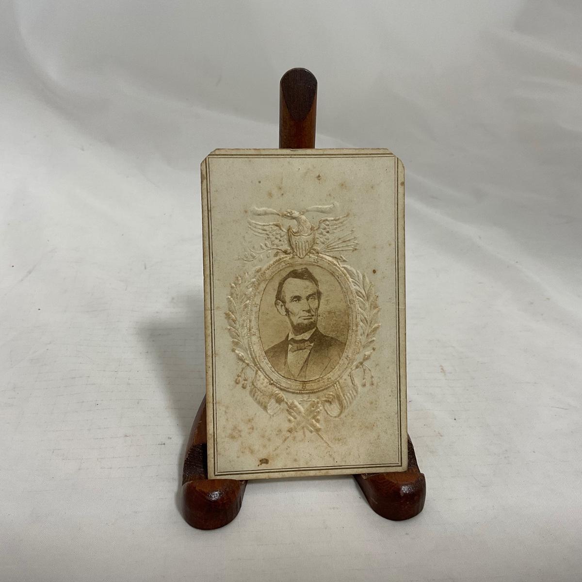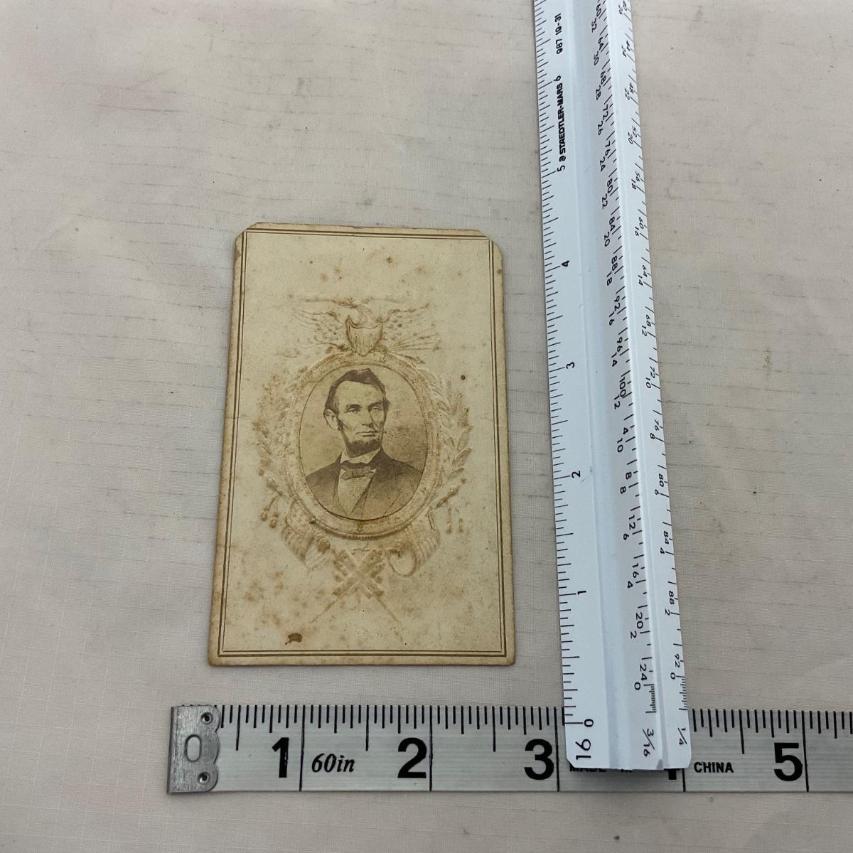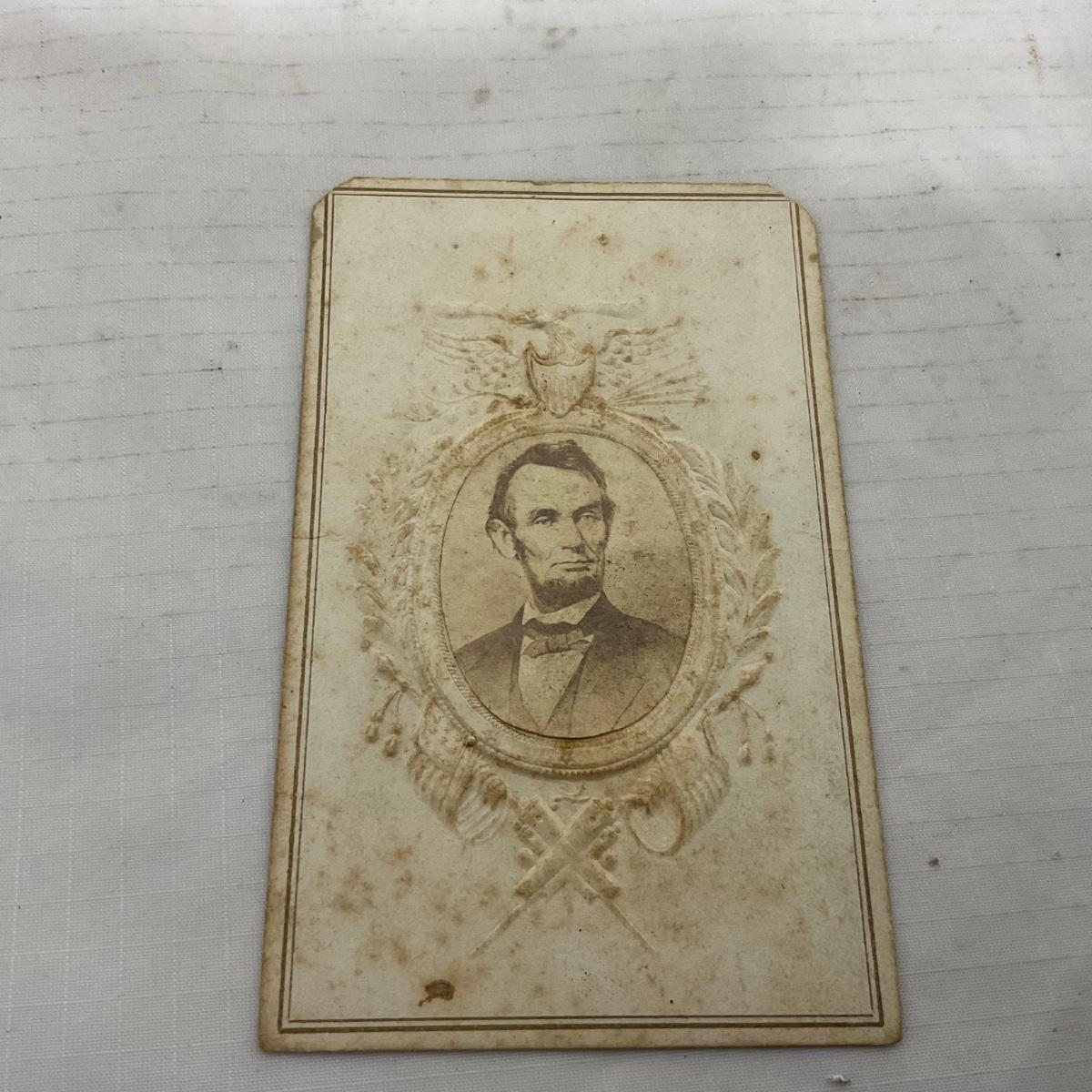 One Civi War era Abe Lincoln trade advertising. Please see photos for details and condition. ::: Shipping is available on this lot. If you require shipping you must let us know at the close of the auction. We will coordinate with you after the item has been won. Shipping fees will include insurance up to or exceeding the value of all items being mailed. If you have any questions regarding this lot please contact the auctioneer either via this website, by direct email or by phone. PICK UP TIMES and other important information can be found in the TERMS and DESCRIPTION of the auction. Please take a look for pertinent information. Thanks!