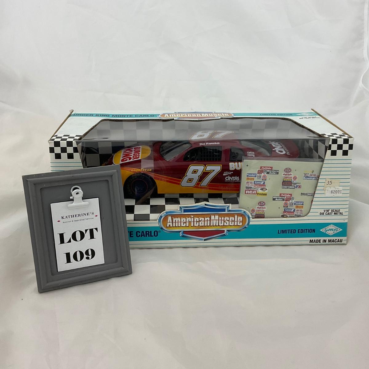 One NASCAR die cast 1:18 scale Burger King Monte Carlo in box. Please see photos for details and condition. ::: Shipping is available on this lot. If you require shipping you must let us know at the close of the auction. We will coordinate with you after the item has been won. Shipping fees will include insurance up to or exceeding the value of all items being mailed. If you have any questions regarding this lot please contact the auctioneer either via this website, by direct email or by phone. PICK UP TIMES and other important information can be found in the TERMS and DESCRIPTION of the auction. Please take a look for pertinent information. Thanks!