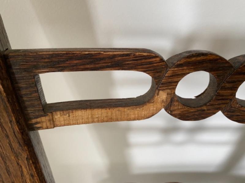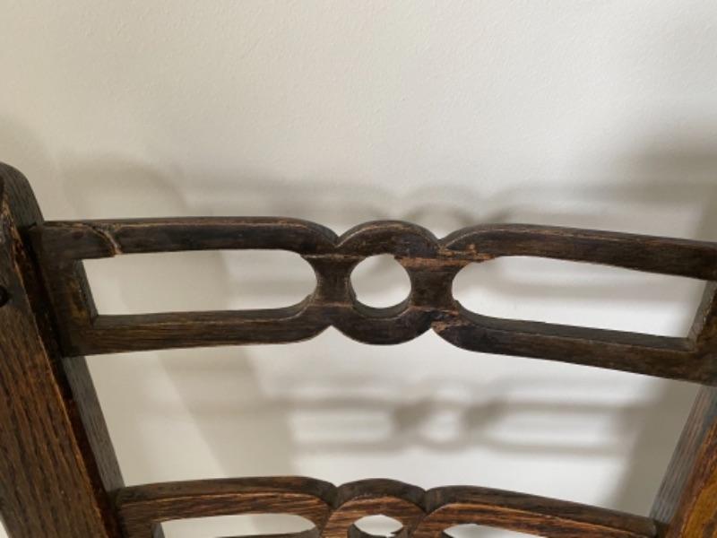 Some damage to the detail of chair they measure 34” high x 16’ seat height x 13” depth x 17.5” seat width
