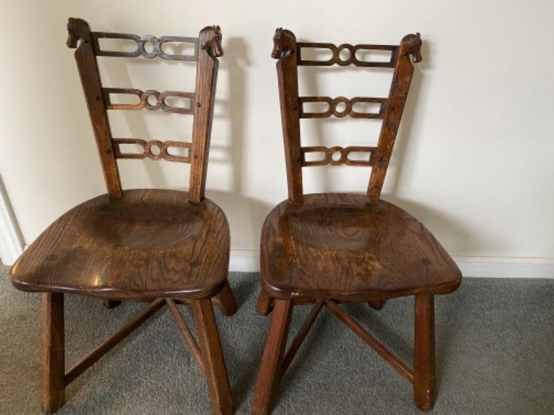 109 Pair of Romweber Viking Oak Horse Head Chair