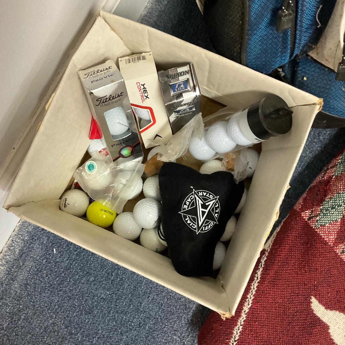 1091 Lot of Golf Clubs with Blanket , Extra Golf Balls , Carrying Case