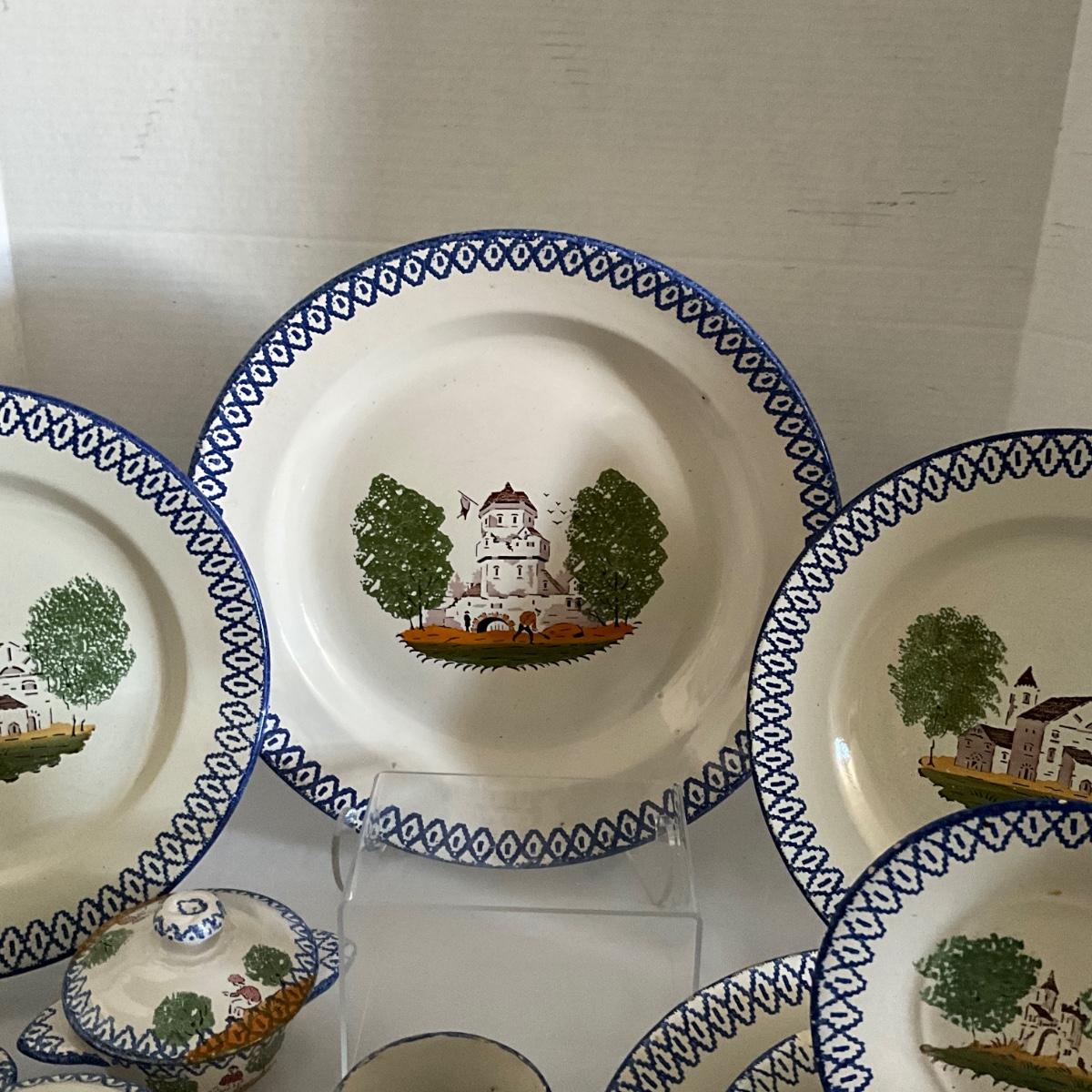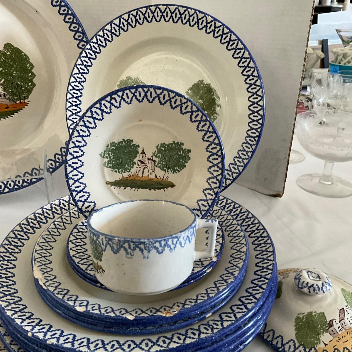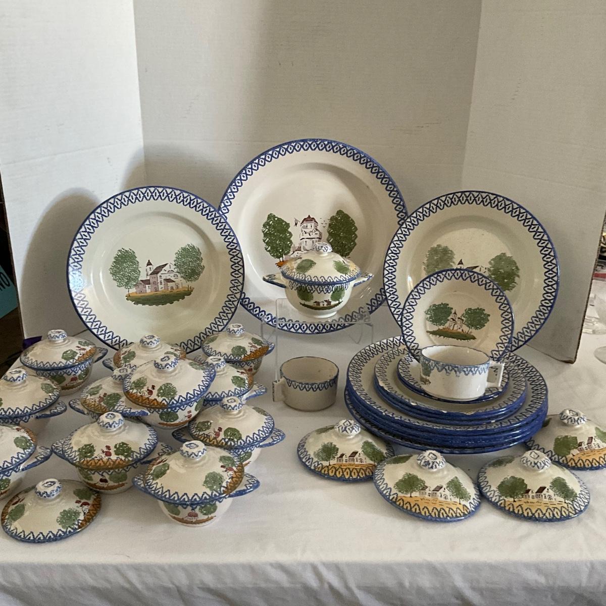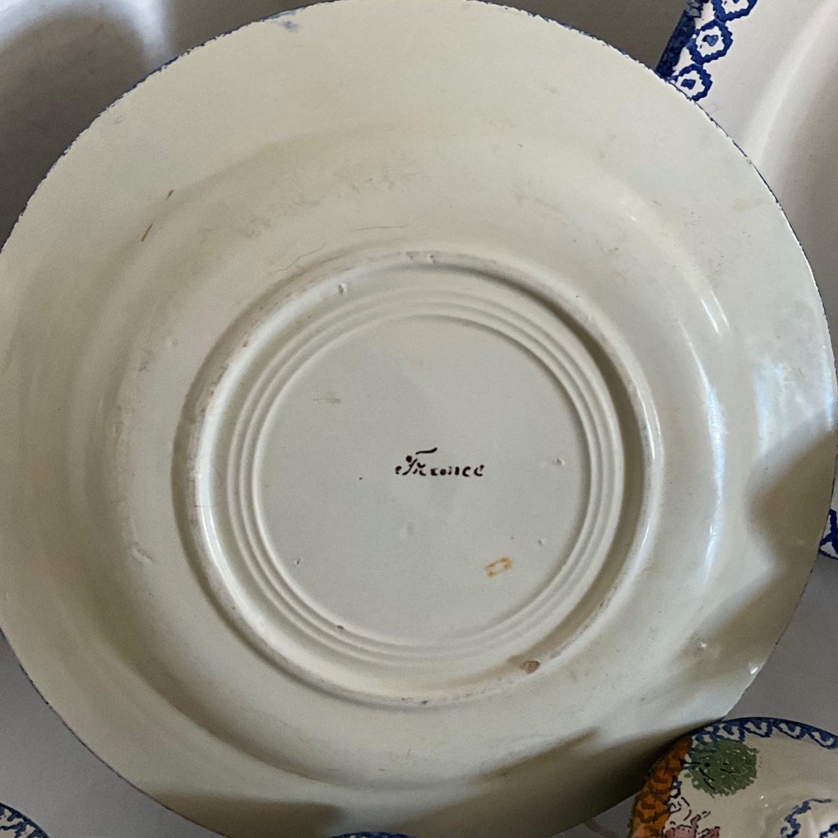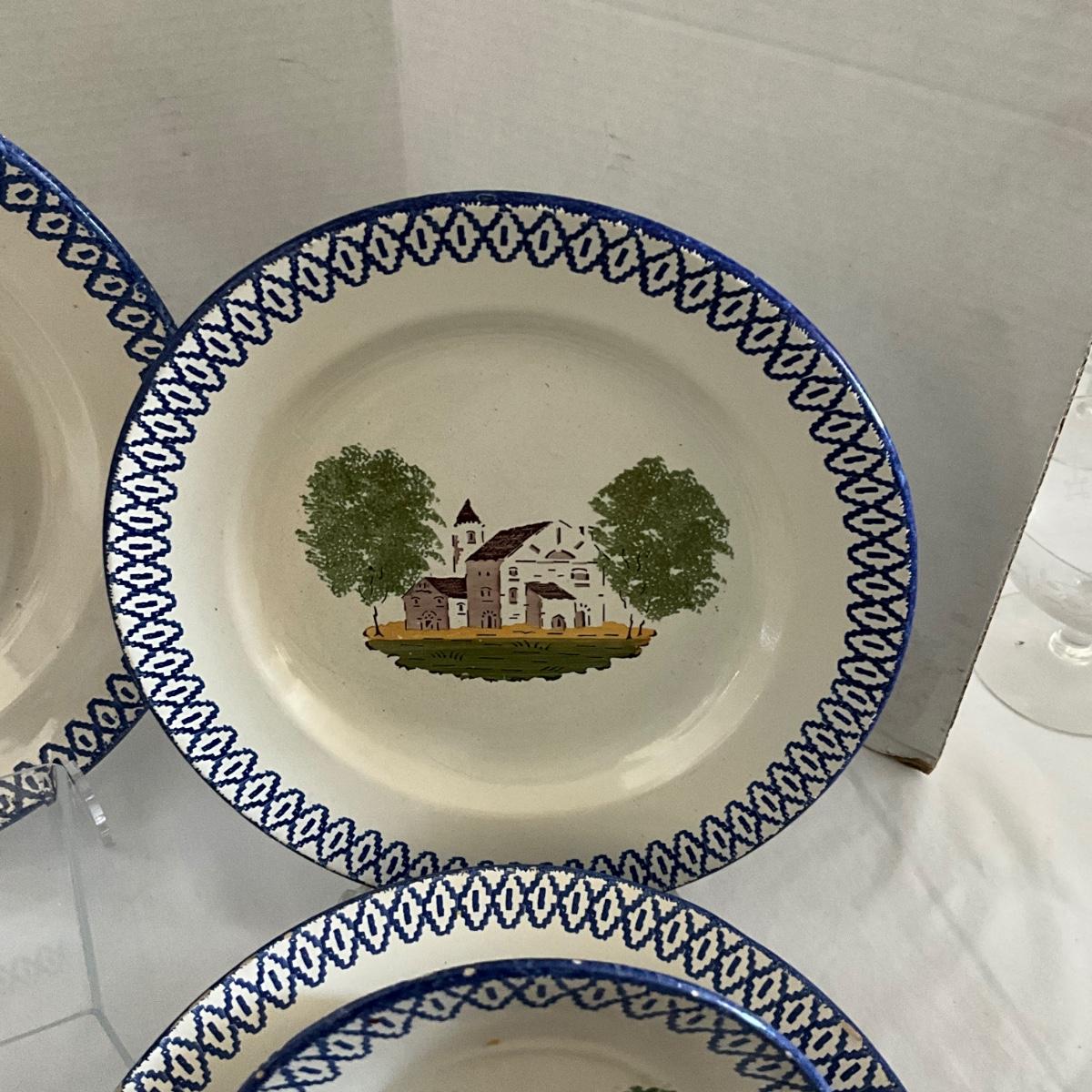 1093 Antique French Charolles Faience Pottery depicting Native Characters from Country Village
