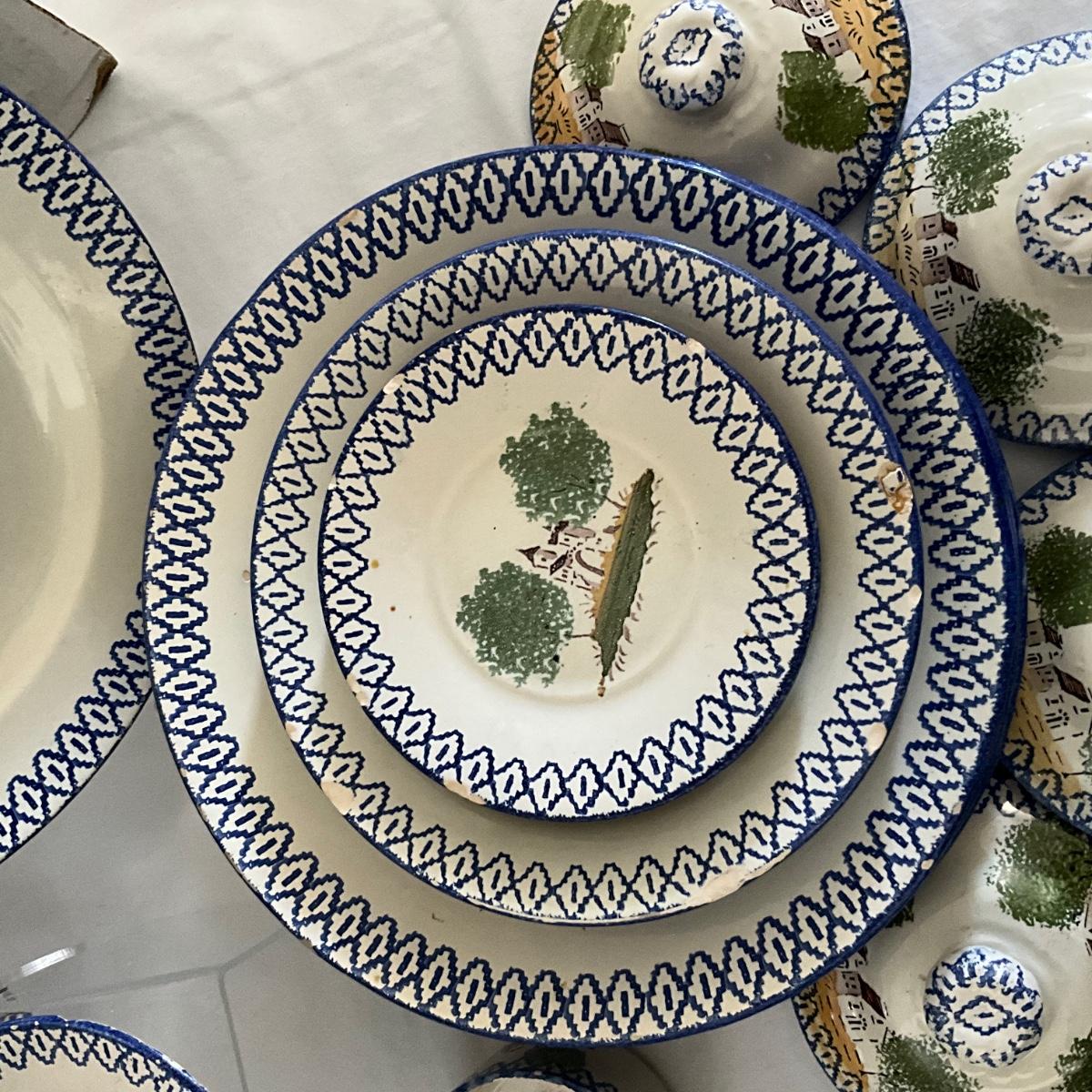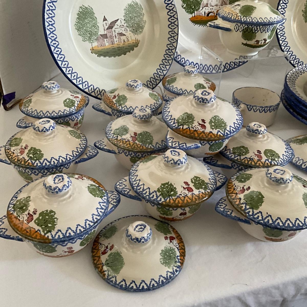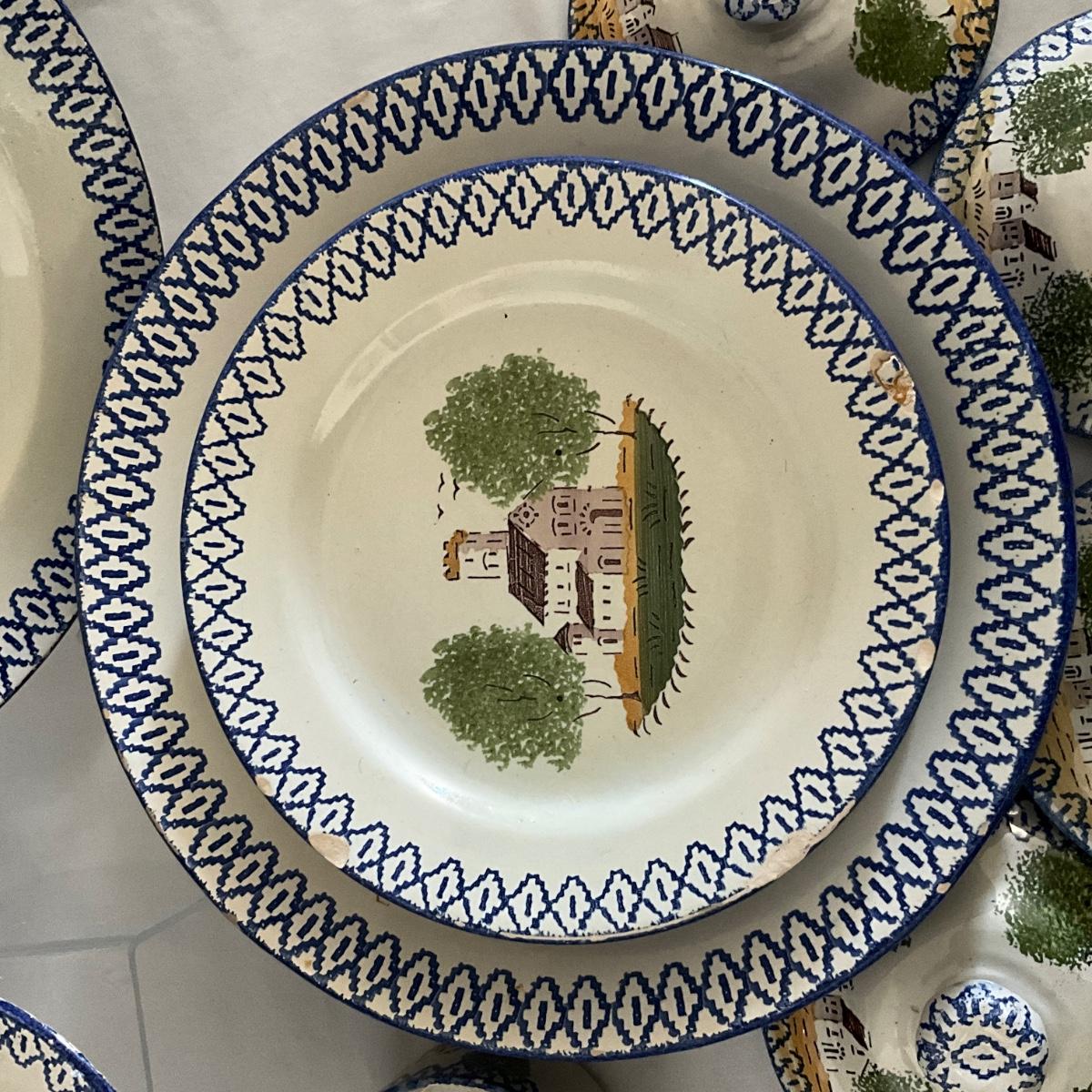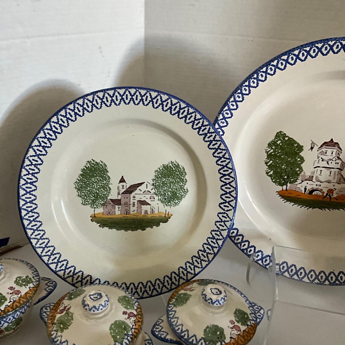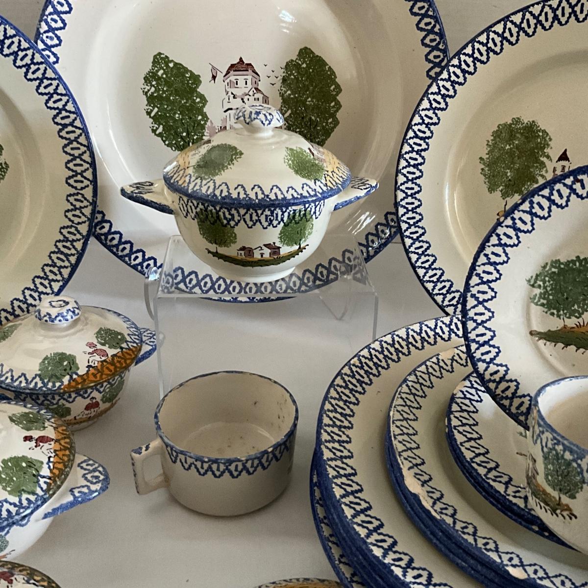 1093 Antique French Charolles Faience Pottery depicting Native Characters from Country Village