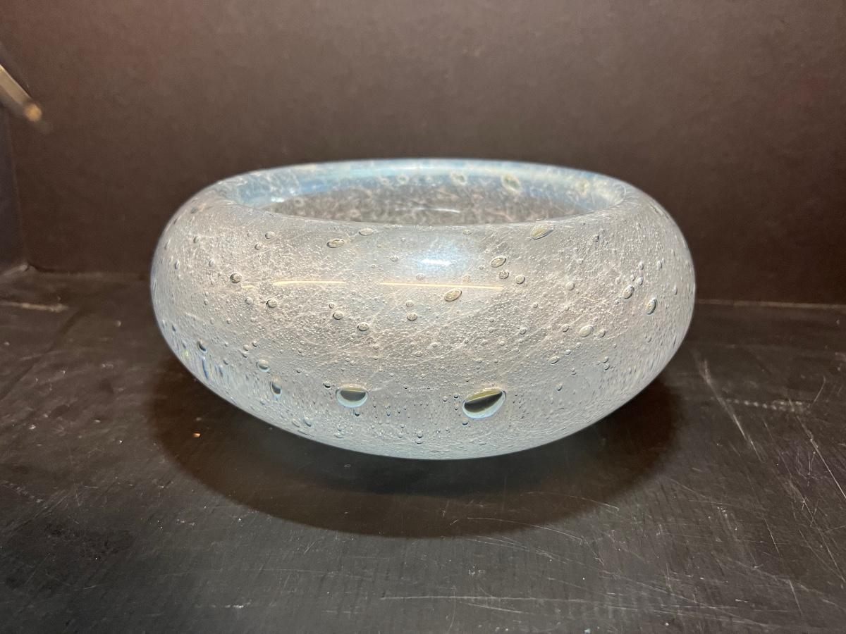 1093 Bubble Art Glass Bowl signed Strombergshyttan