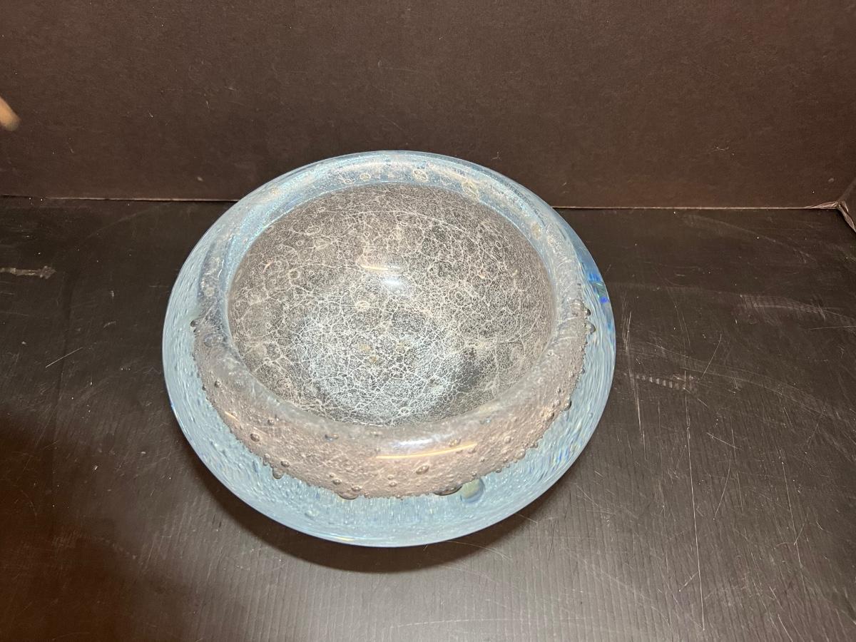 1093  Bubble Art Glass Bowl signed Strombergshyttan