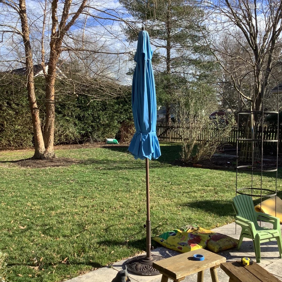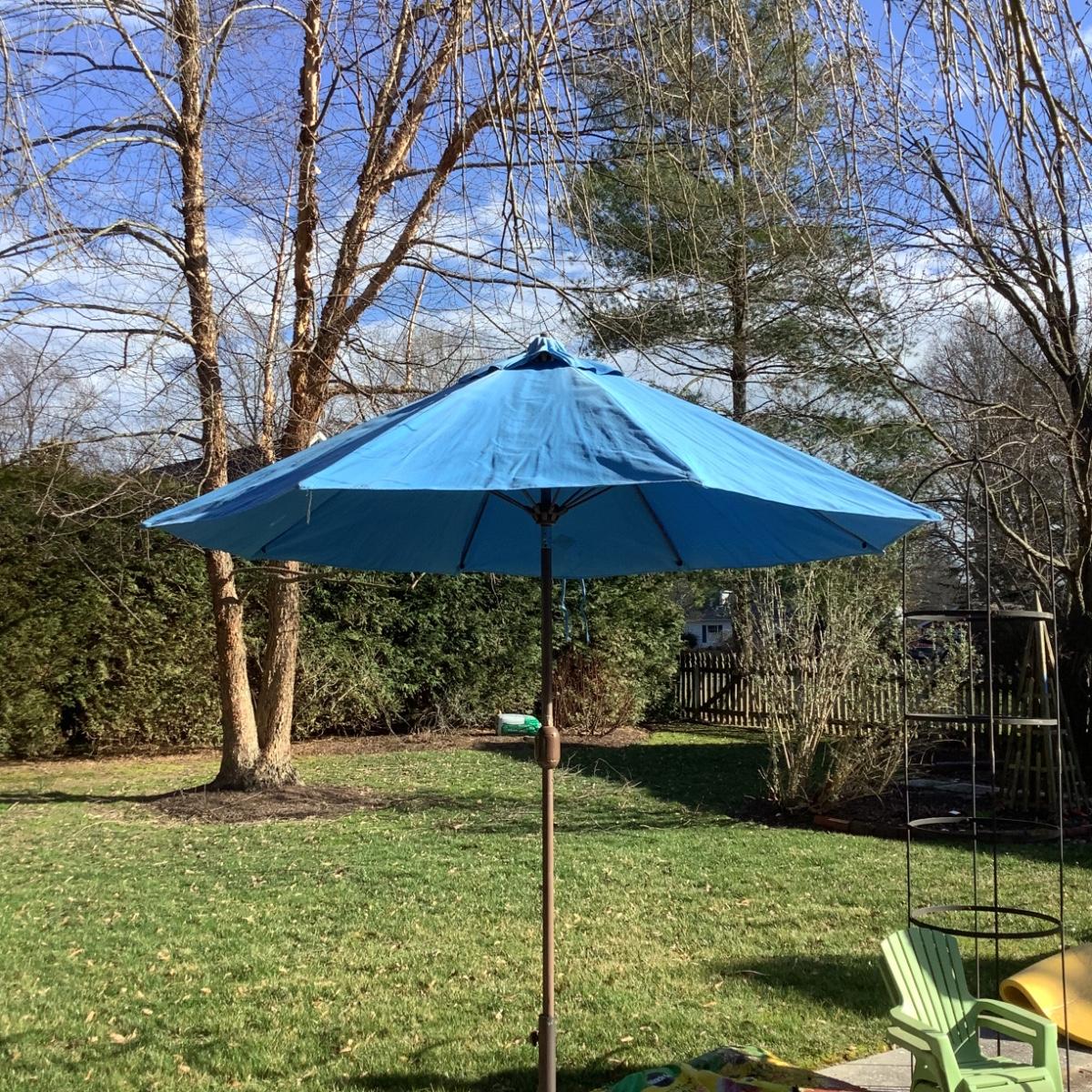 1095  Large 7.5' Blue Market Umbrella with Metal Stand