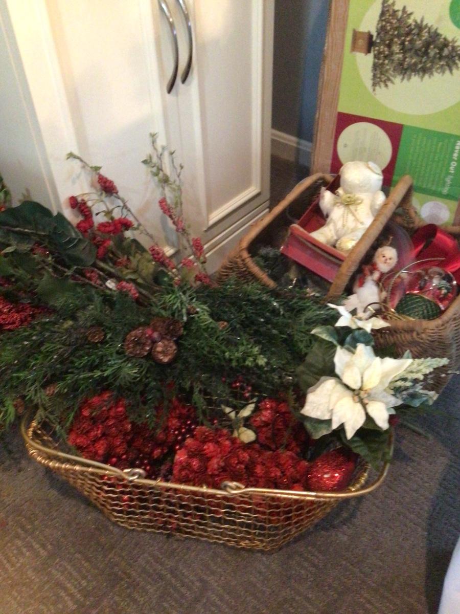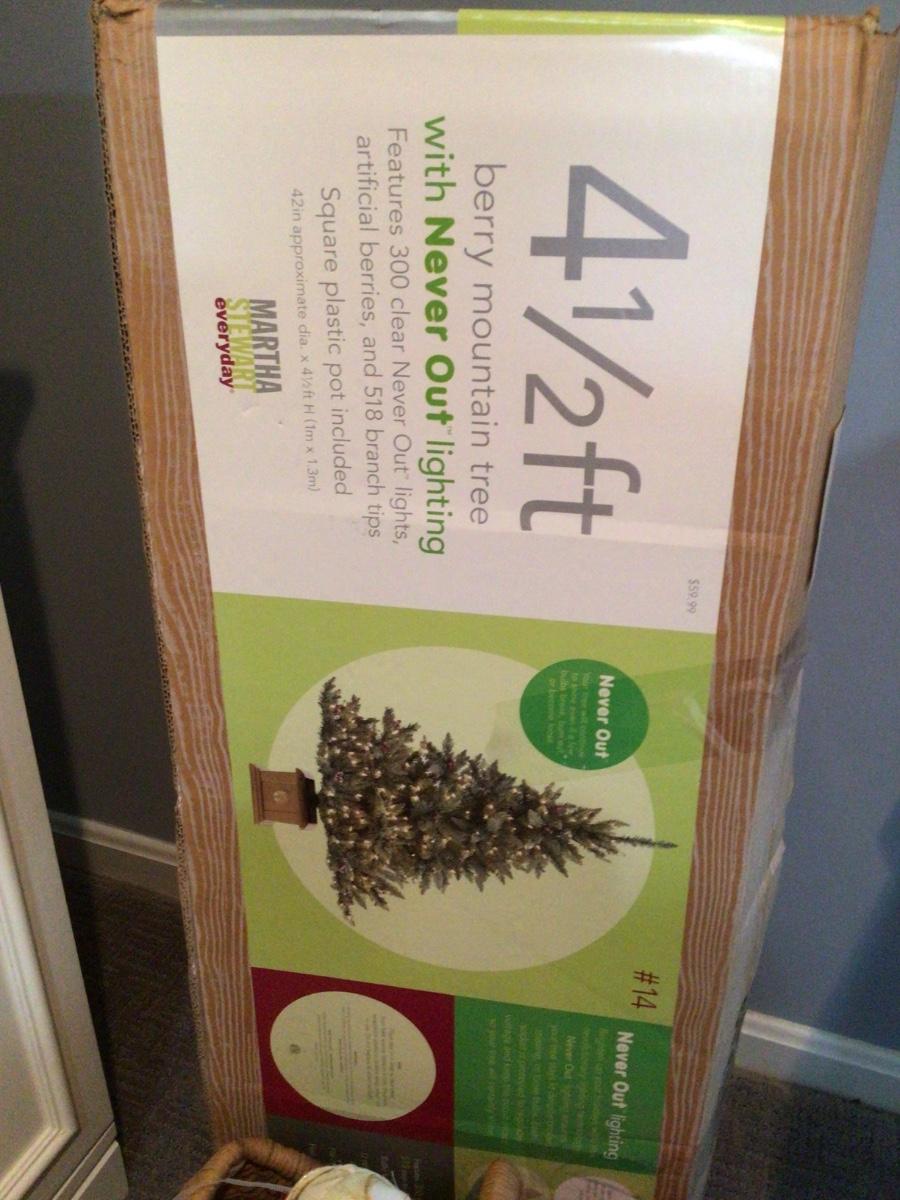 The Christmas tree is 4.5’ with lights, basket of ornaments and faux greenery for decoration.