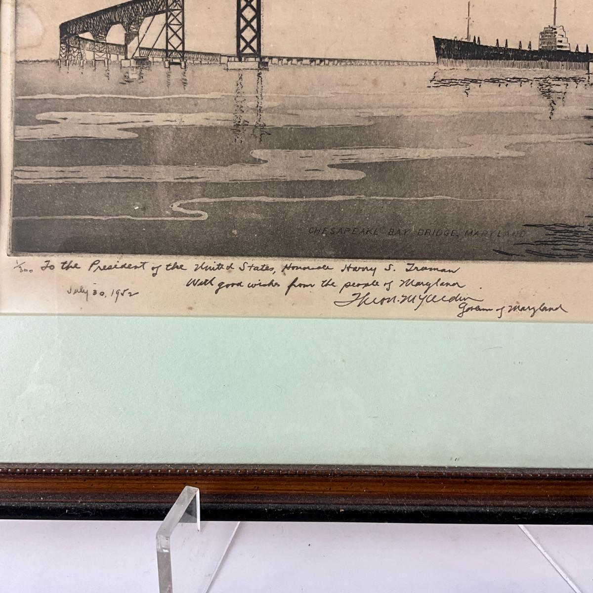 "To The President Of The United States Henry S. Truman With Good Wishes From The People Of Maryland" Signed By Theodore McKeldin (1952)