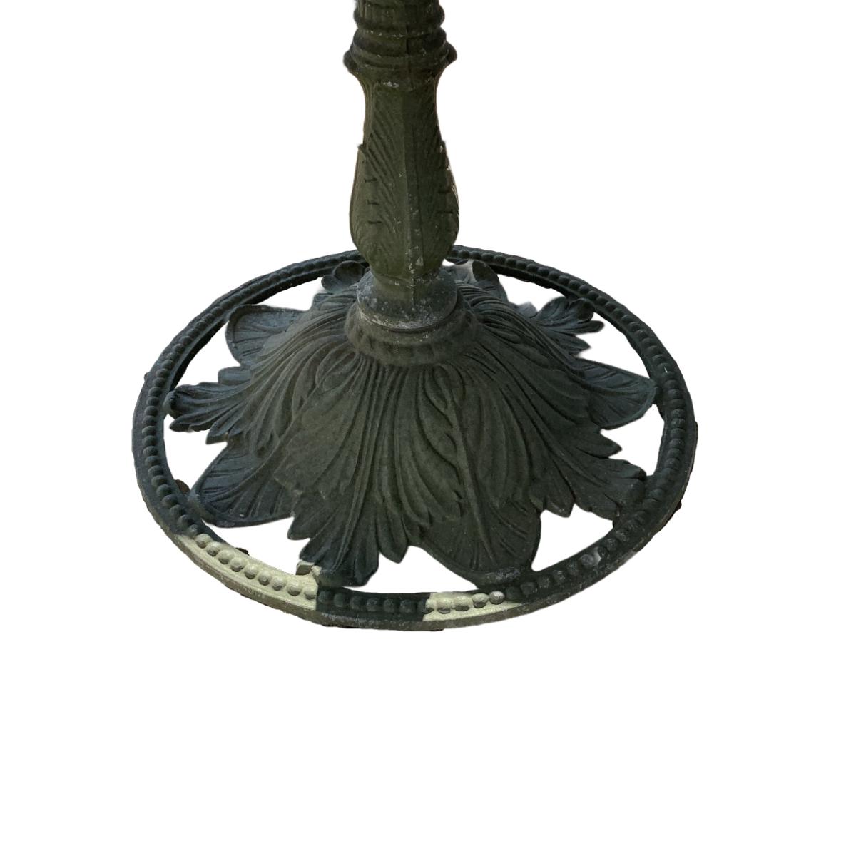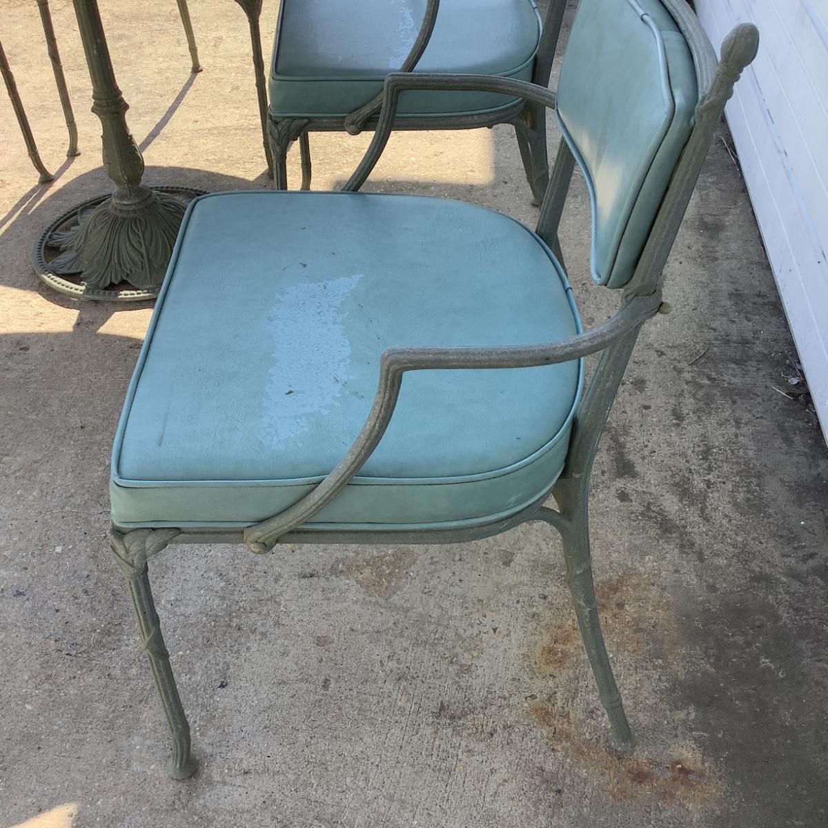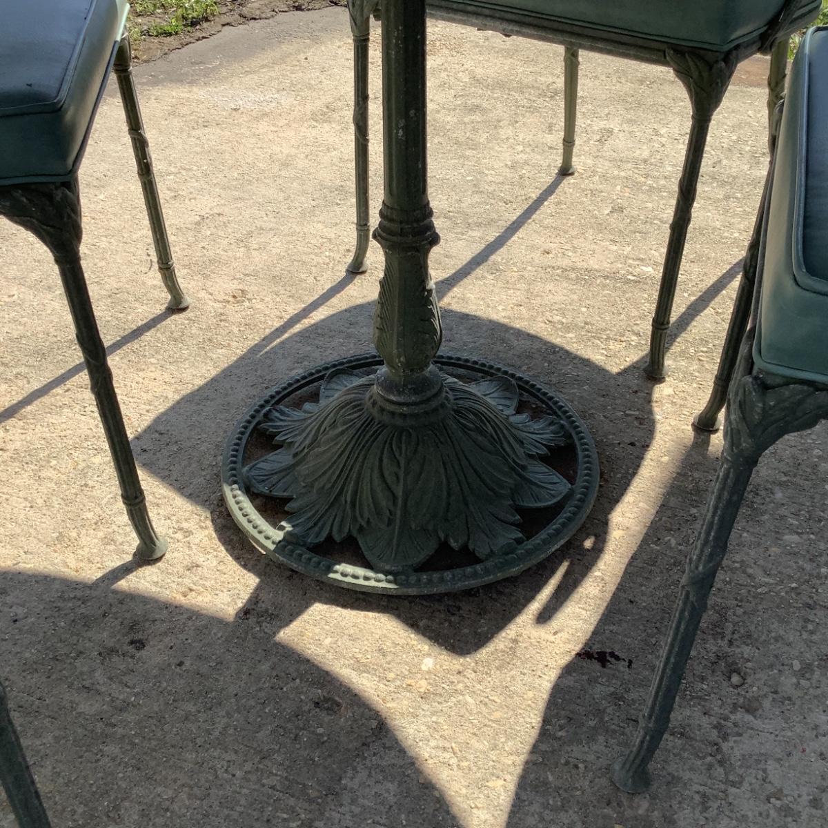 Table is cast aluminum base with formica table measuring 42.5" diameter x 29.5" high