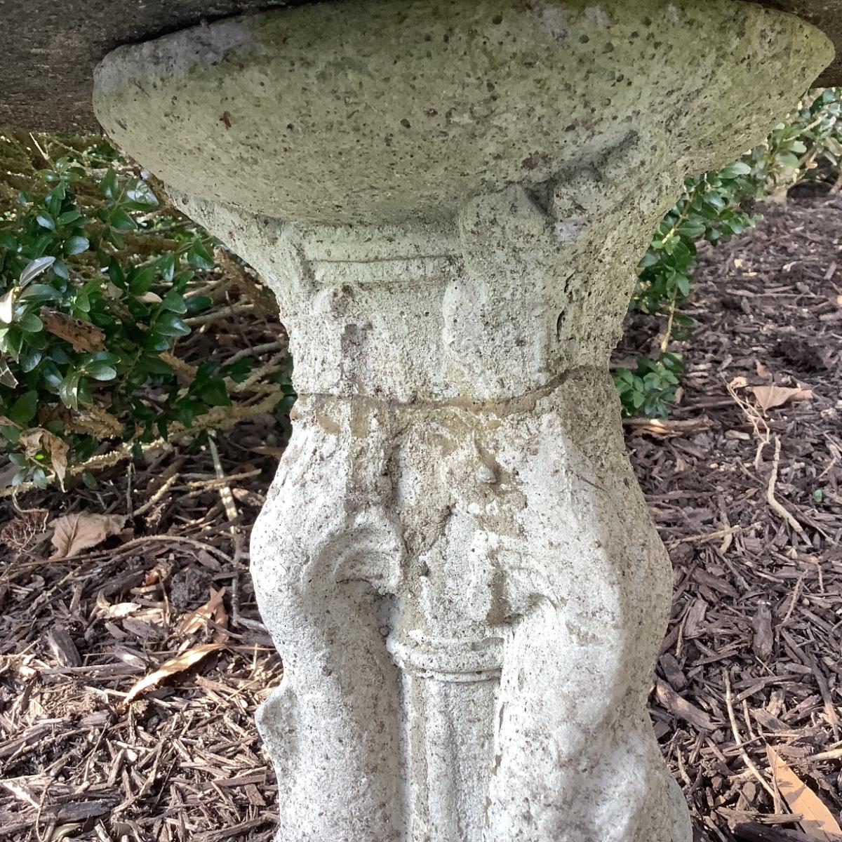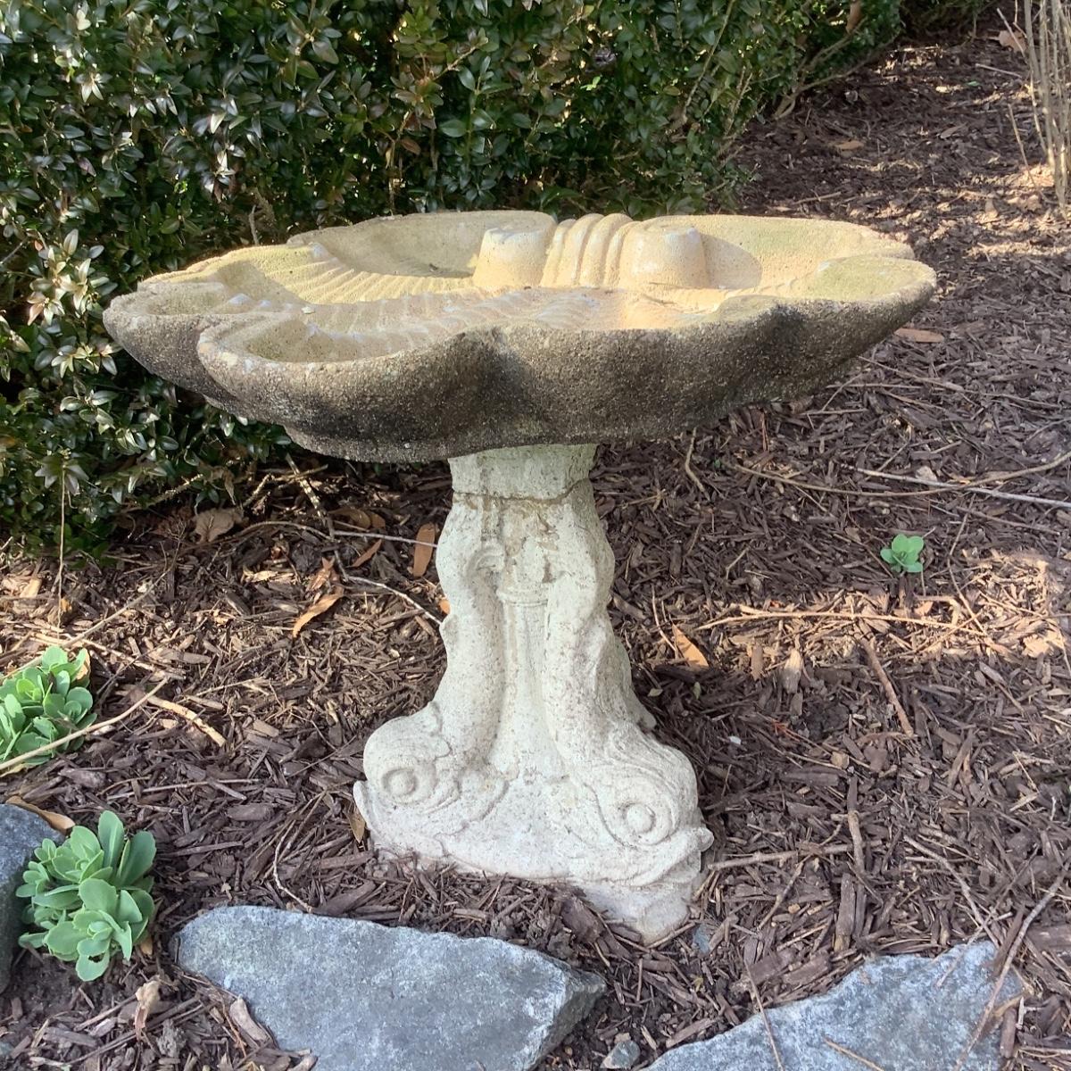 1098 Vintage Cement Dolphin Base Bird Bath