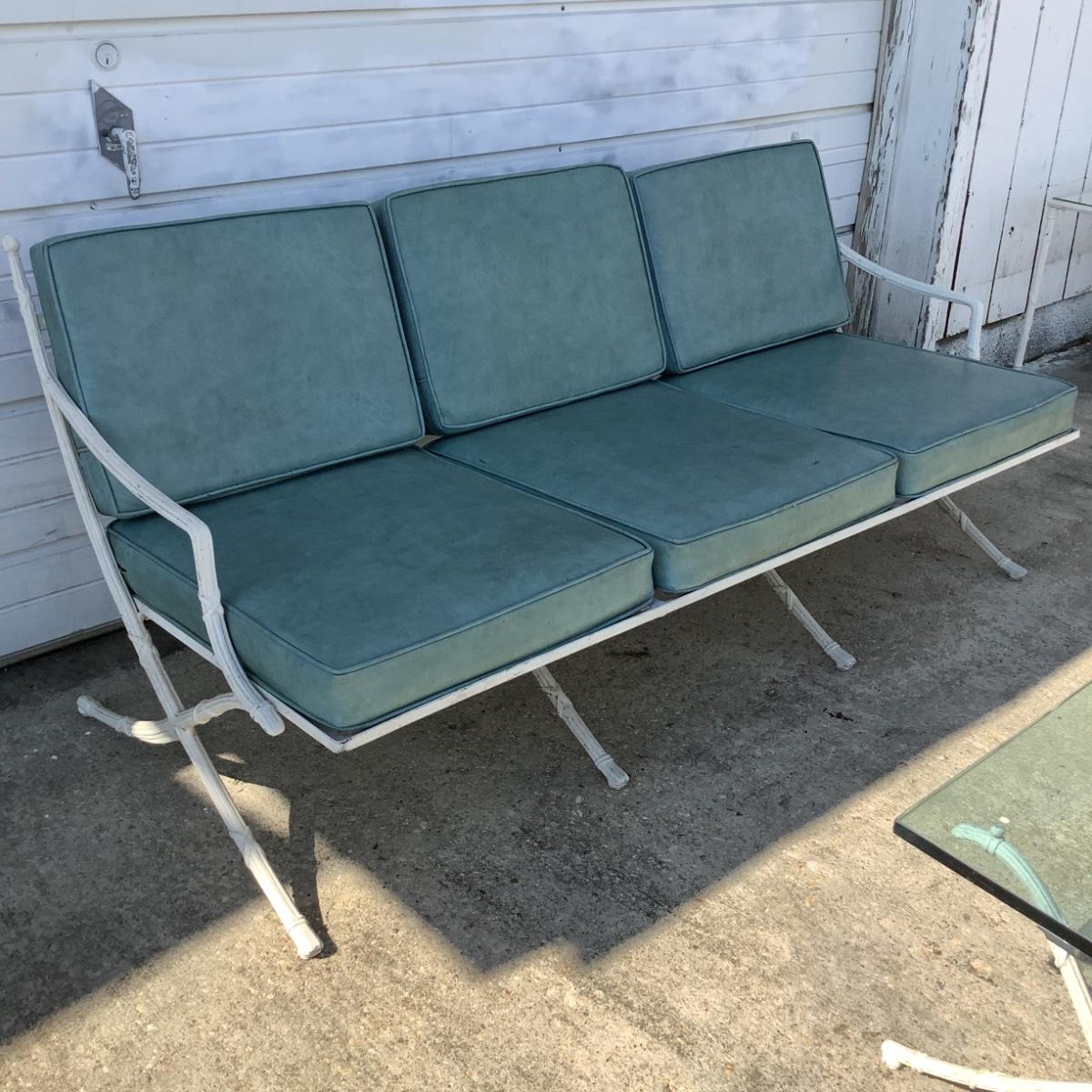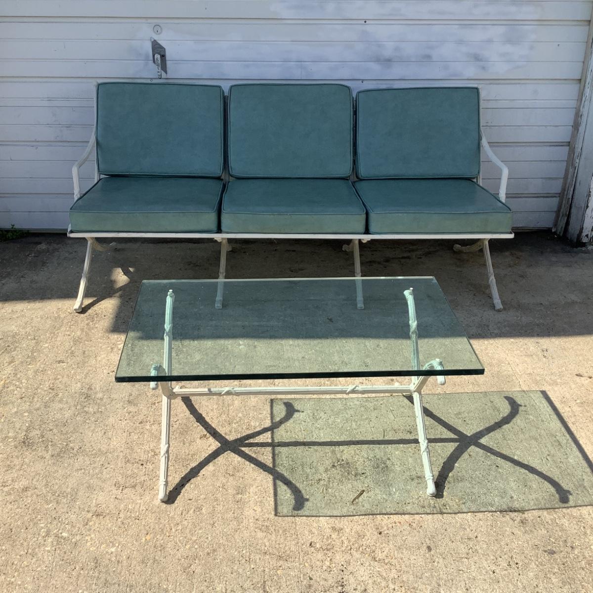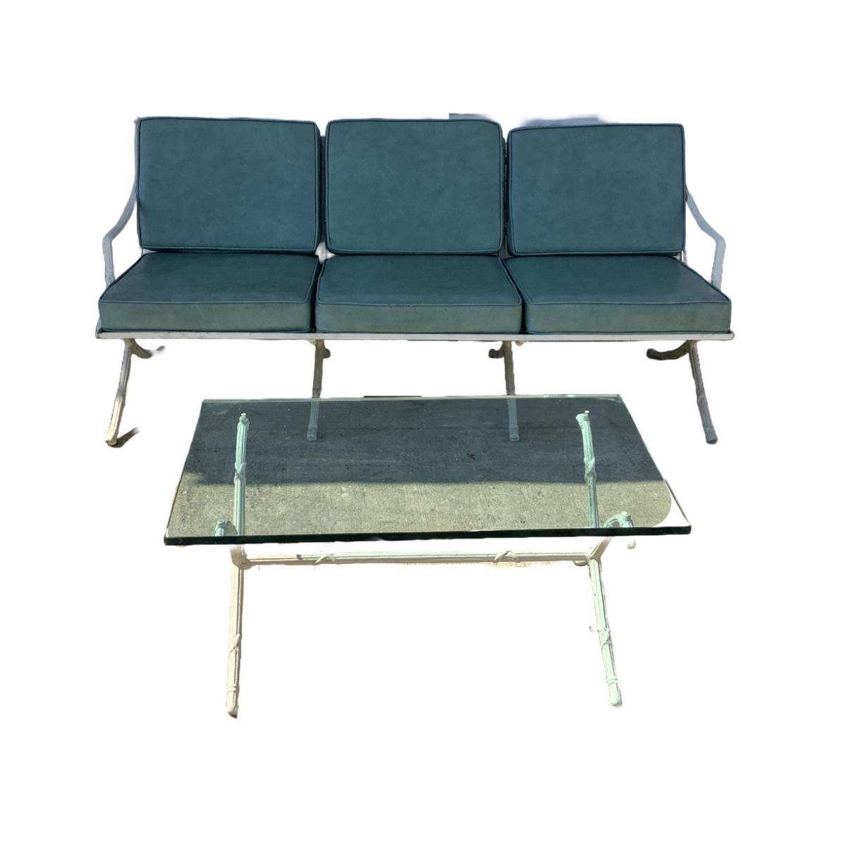 1099 Hollywood Regency Cast Aluminum Sofa with Glass Top Table