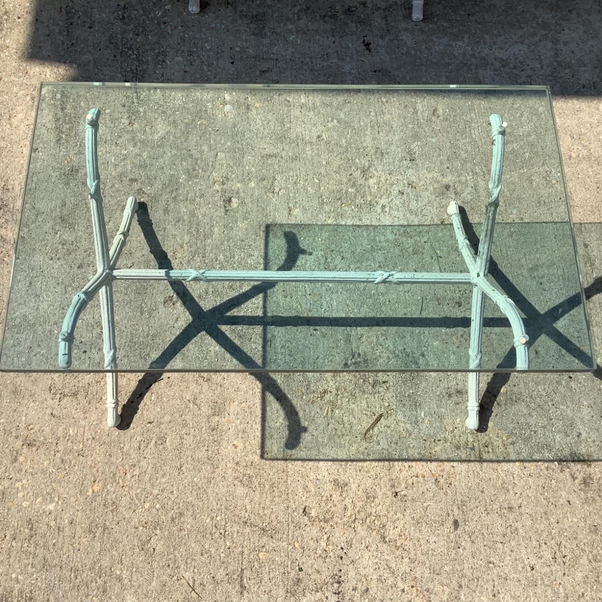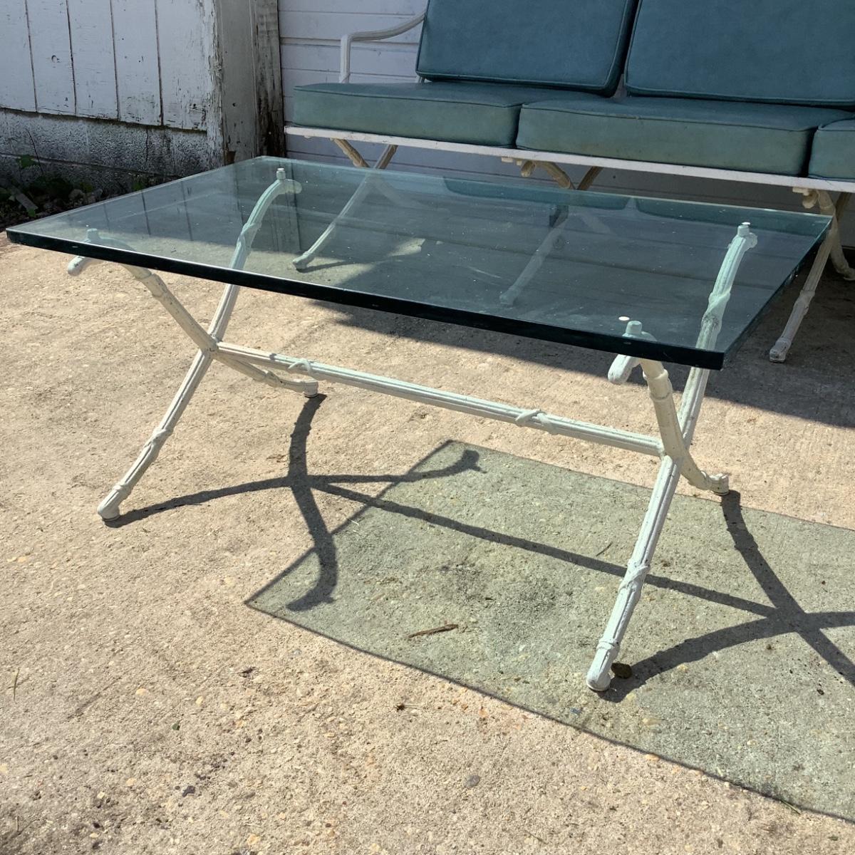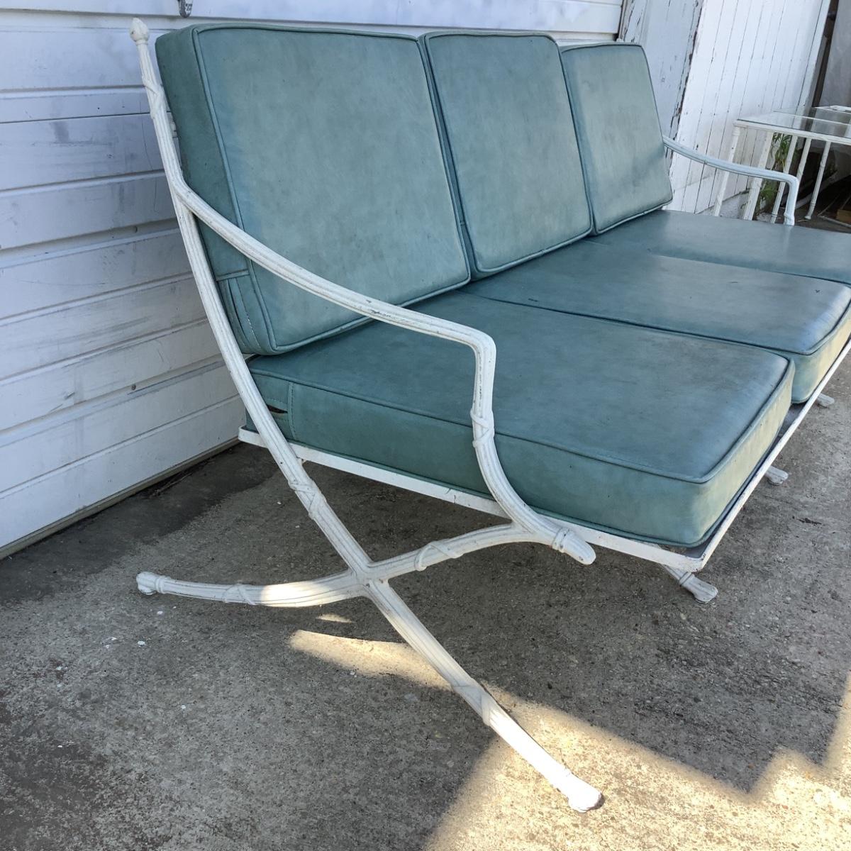 1099 Hollywood Regency Cast Aluminum Sofa with Glass Top Table