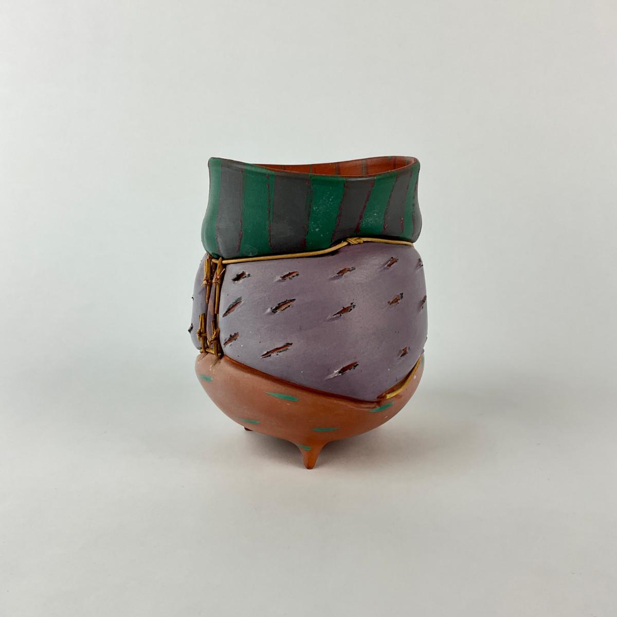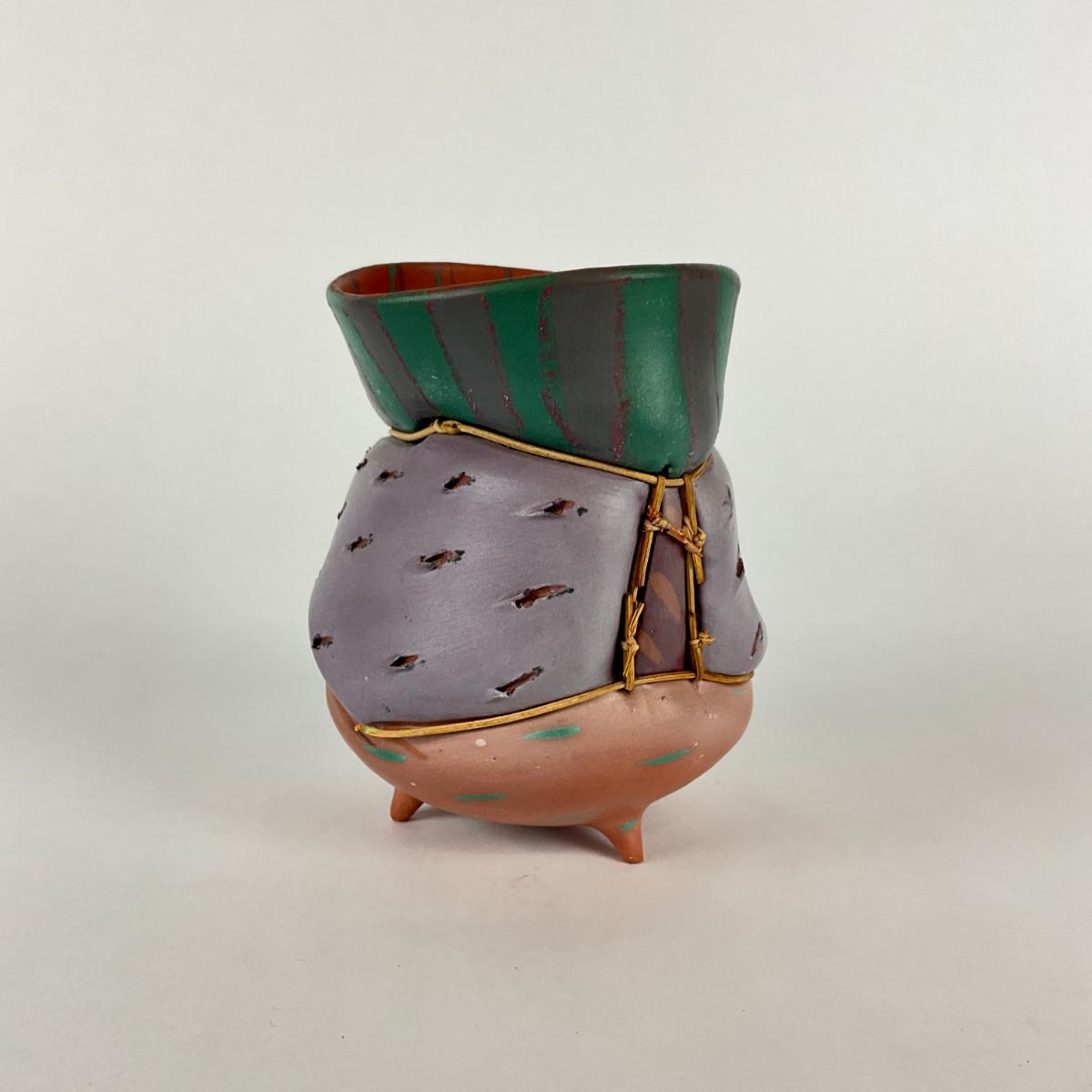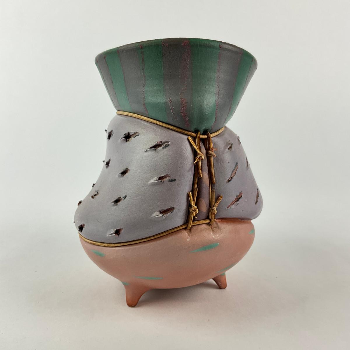 Earthenware With knotted reed, part of reed has fallen off