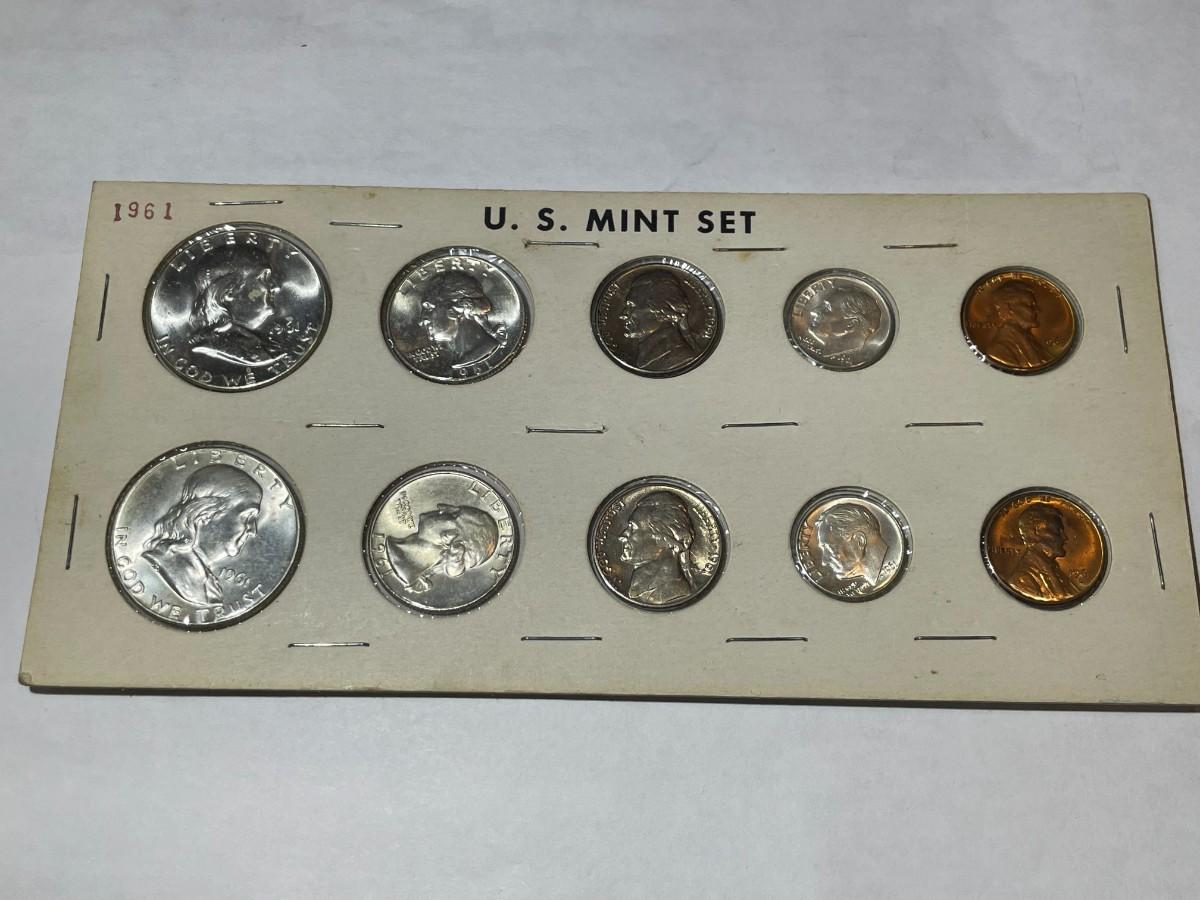 10-Coin U.S. 1961- P & D Silver Mint Set Coins in an Old Mid-Century Holder as Pictured. $5 Domestic Shipping.