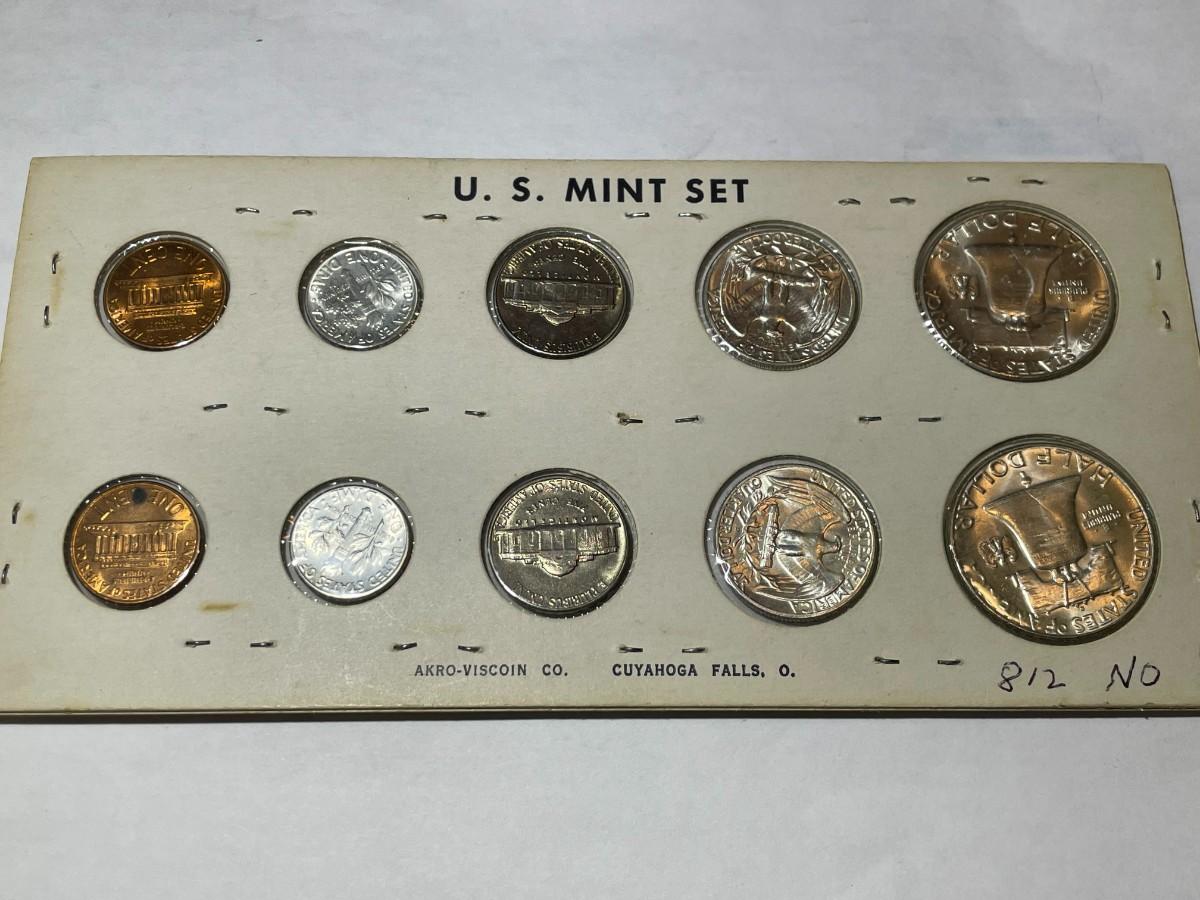 10-Coin U.S. 1961- P & D Silver Mint Set Coins in an Old Mid-Century Holder as Pictured.
