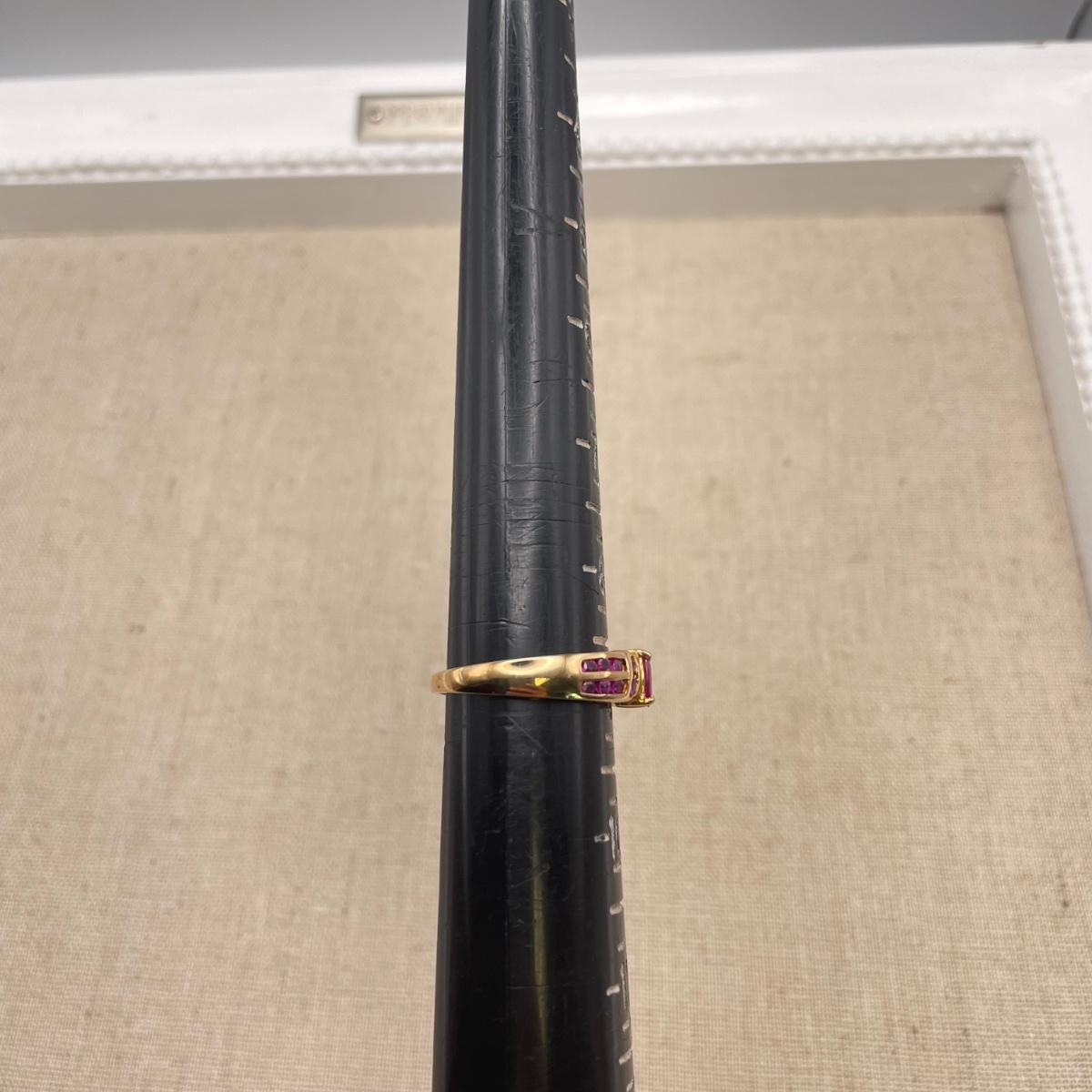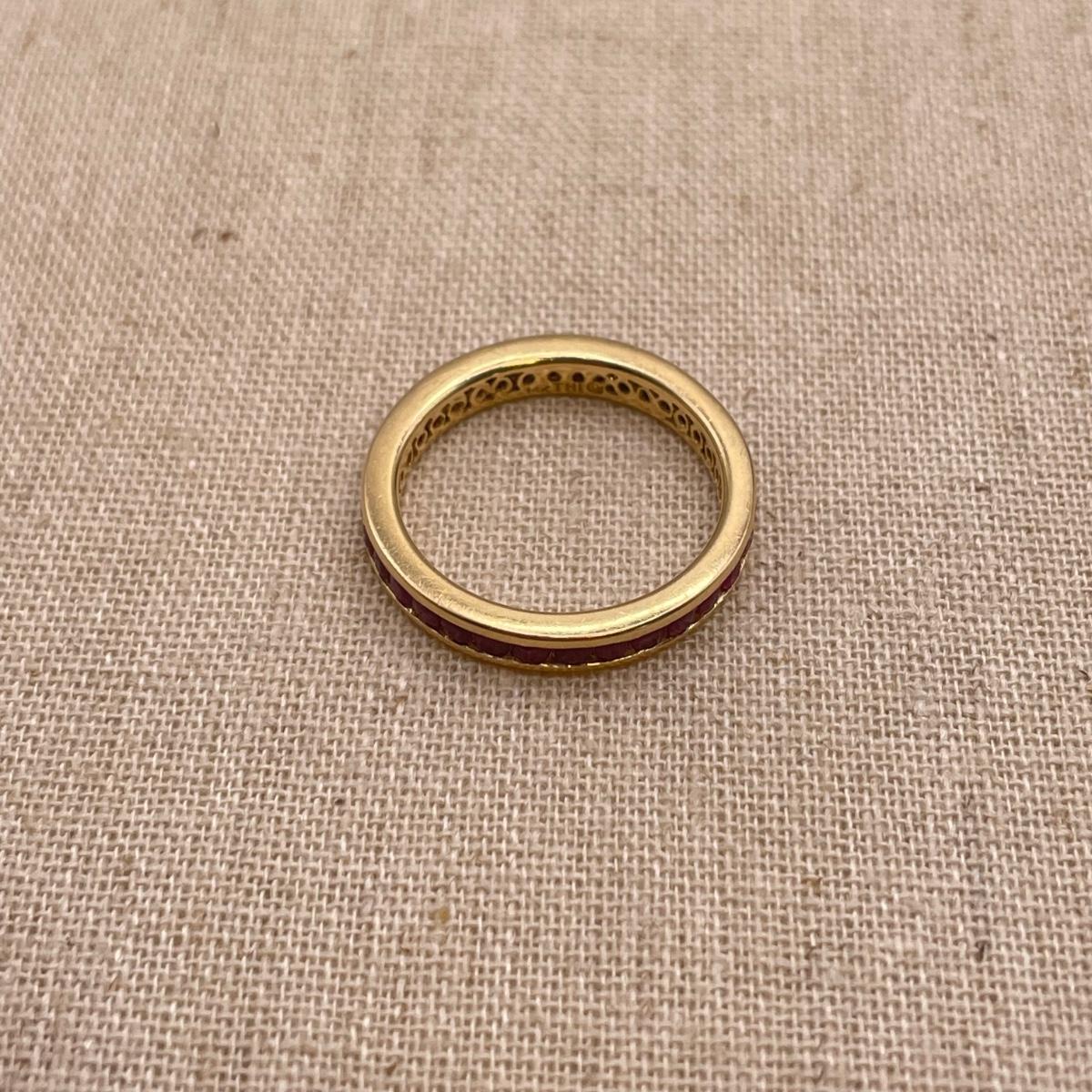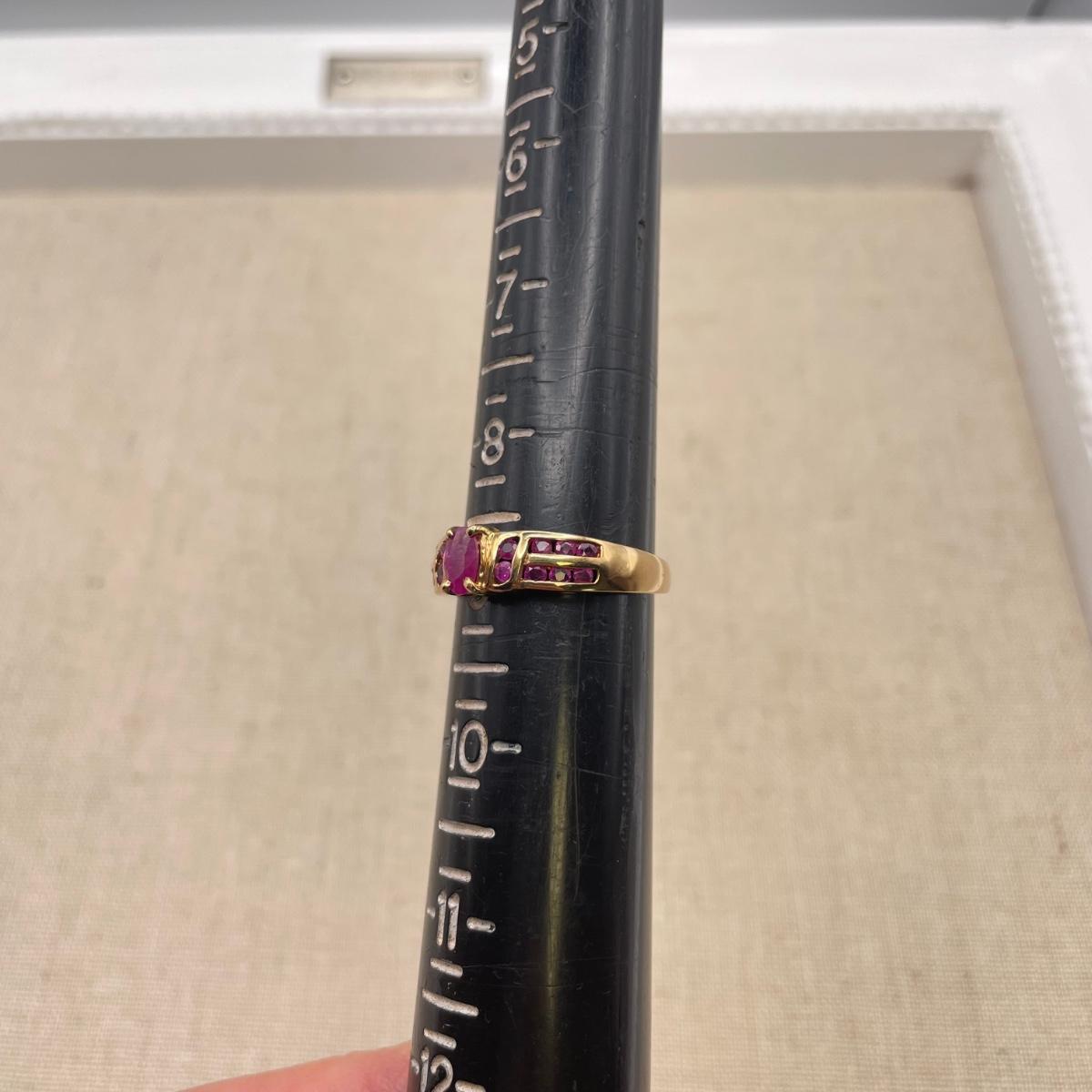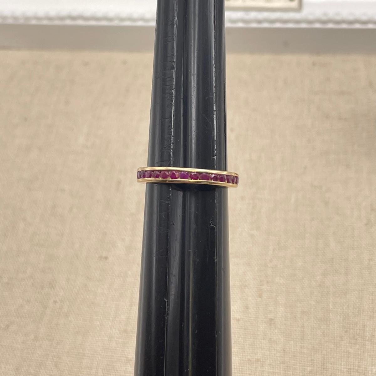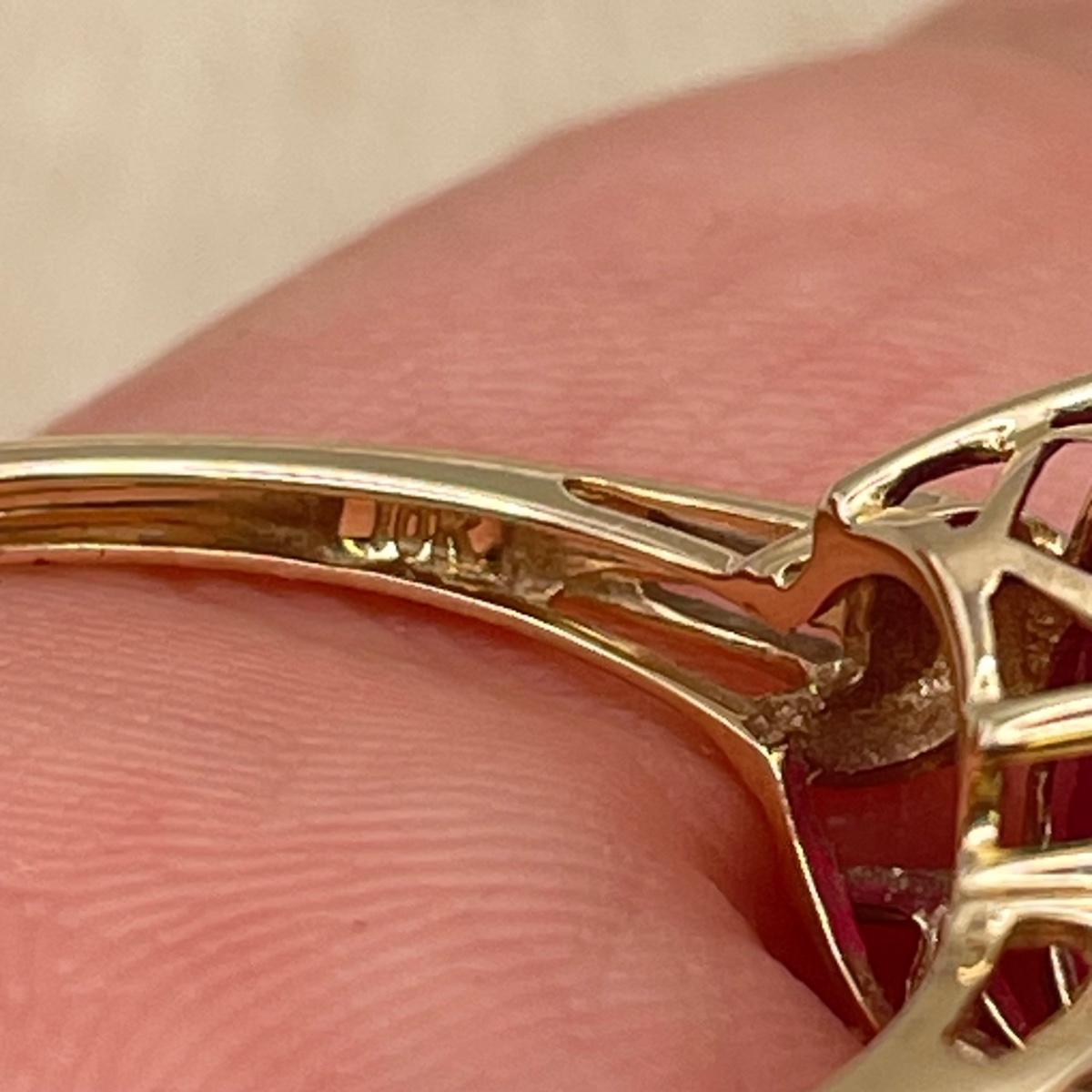 Two 10K stamped and one 14K stamped rings with ruby-pink colored stones. The smaller band has the gems along the circumference. See images for all markings found. Starting bid is at or near melt value. We cannot guarantee the authenticity of the gemstones. All sales are final. No returns or refunds. Please bid accordingly.