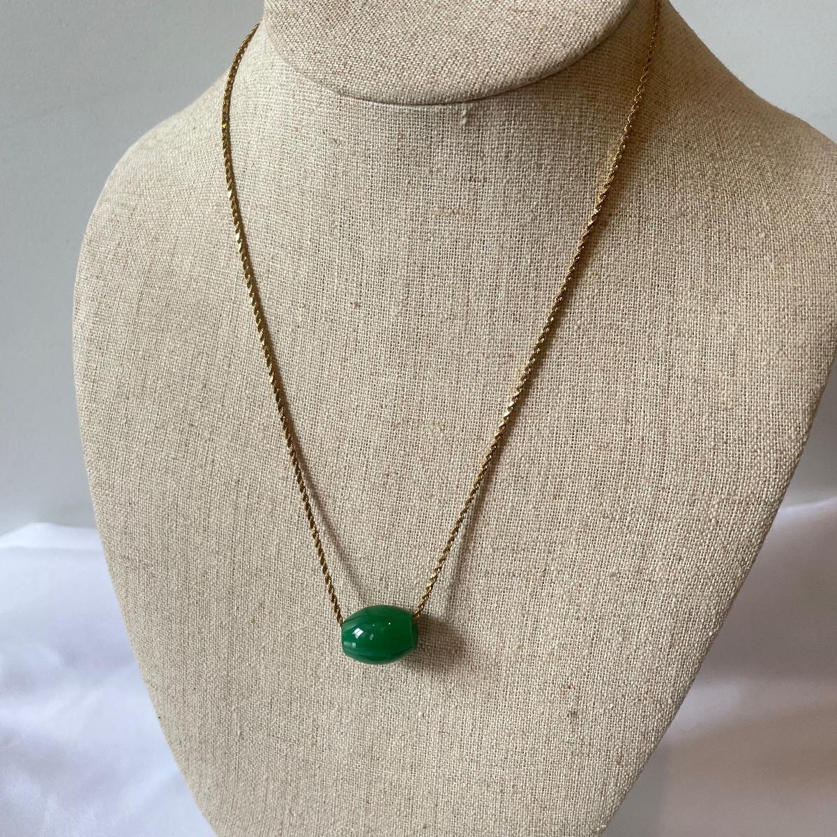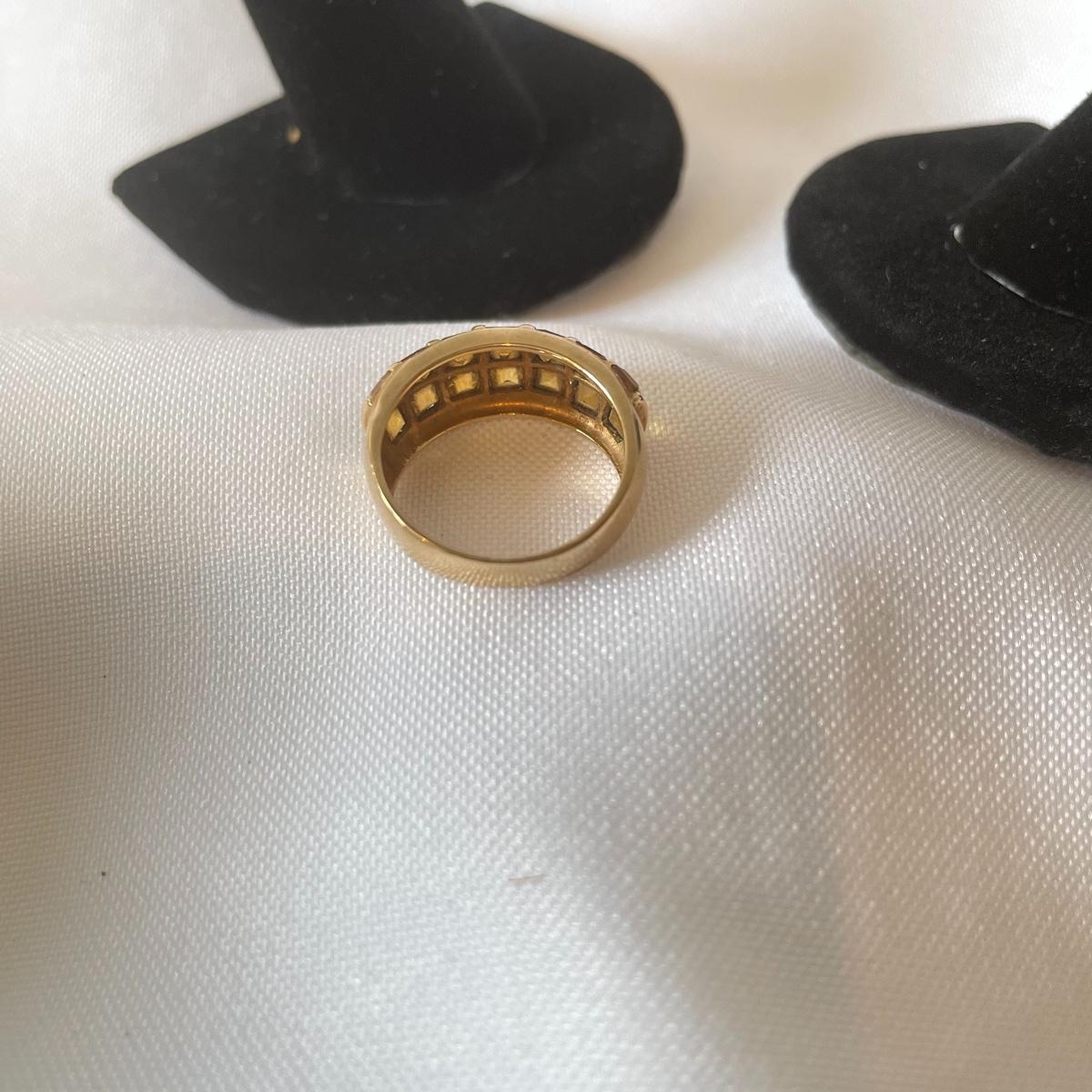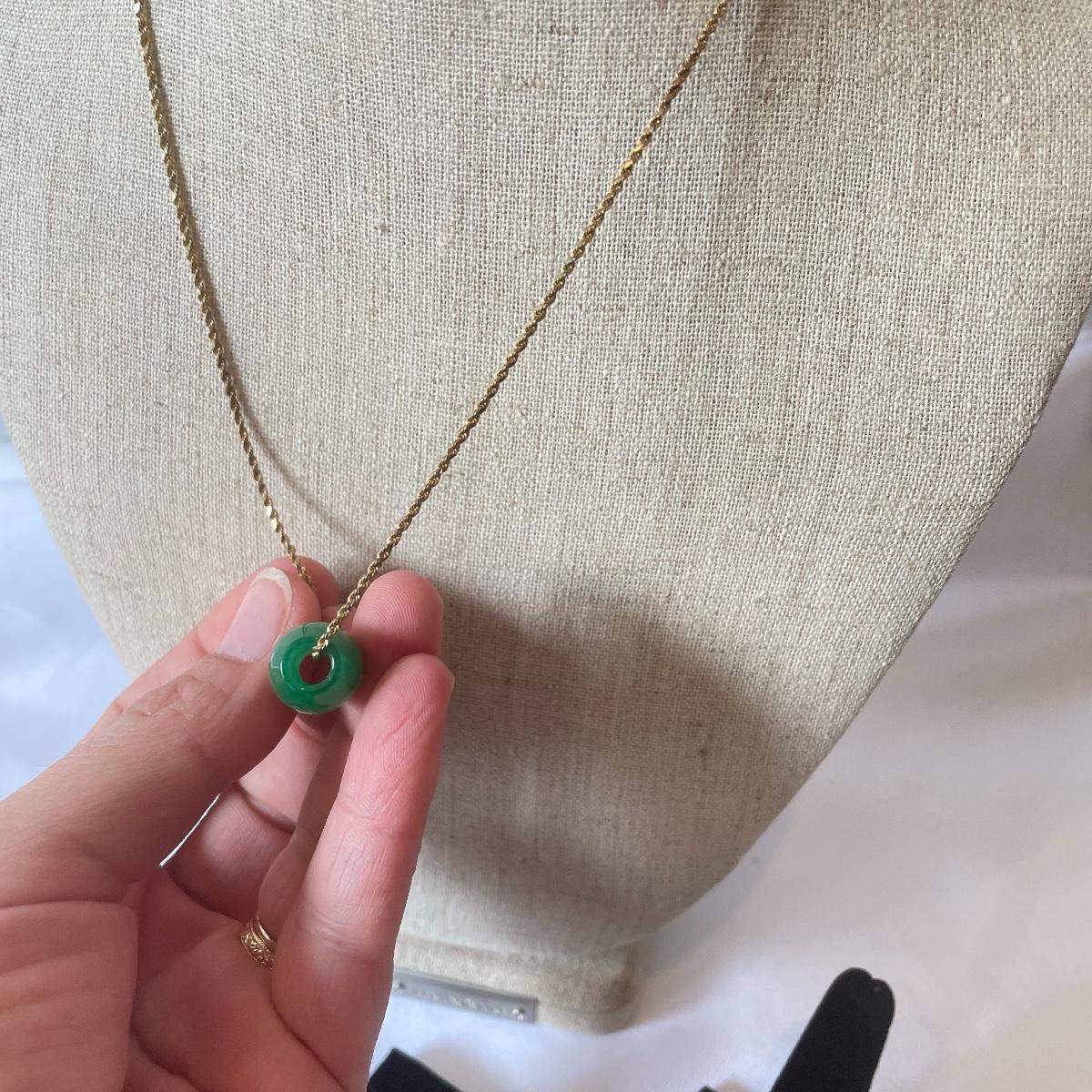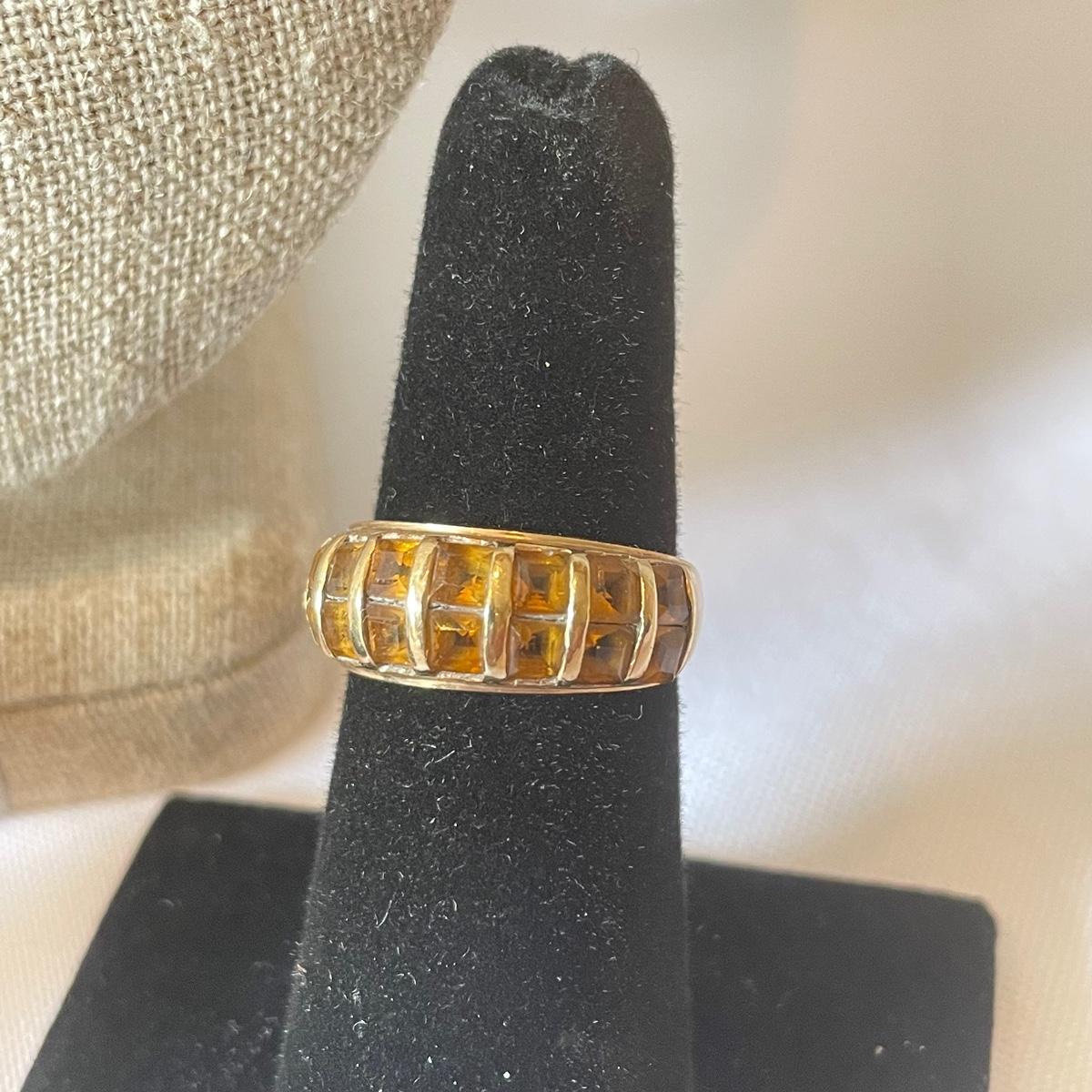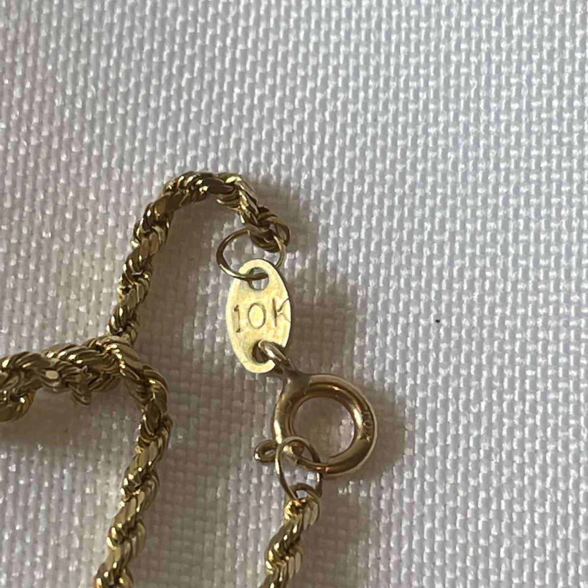 10KP band with amber colored stones and a thin band marked 10K. Lot also includes a jade colored glass bead on an 18” 10K chain. Shipping available.
