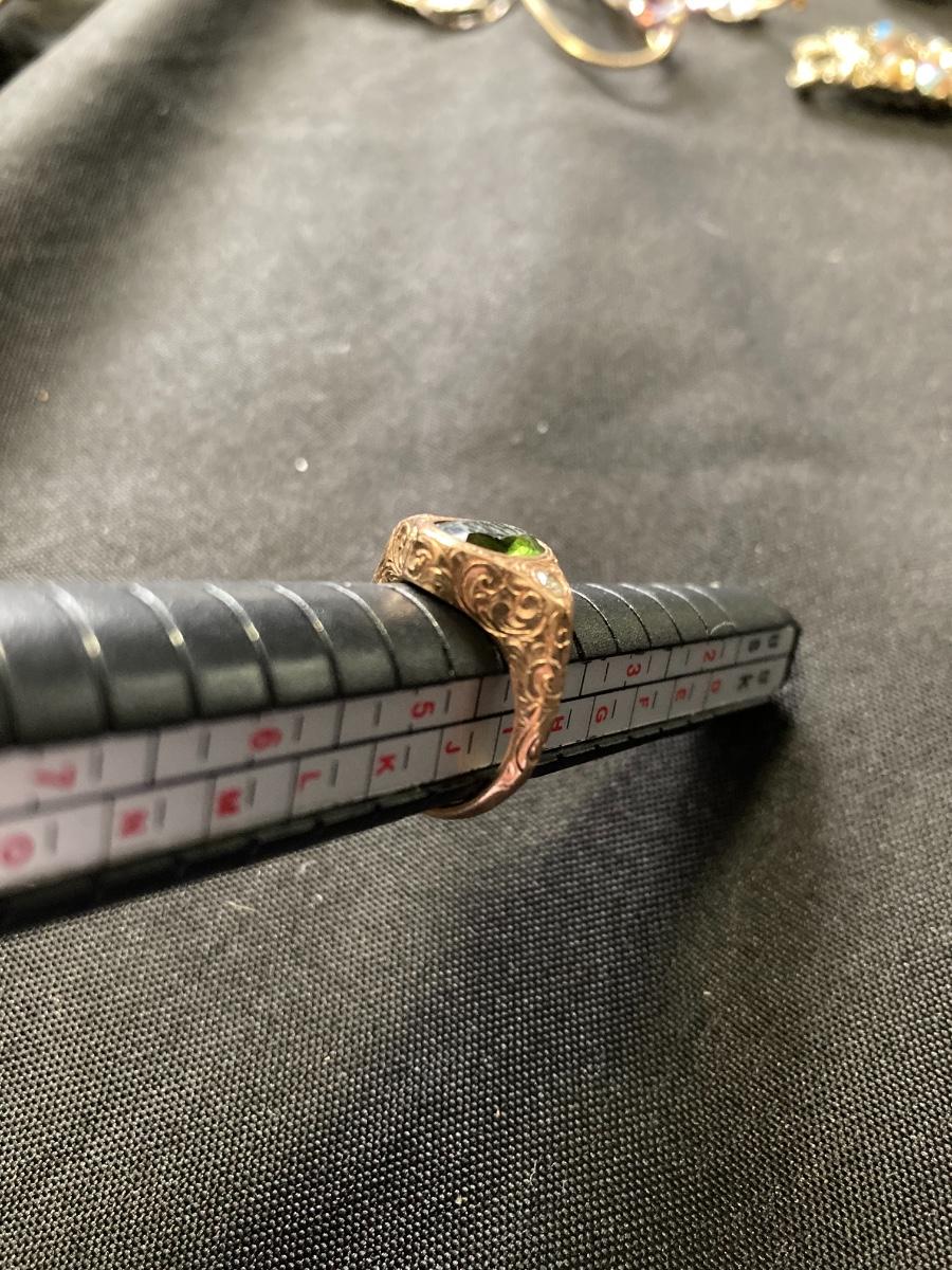10k Antique Gold Ring with Emerald Green Stone Size 4.5