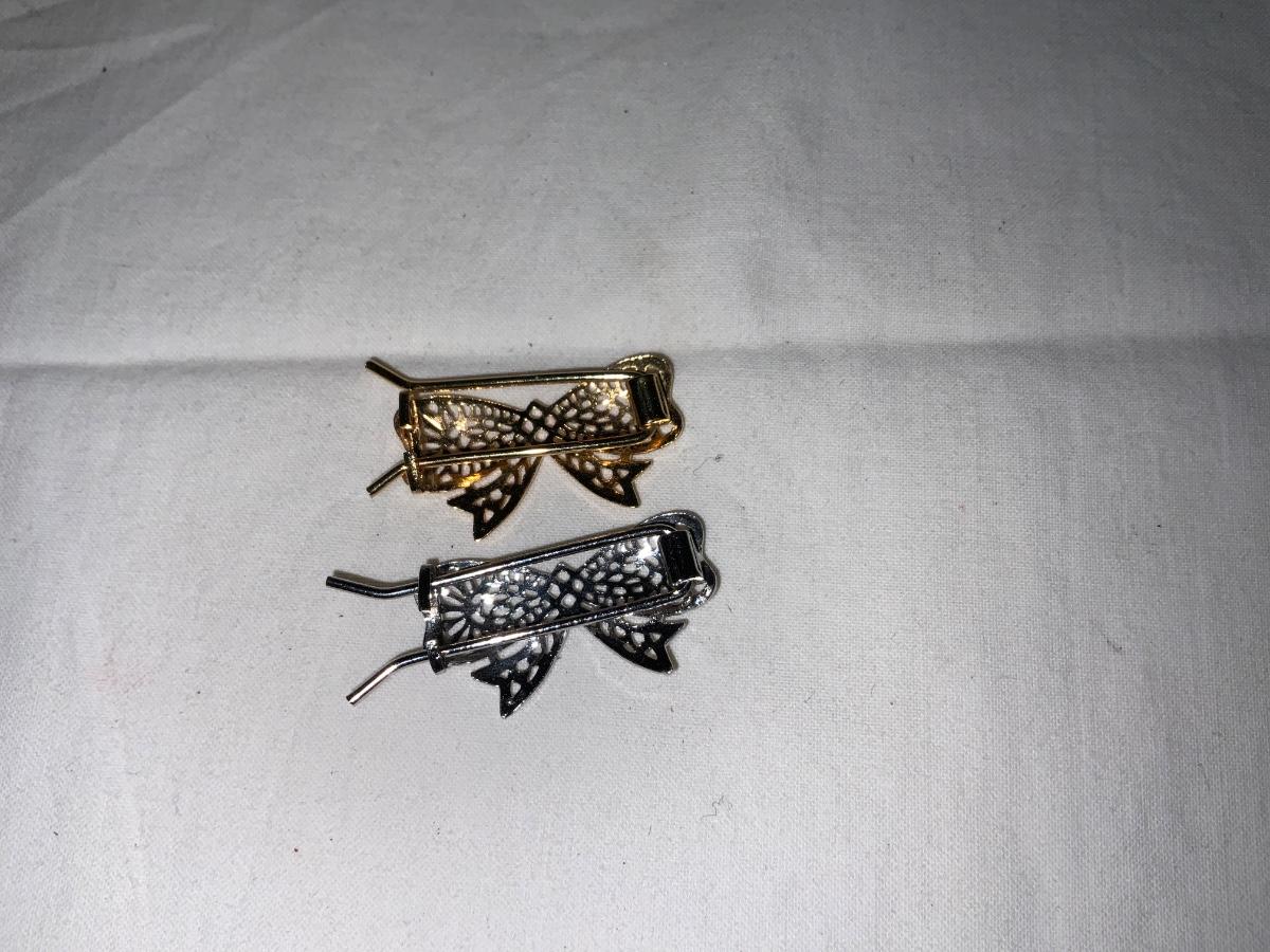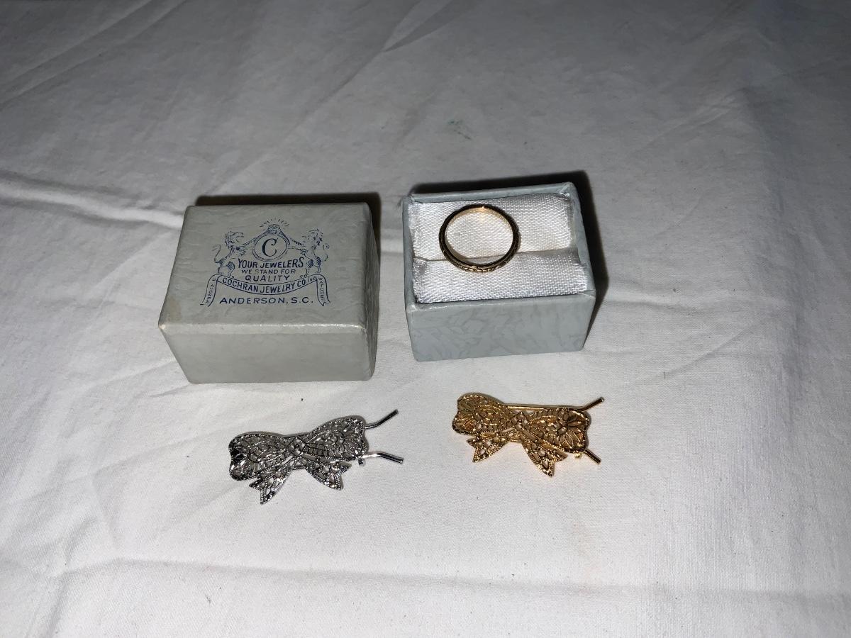 Nice Baby gold toned ring. Barrettes are gold and silver toned. Baby ring comes with original box. Not verified or tested. Please see pics for Condition. Ring size 1