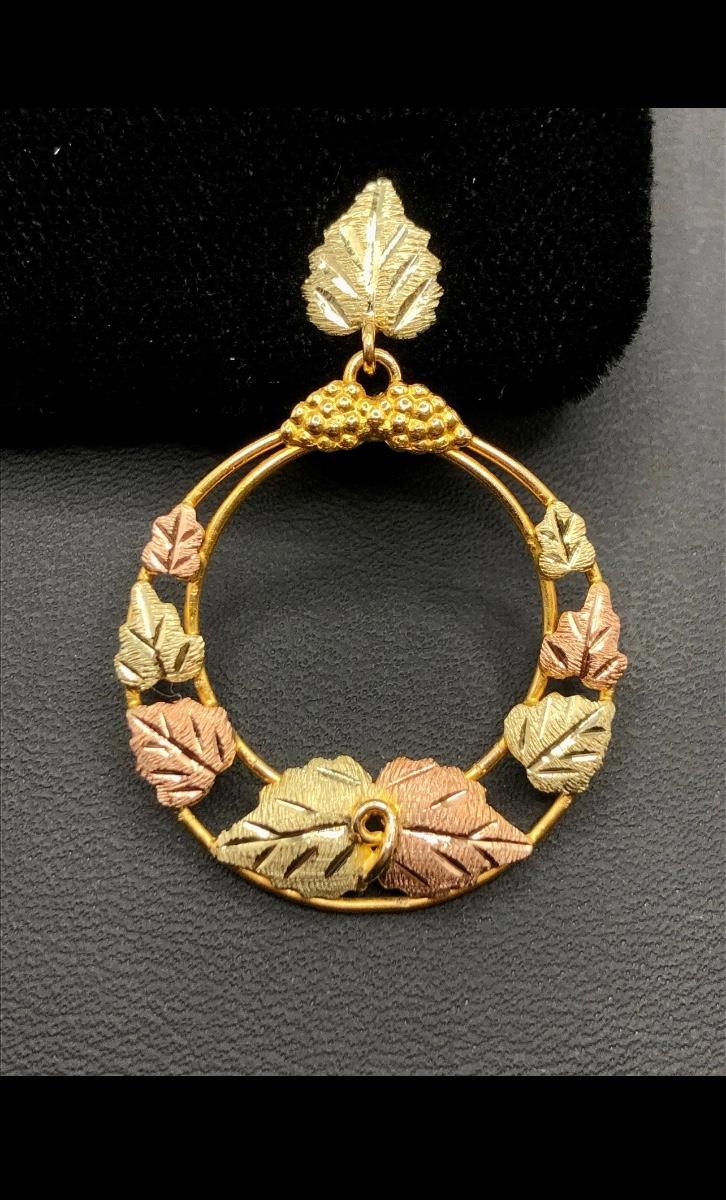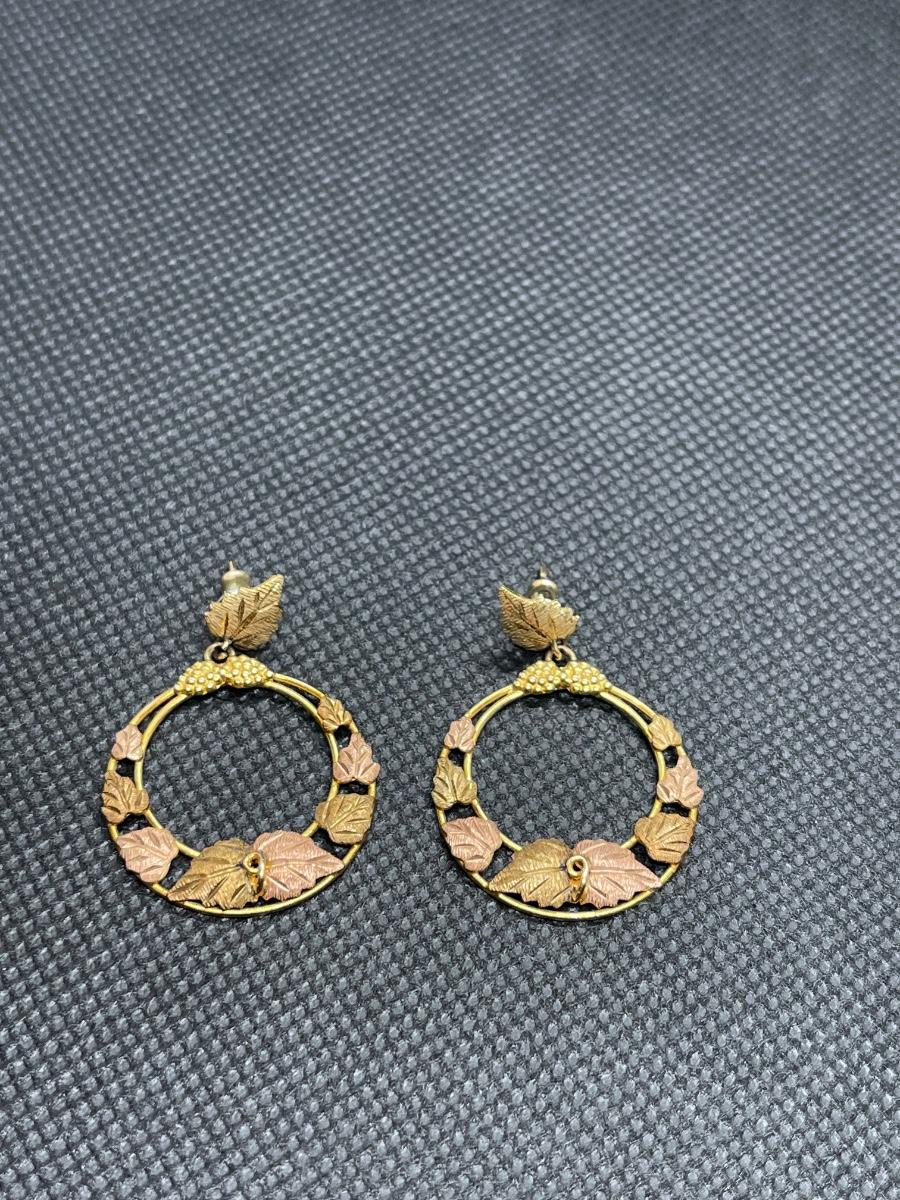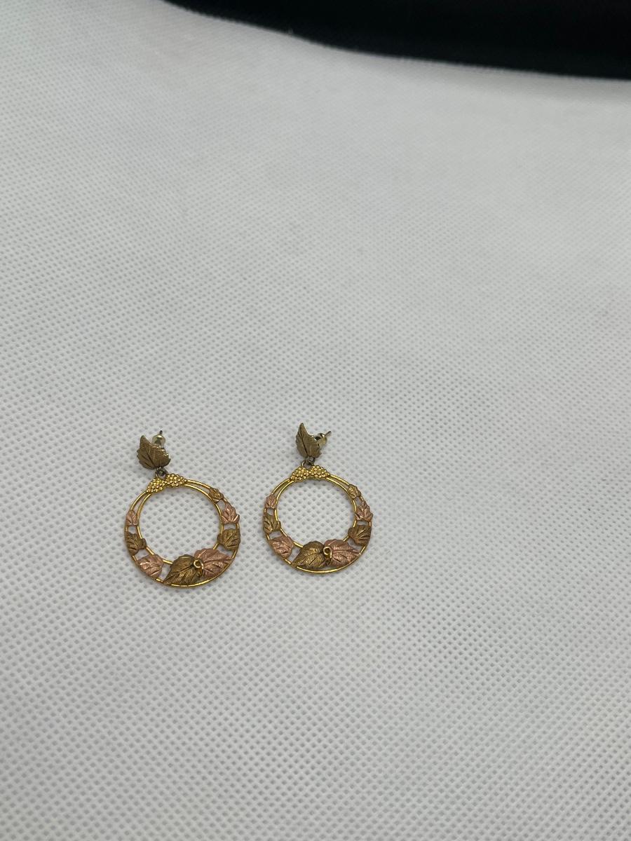 10K BLACK HILLS GOLD DANGLE HOOP PIERCED EARRINGS