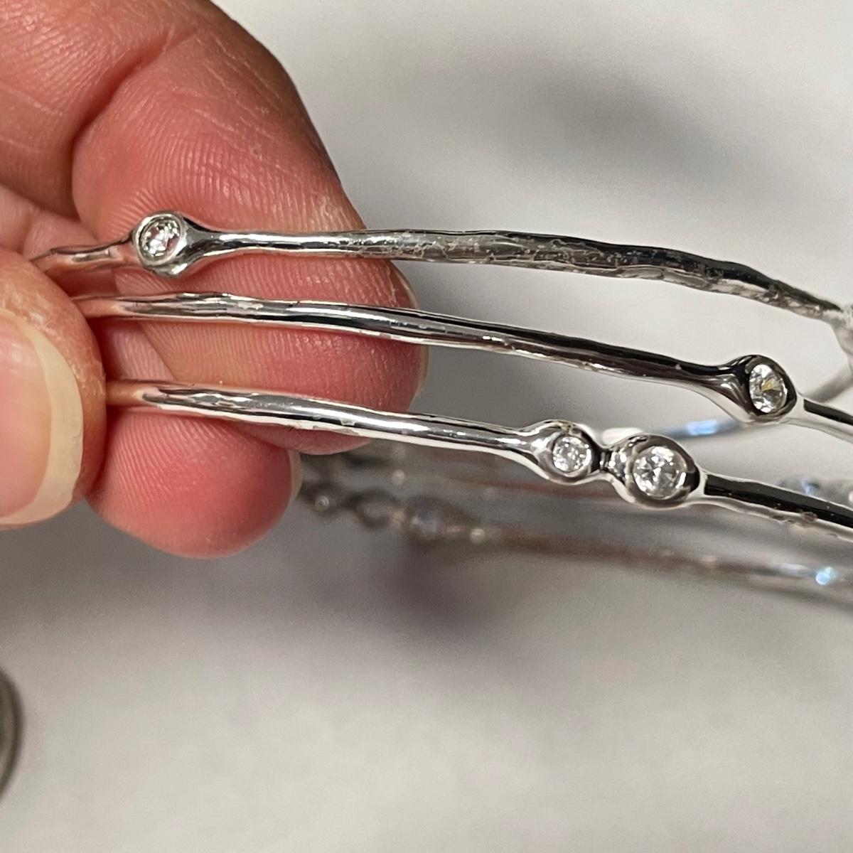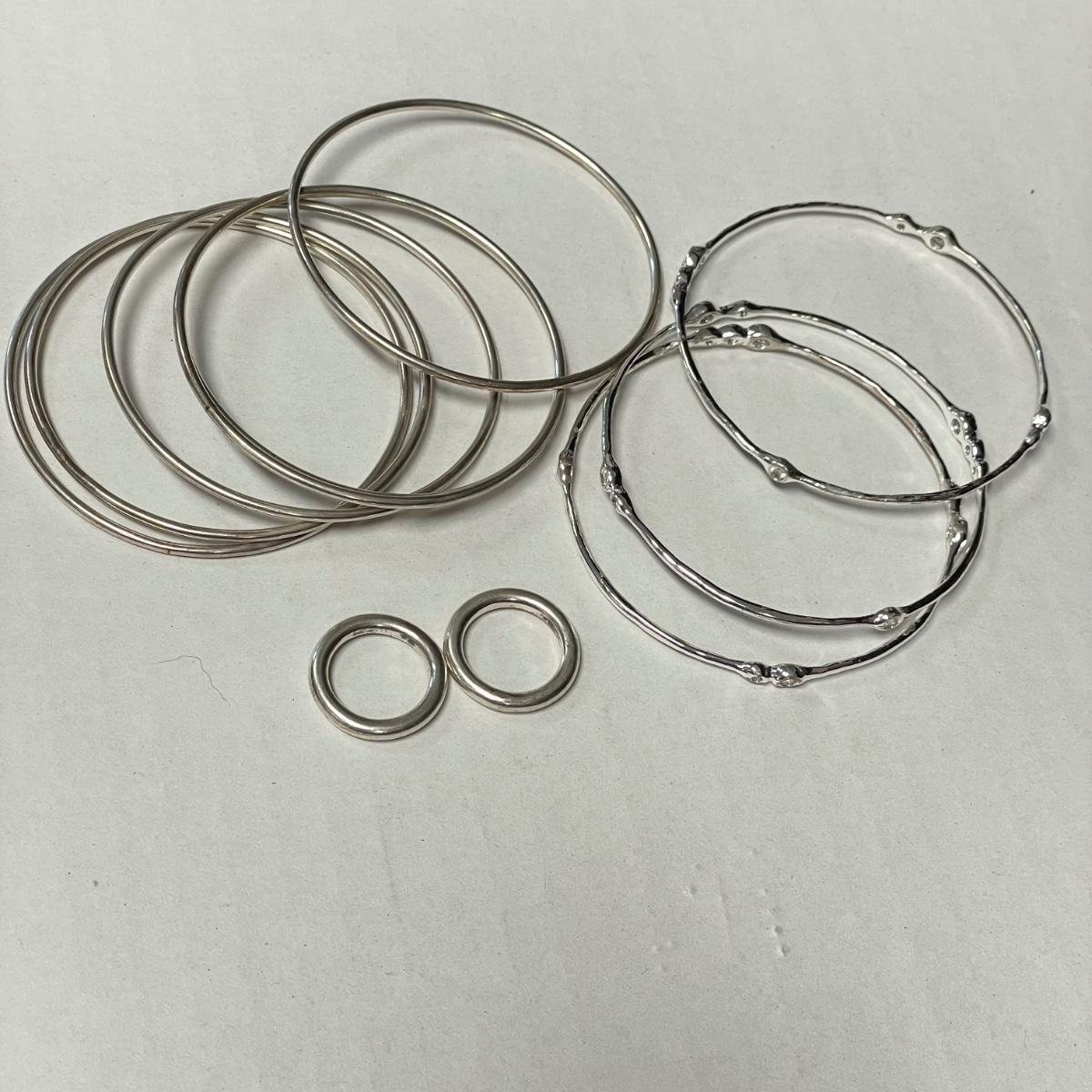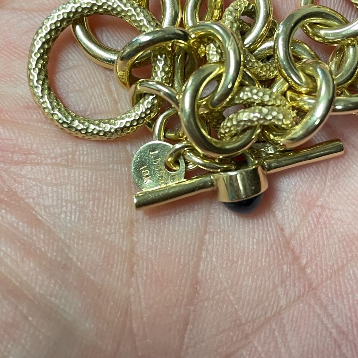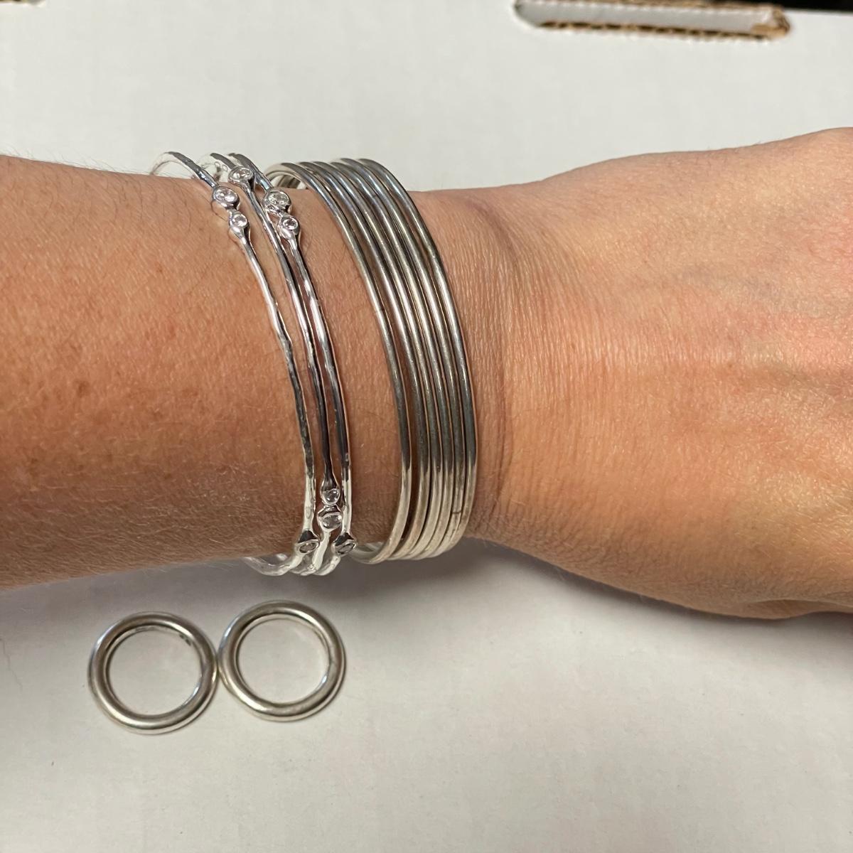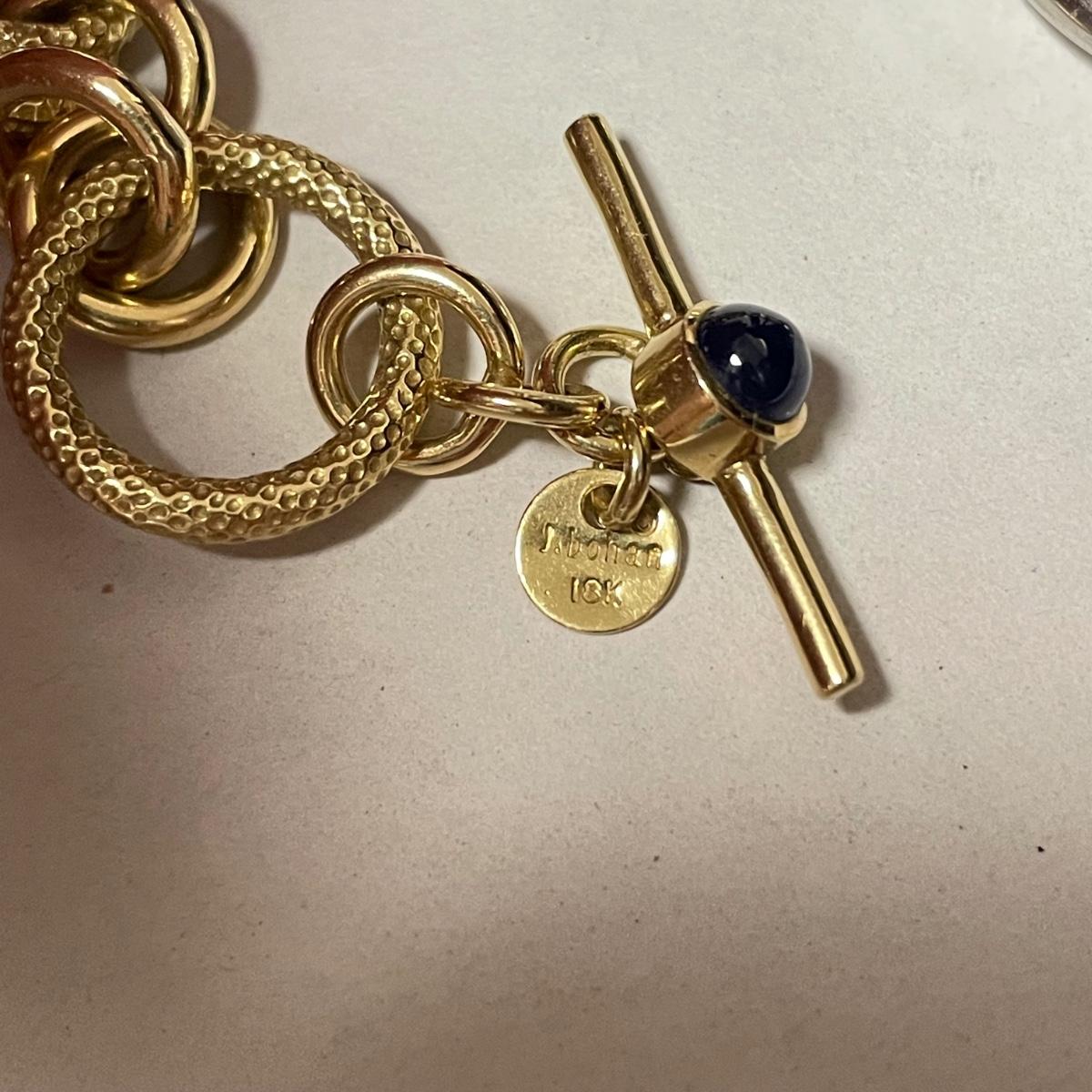 Lot features linked gold bracelet marked 10K by J Bohan with a cobalt blue colored gem in its toggle clasp. The charm bracelet has a spring ring clasp marked 14k and multiple fun and unique charms. Known markings include Sterling on the clover and Virginia charms, 14k on the church and 10k on the desk fan and cross. Lot also includes a shiny silver colored heart & locket charm bracelet that appears to have fresh water pearls. An extra pair of thick round chain pieces and two sets of bangles are also in this collection. See images. Shipping available. All sales are final. No returns or refunds. Please bid accordingly.