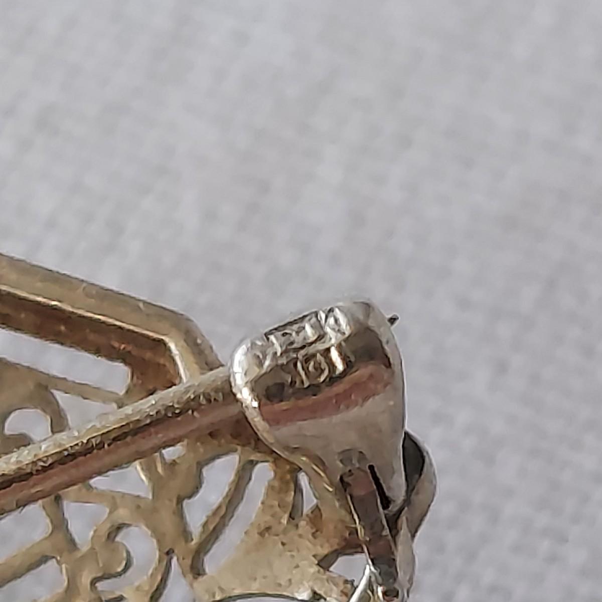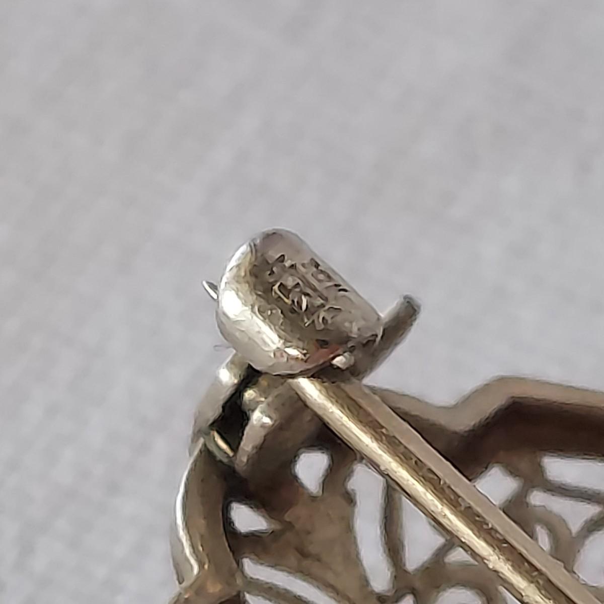 Two stunning filagree brooches. One has a purple amethyst-colored gem and has a stamp that includes 10K. The other is a tussie-mussie or boutonnière pin with no known markings. See images. All sales are final. No returns or refunds. Please bid accordingly. Shipping available.