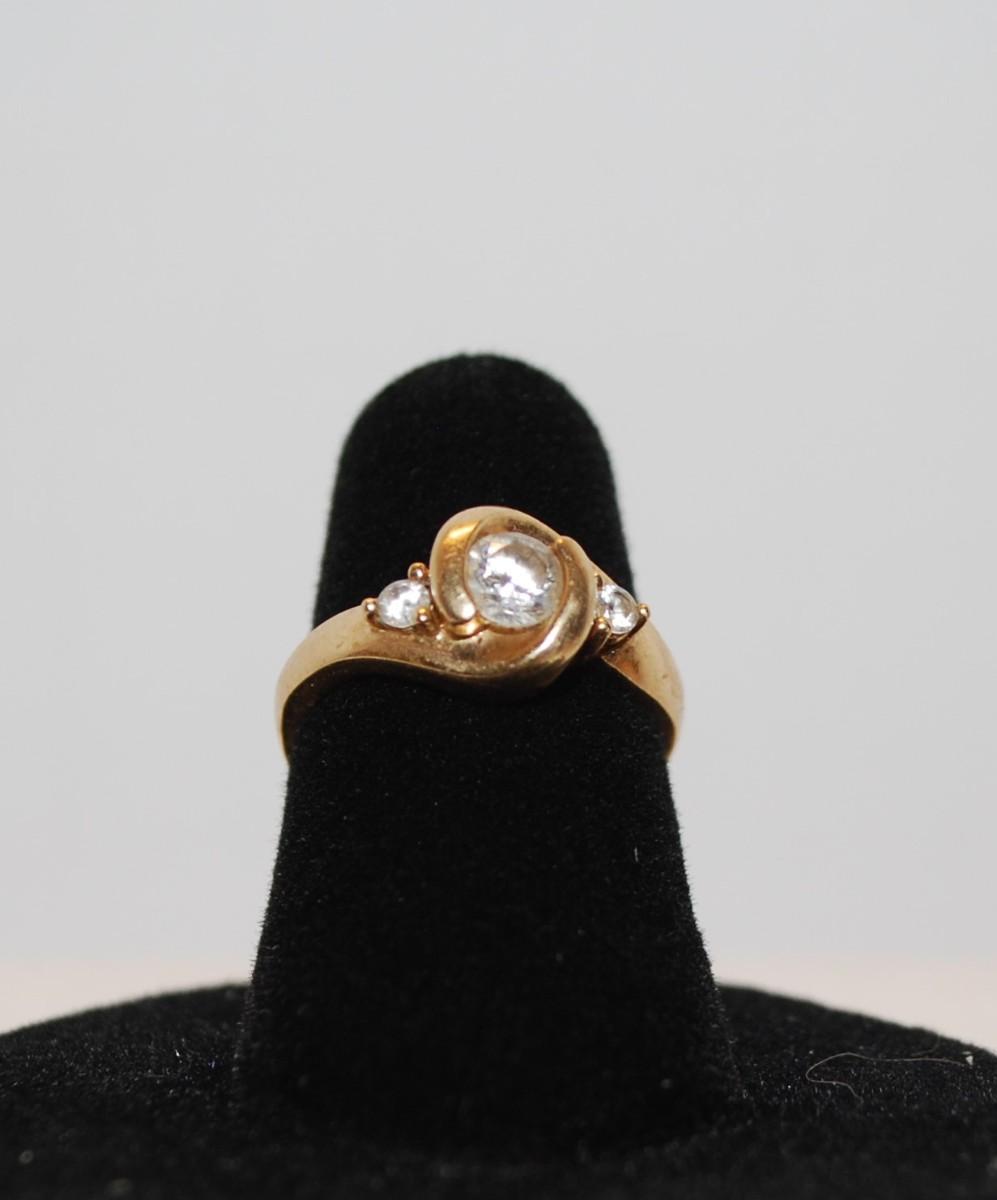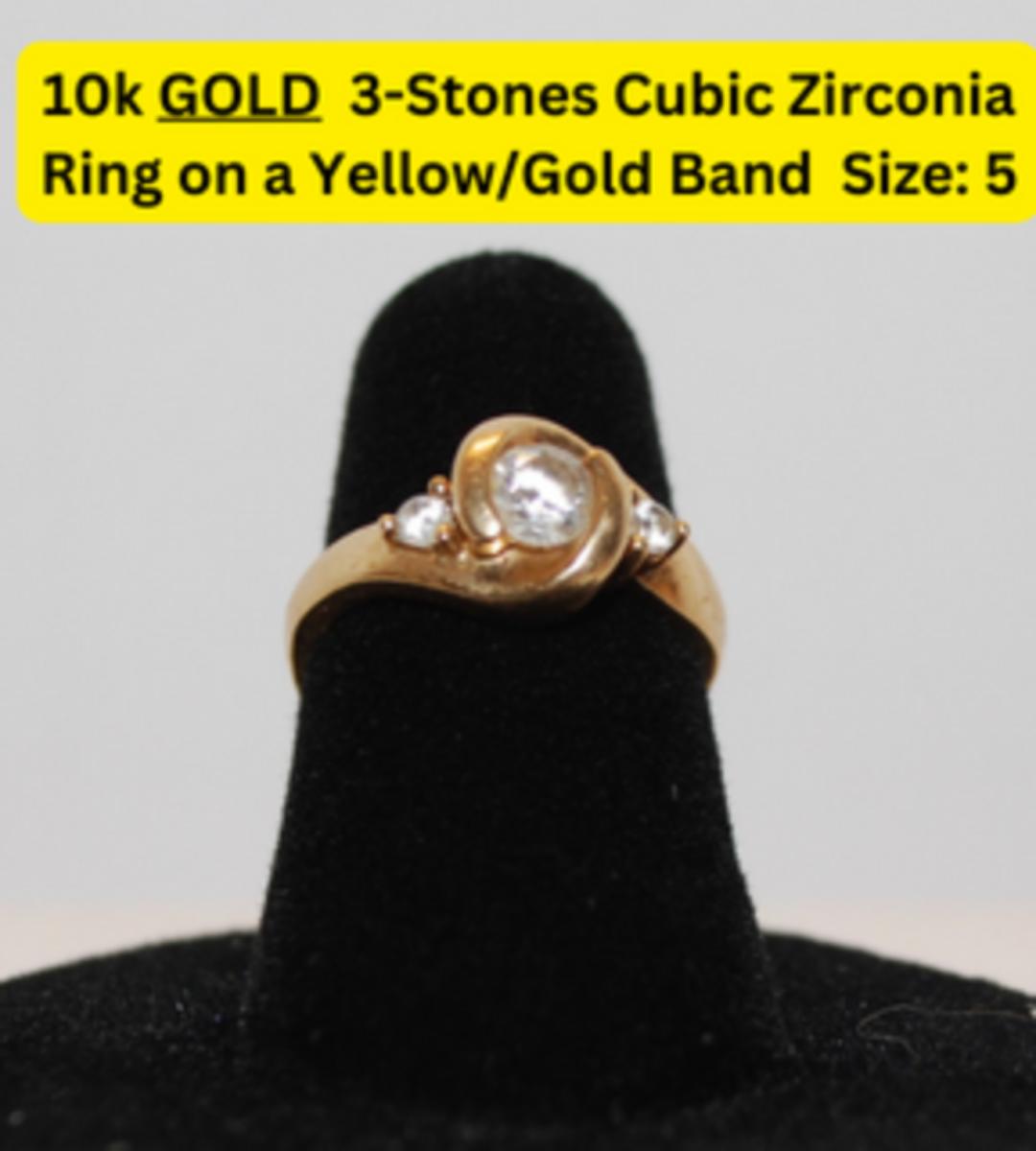 10k GOLD 3-Stones Cubic Zirconia Ring on a Yellow/Gold Band (3.1g) Size: 5