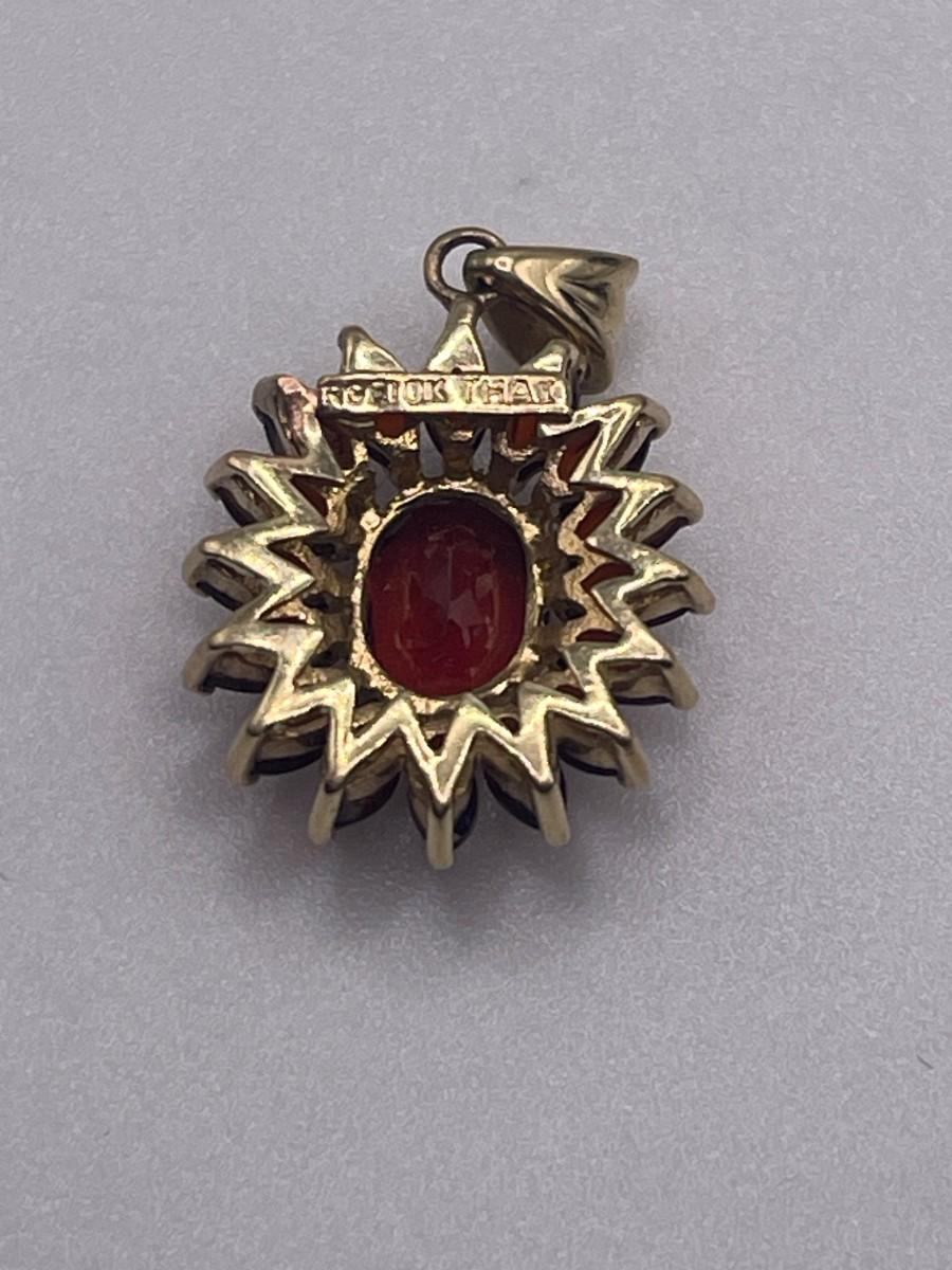 10K gold pendant with what look like ruby colored stones. Marked 10K Thai. Approx 1/2"