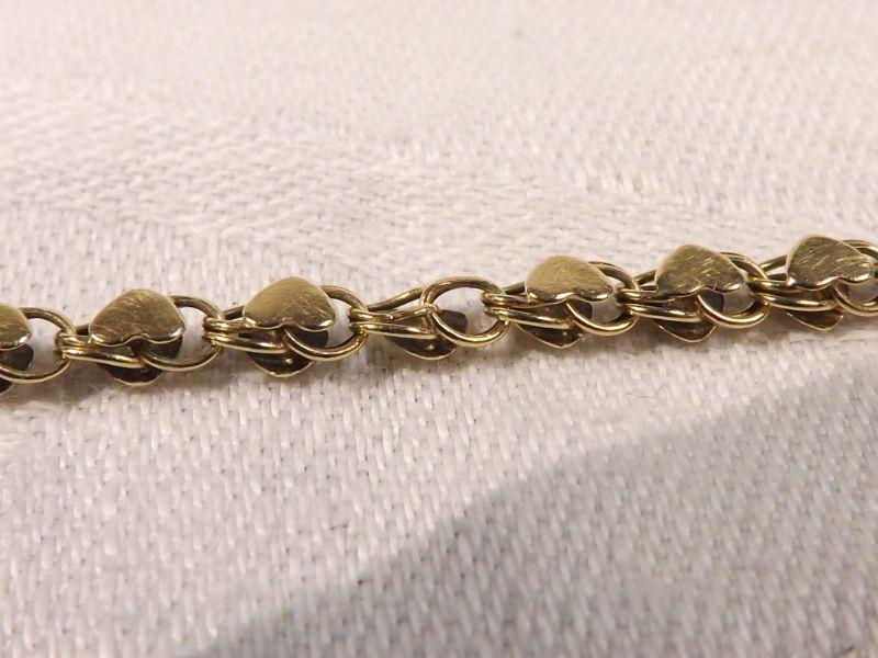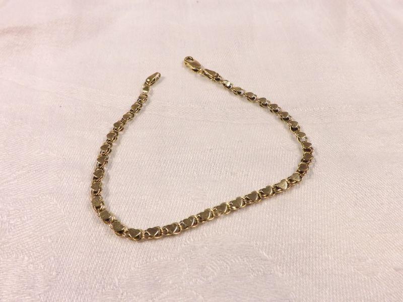 10k 3.3g Heart yellow gold bracelet. **Please read Terms and Conditions before placing a bid. Pick up is Wednesday, September 25 from 4pm to 7pm and Saturday, September 28 from 9am to 1pm in Williamstown, NJ. All sales are final. All sales are as is, where is. Please review all photos. Any props included in photos are not included in listing. All measurements are approximate.
