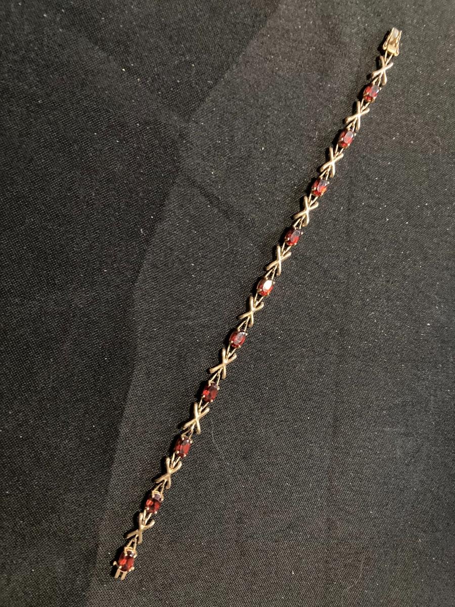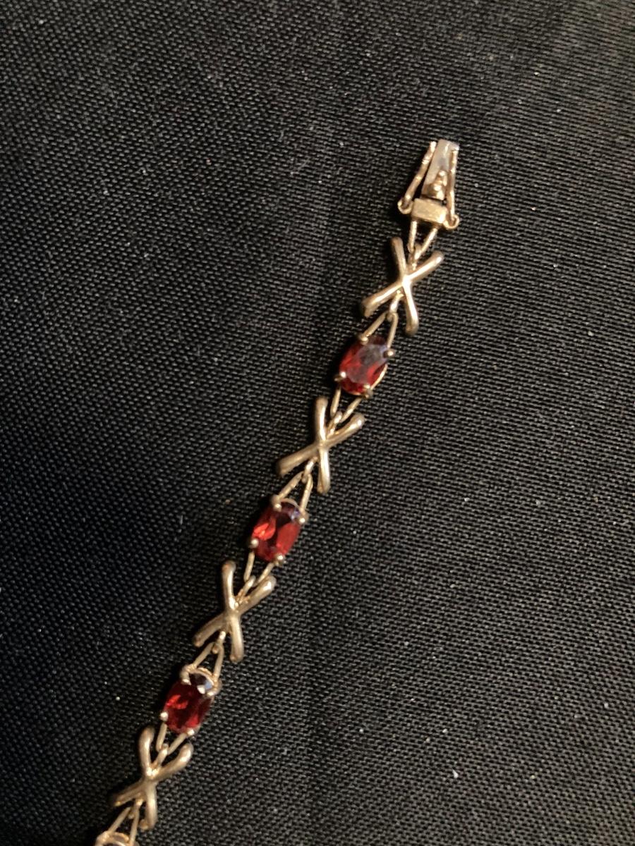 10k Gold Bracelet with Ruby Red Stones 7.5”
