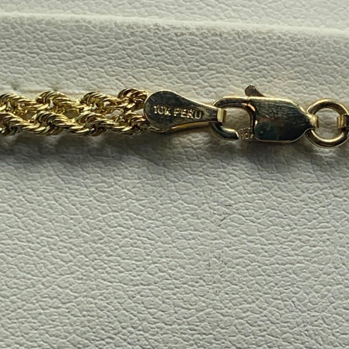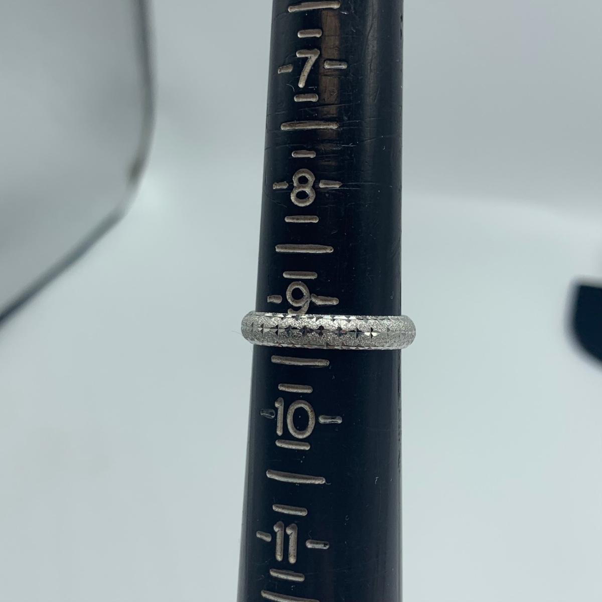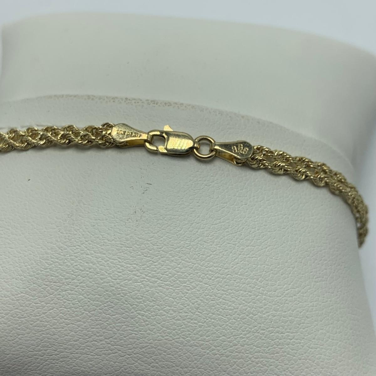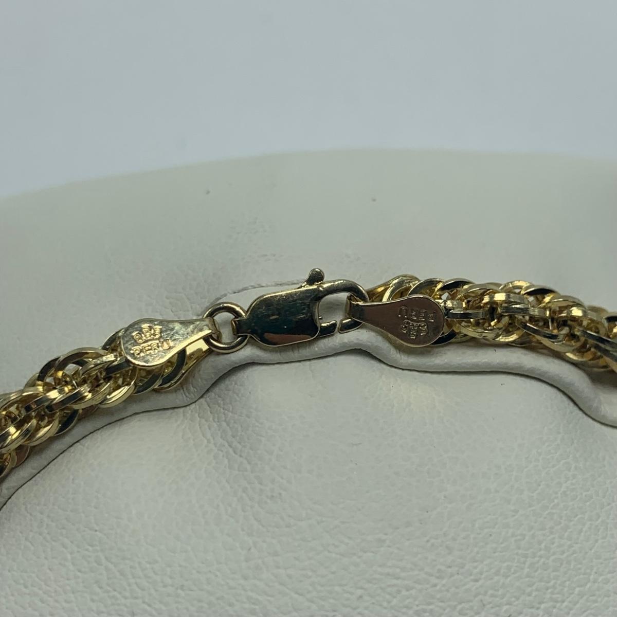 The band rings and two bracelets, all stamped “˜10K’. One ring is white gold and the other items are yellow gold. Both bracelets are 7.5”. Please see photos for all markings found.