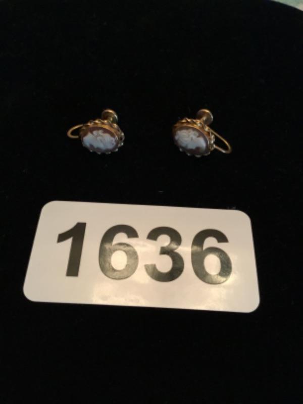 10K Gold cameo Earrings Lot 1636