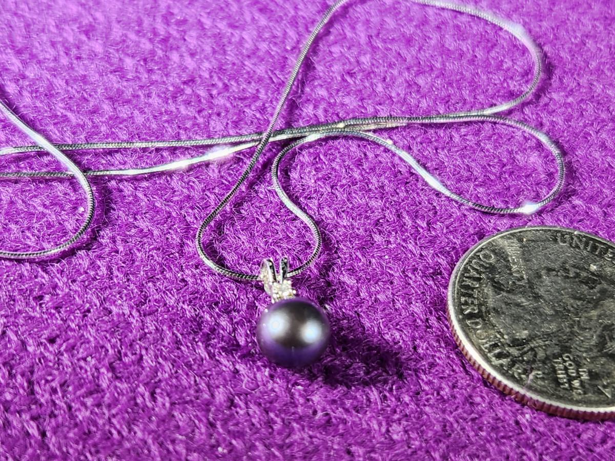This auction lot is for a 10K Gold Chain with Black Pearl in Gold Mount w/Diamond Chip. The chain measures about 24-inches and weighs about .067ozt without the pearl. The chip tests as diamond.